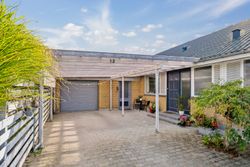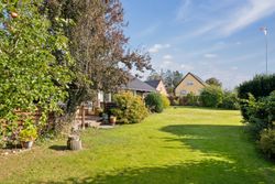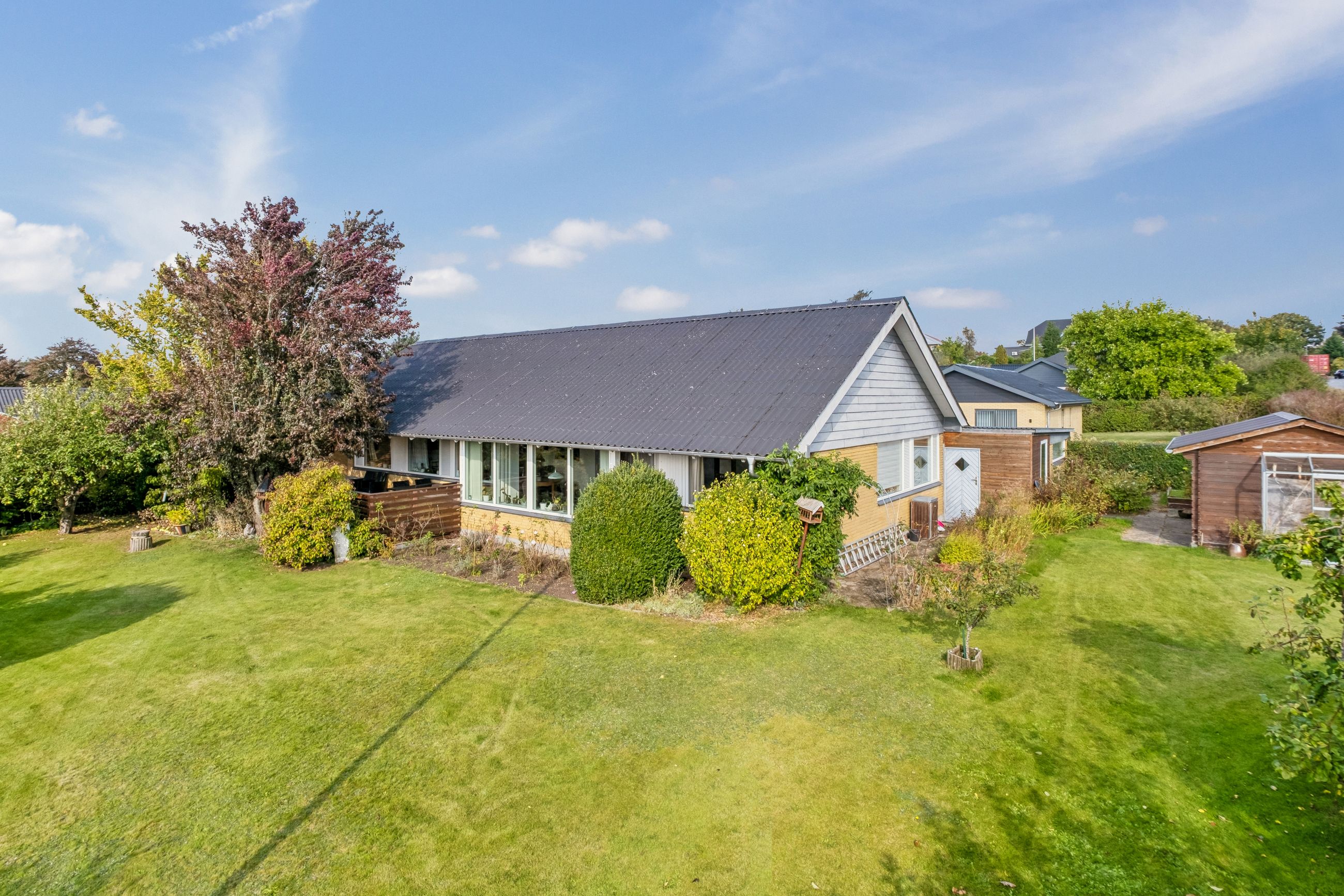 Udenfor venter en lukket ugeneret have primært anlagt i græs – perfekt for dem der ønsker minimal vedligeholdelse men stadig værdsætter grønne omgivelser. En garage samt et skur/bagindgang giver yderligere opbevaringsmuligheder.