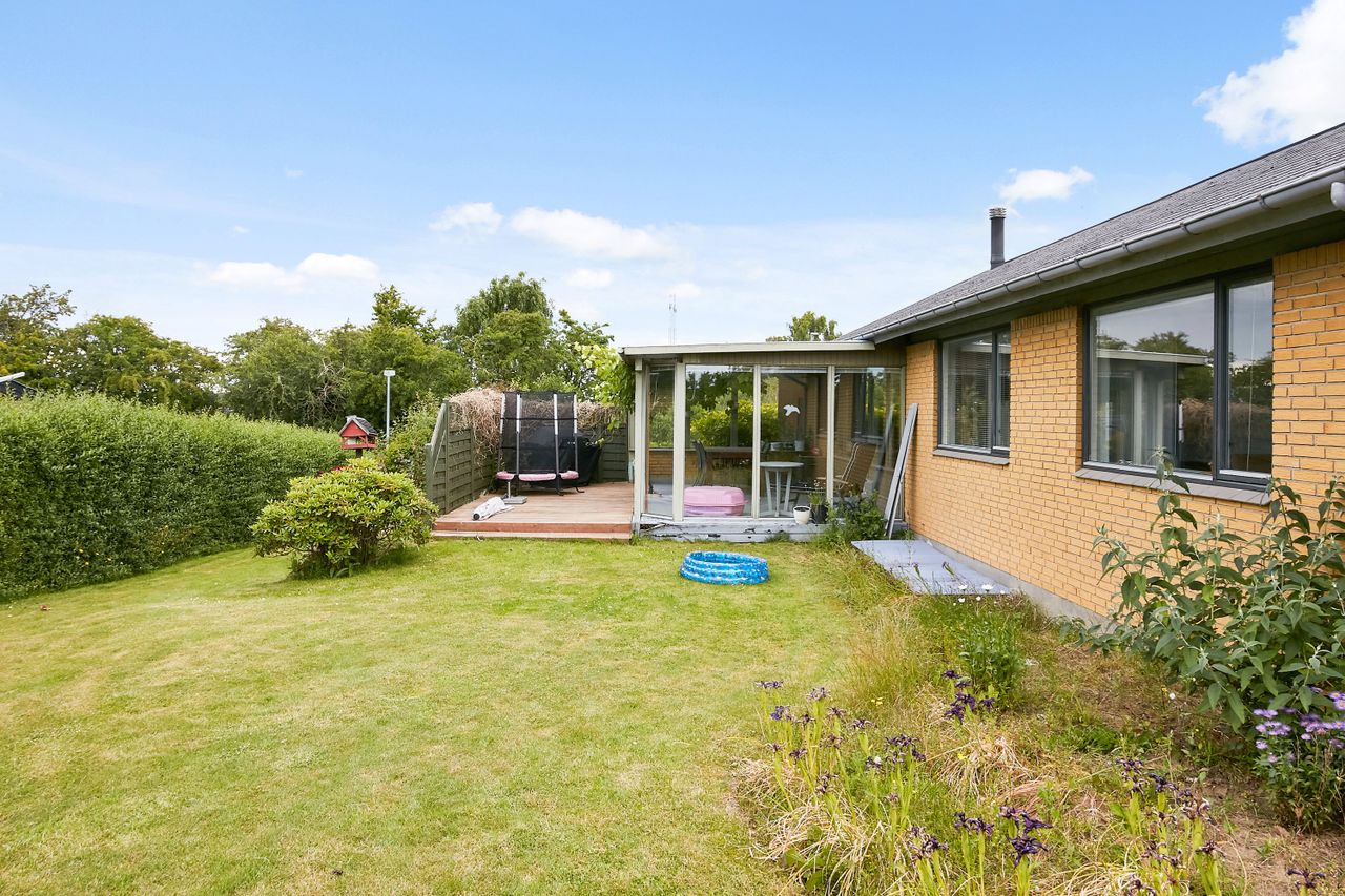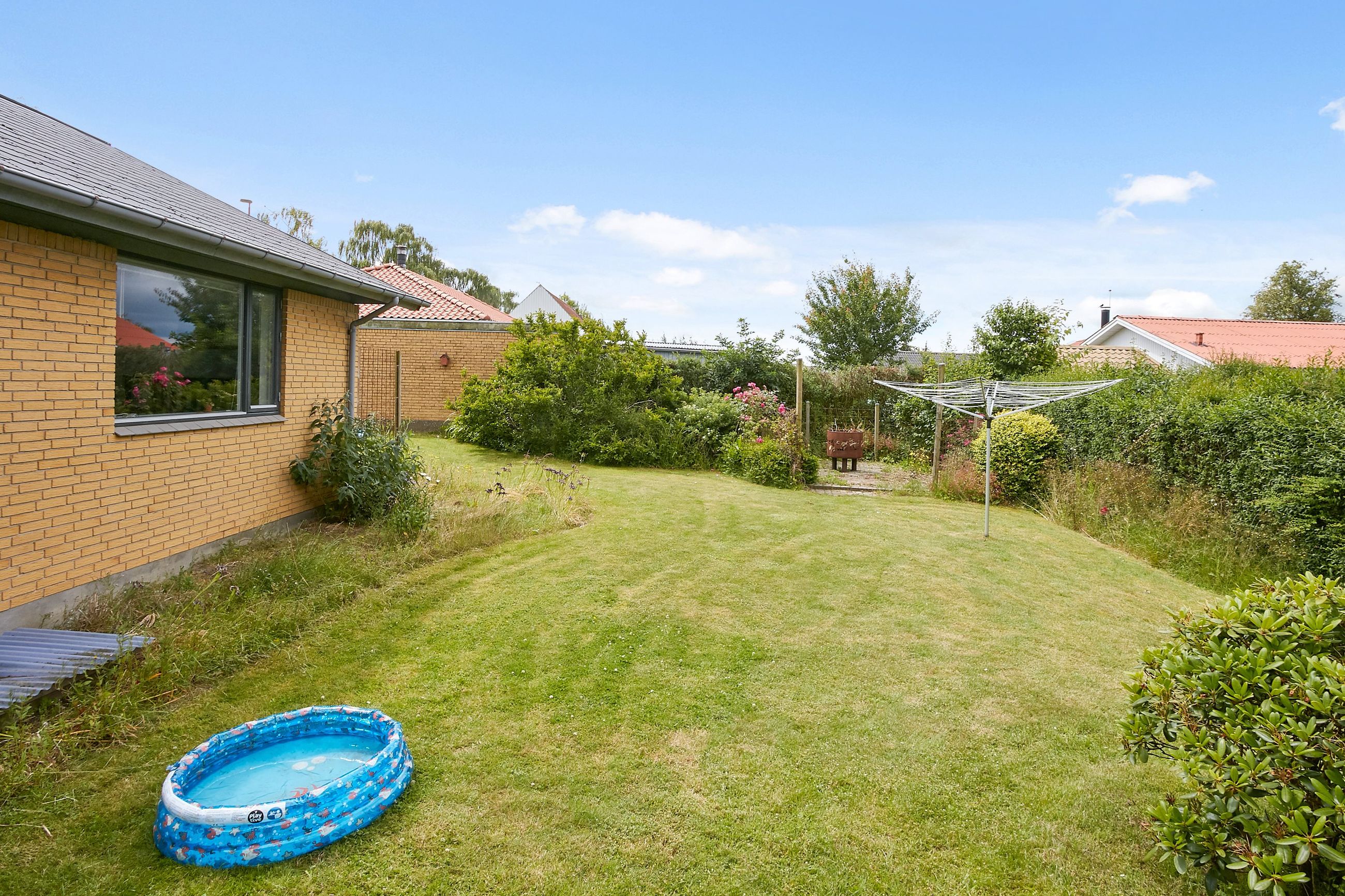 Udendørs kan I nyde den hyggelige ugenerte have fyldt med potentiale for både leg og afslapning samt den overdækkede terrasse – ideel til grillmiddage uanset vejret. Den integrerede garage tilbyder sikker parkering samt ekstra opbevaringsmuligheder.