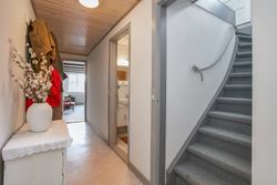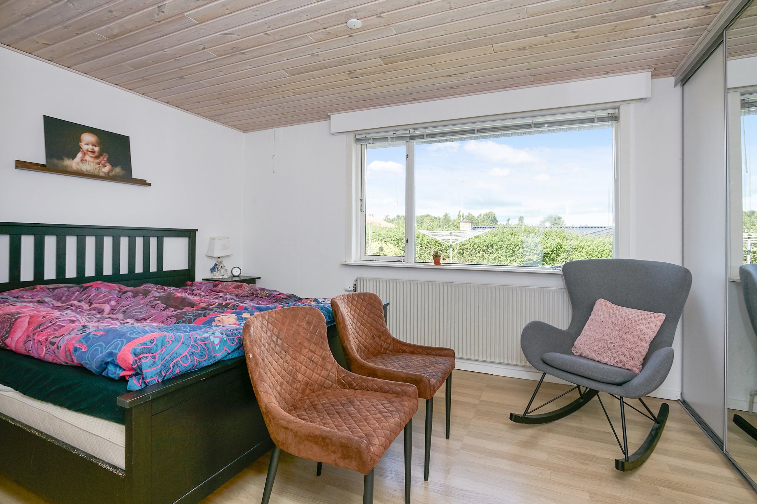 Alrummet glider naturligt over i den hyggelige stue med direkte udgang til terrassen – et perfekt sted for afslapning eller underholdning af gæster. Forældresoveværelset byder på rolig atmosfære med indbyggede skabe for optimal opbevaring. Derudover rummer stueplanet to ekstra værelser ideelle som børneværelser eller hjemmekontor samt et badeværelse med bruseniche og gulvvarme for ekstra komfort.