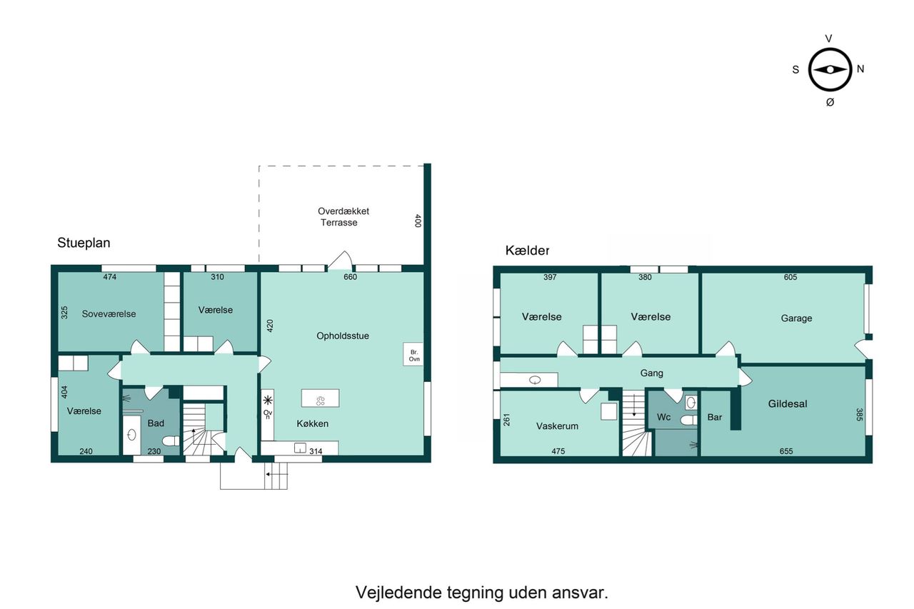 Kælderen åbner op for endnu flere muligheder med to yderligere værelser samt et praktisk bryggers/vaskerum – perfekt for den aktive familie. Et ekstra badeværelse hernede sikrer bekvemmeligheden ved travle morgener eller gæstebesøg. Kælderen fuldendes af en gildesal; oplagt til festlige sammenkomster eller kreative projekter.