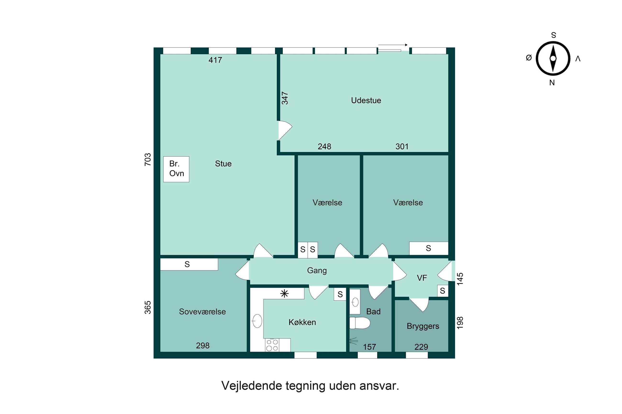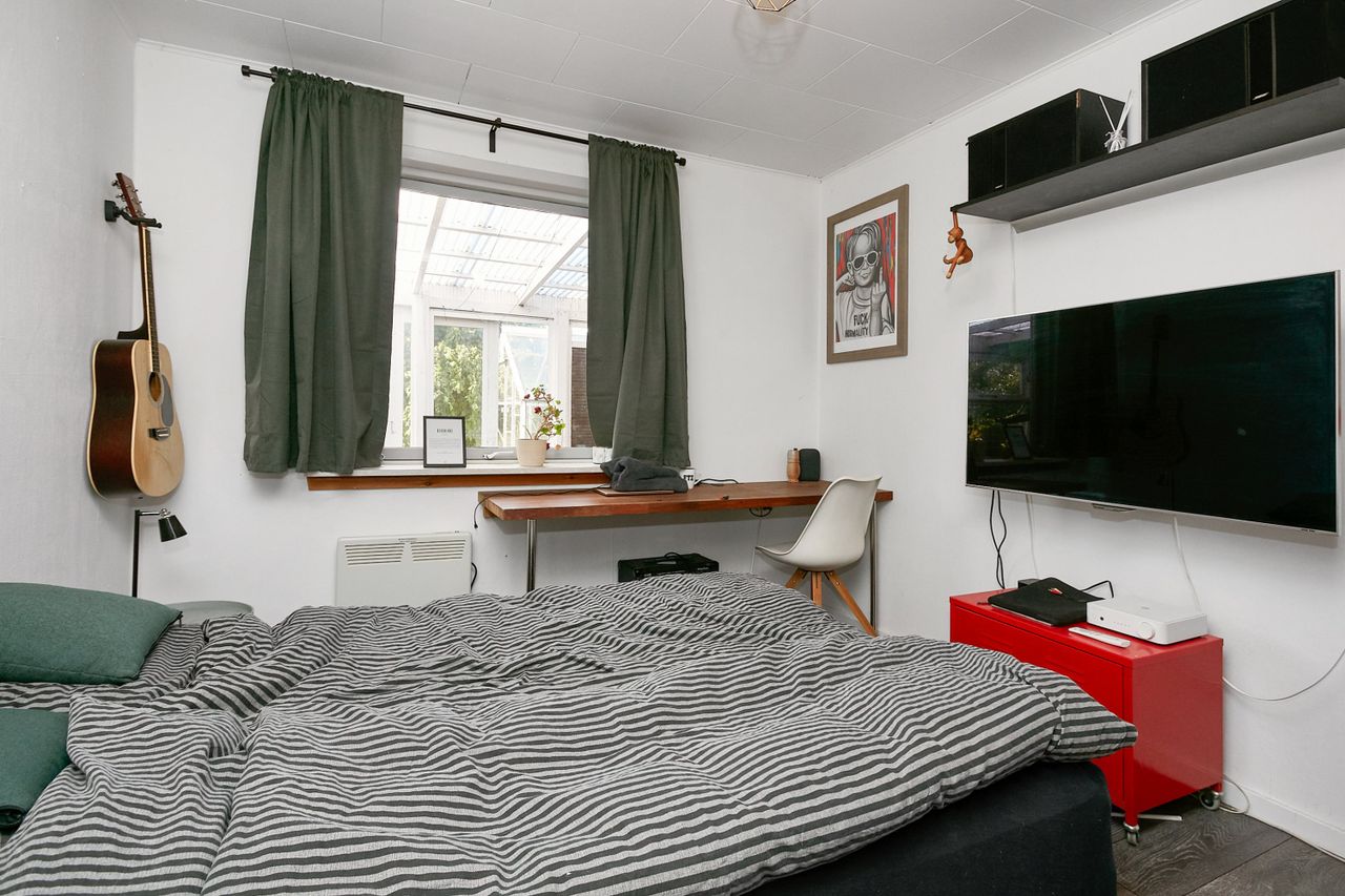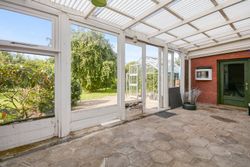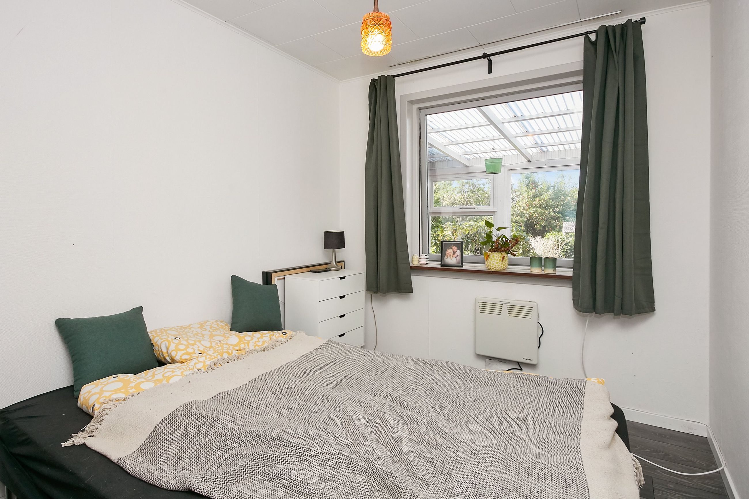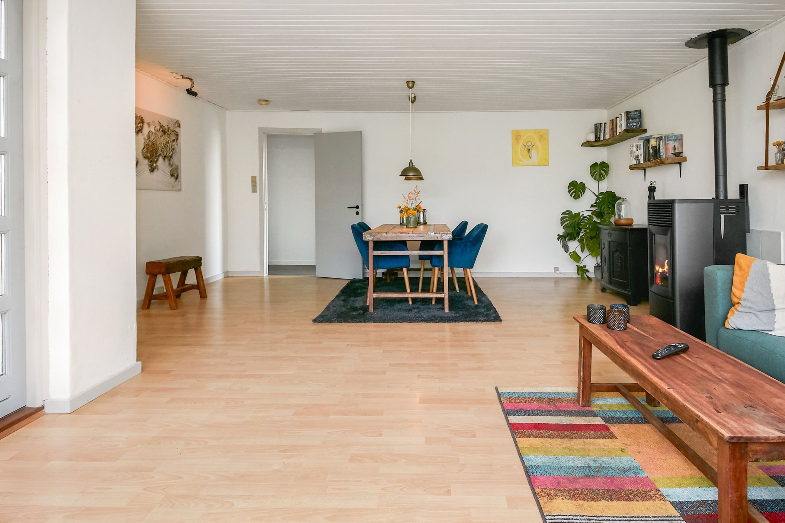 Når du træder ind ad døren, mødes du af en indbydende entre, der fører dig videre ind i huset som indeholder en rummelige stue, her er der rigelig plads til både spisebord og sofaarrangement. Det store vinduesparti sørger for et flot naturligt lysindfald hele dagen igennem, mens pillebrændeovnen tilfører ekstra varme og hygge på de køligere dage. Fra stuen er der direkte udgang til en charmerende udestue.