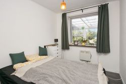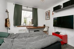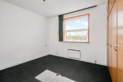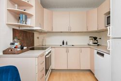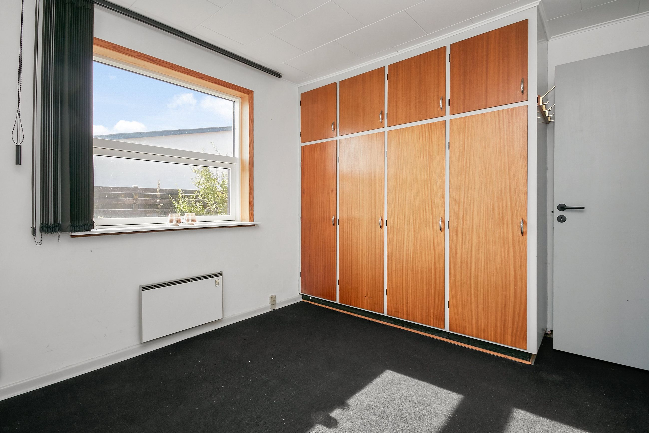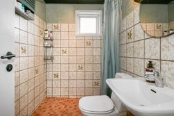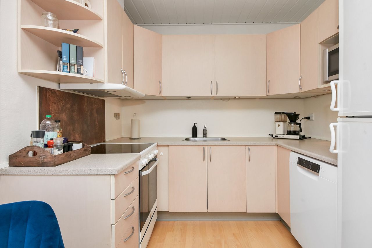 Køkkenet er lyst og funktionelt indrettet med masser af skabsplads og moderne faciliteter, hvilket gør madlavningen til en leg. Villaen rummer også et stort soveværelse med praktiske indbyggede skabe samt to ekstra værelser, som kan bruges som børneværelser, kontor eller gæsteværelser alt efter behov. Badeværelset er elegant designet med bruseniche og gode opbevaringsmuligheder. Derudover finder du et praktisk bryggers med plads til vaskefaciliteter.