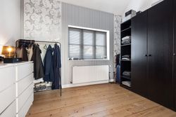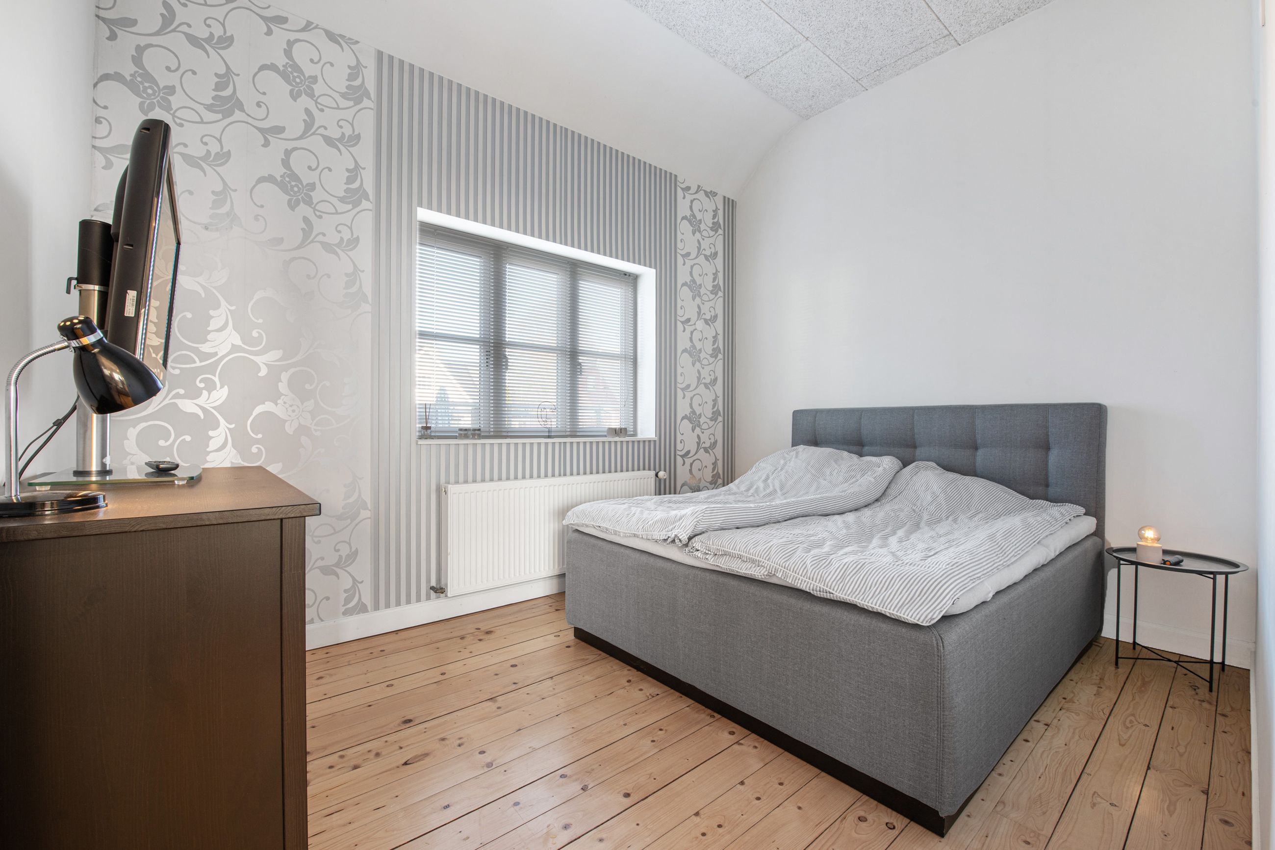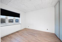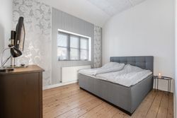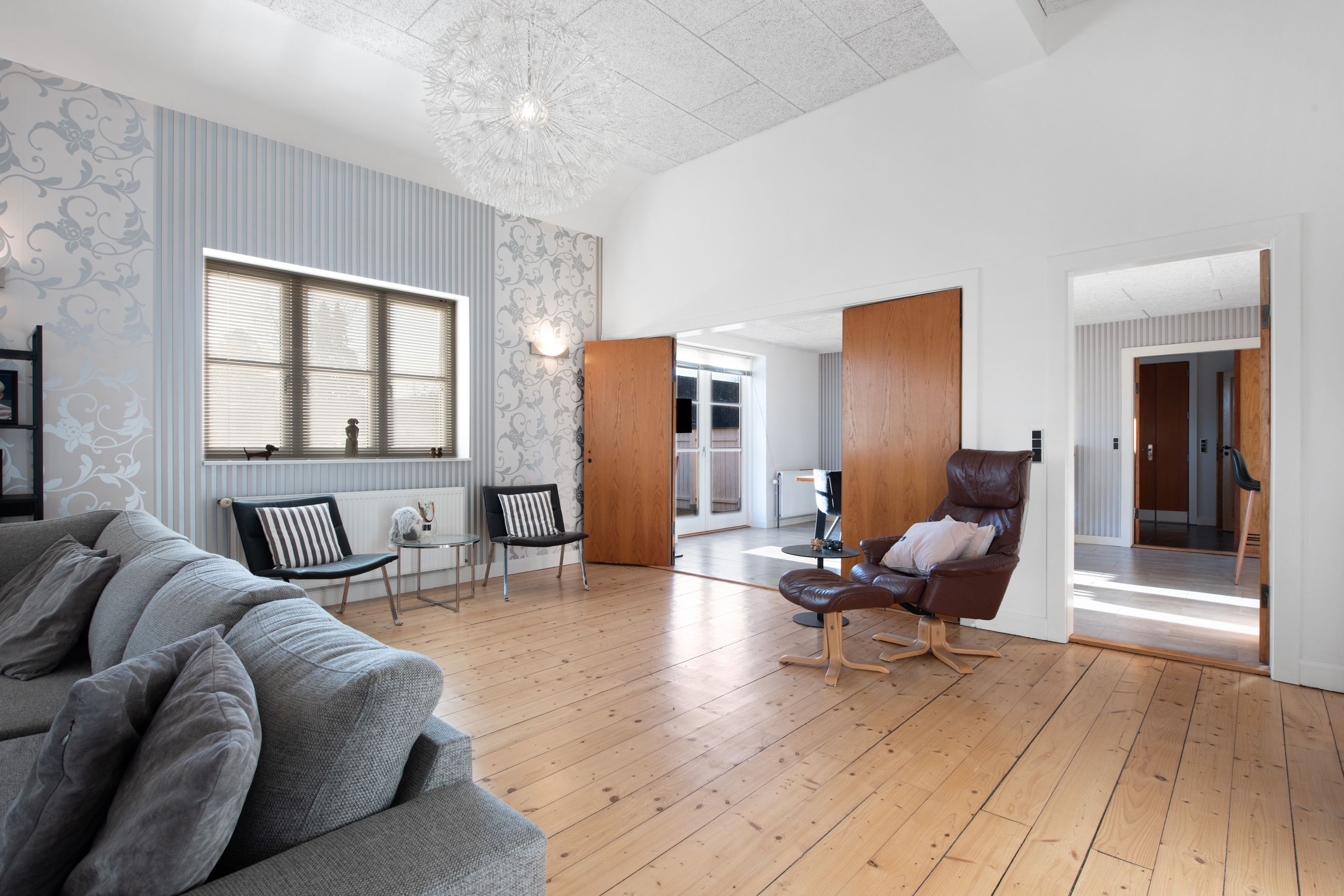 plads til stort sofaarrangement. Fra stuen er der adgang til 2 værelser, der har samme