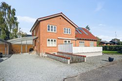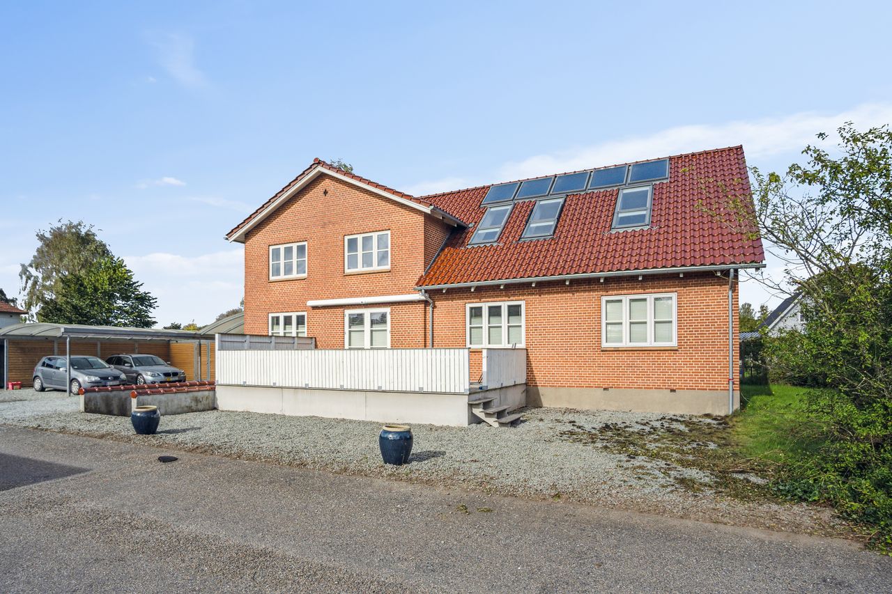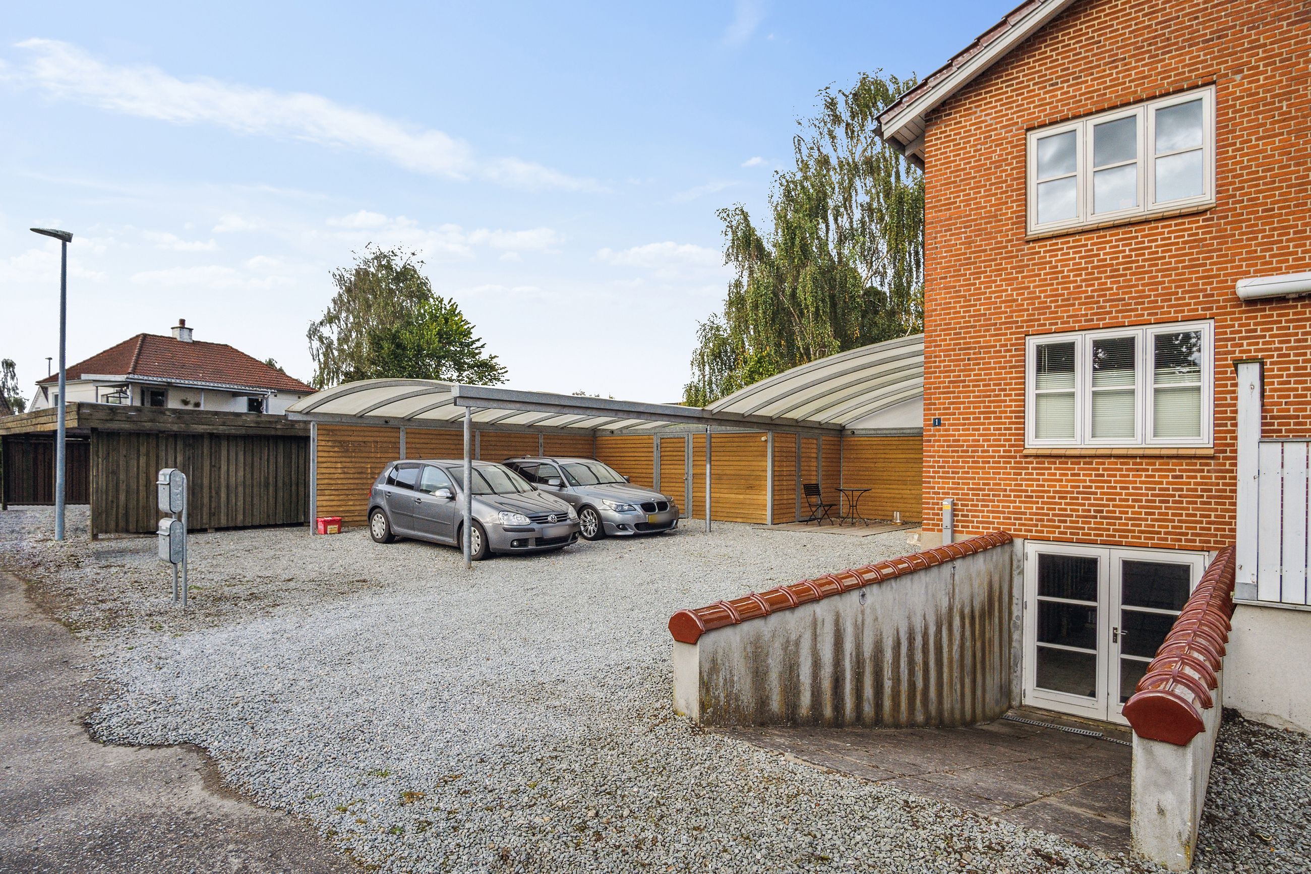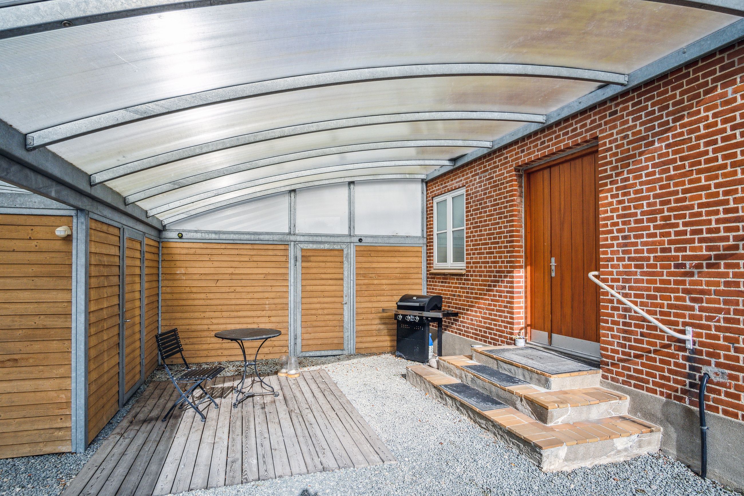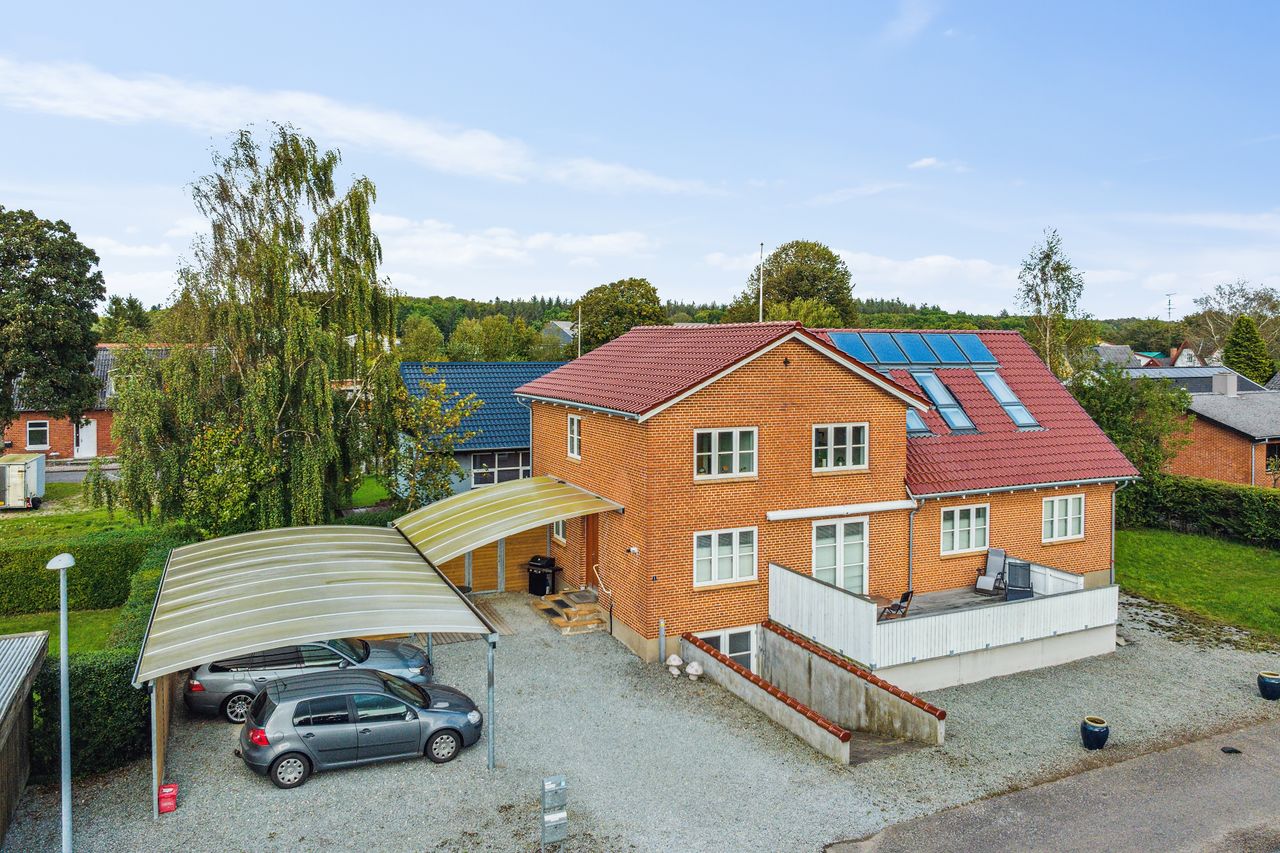 Tilhørende boligen er 2 opbevaringsrum, en carport med plads til flere biler og et overdækket