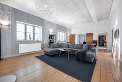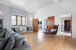 Videre fra alrummet findes den herskabelige stue med en loftshøjde på over 3 meter. Her er