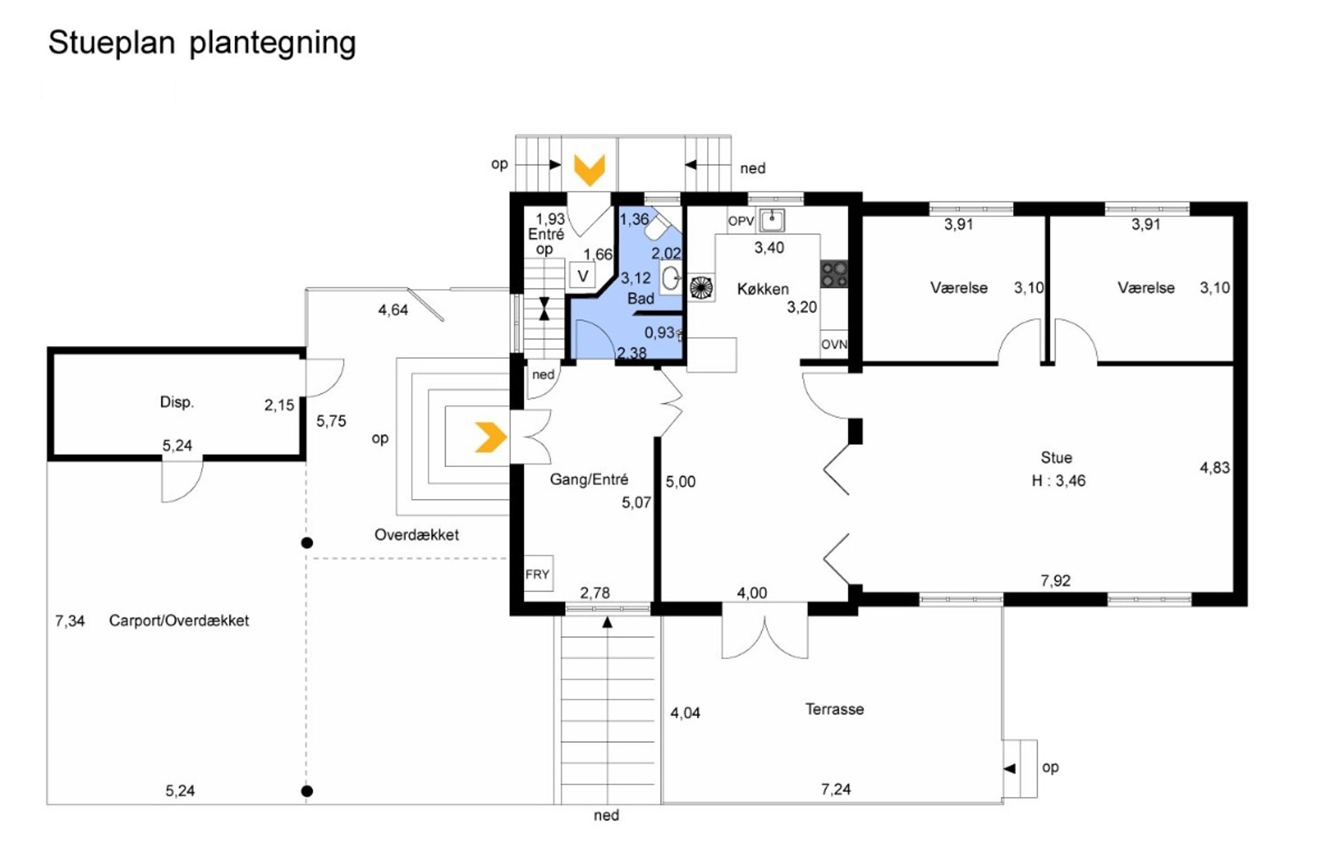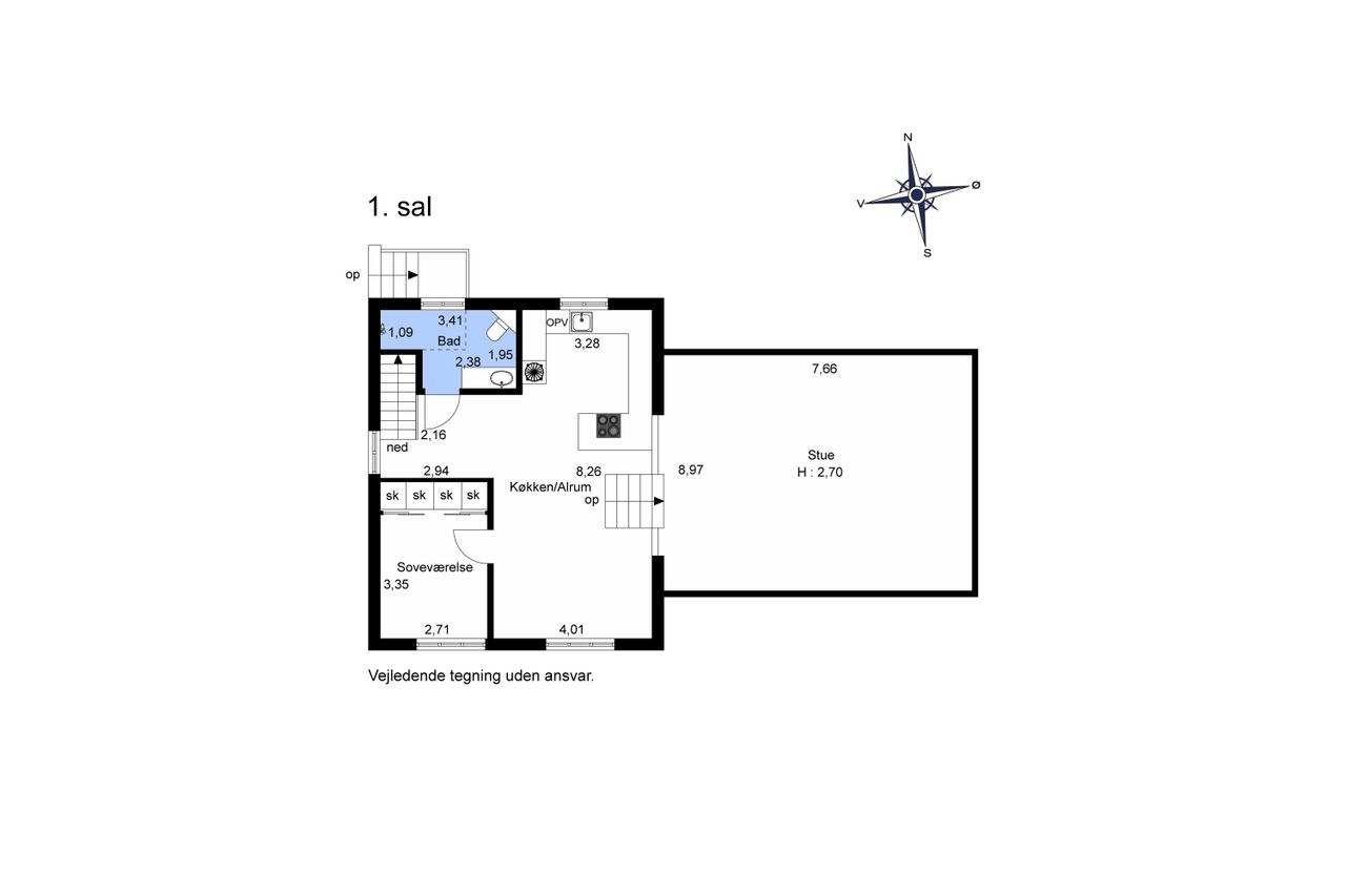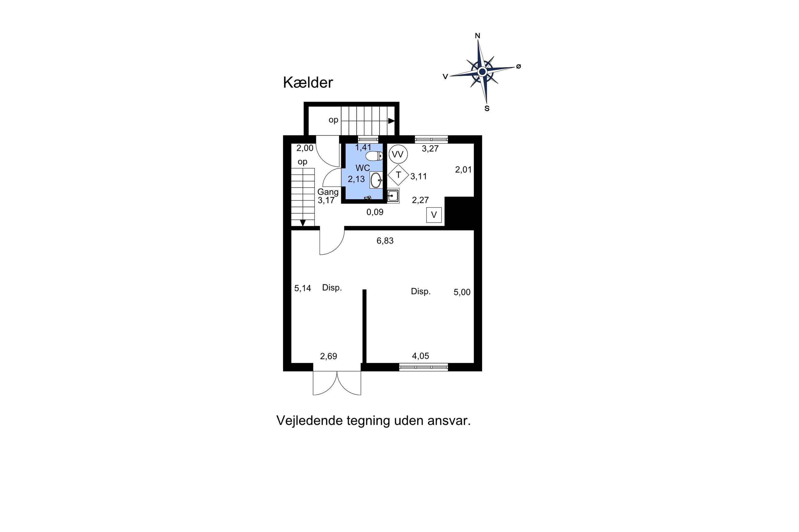 vaskemaskine og tørretumbler. Underetagen har også direkte adgang udefra, og giver derfor