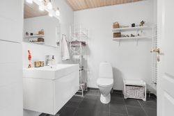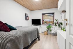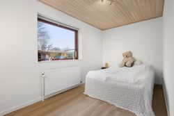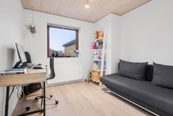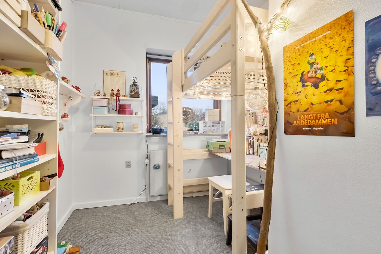 Boligen rummer tre gode værelser, der giver mange muligheder – uanset om der er brug for børneværelser, et kontor til hjemmearbejde eller et gæsterum. I dag er værelserne opdelt i en børne/voksen afdeling, med et soveværelse hvor der er mulighed for walk-in. Hertil kommer et badeværelse med gulvvarme og et ekstra toilet klargjort til brus, hvilket gør dagligdagen mere bekvem og fleksibel for hele familien. Det rummelige bryggers er også værd at nævne med masser af plads til opbevaring.