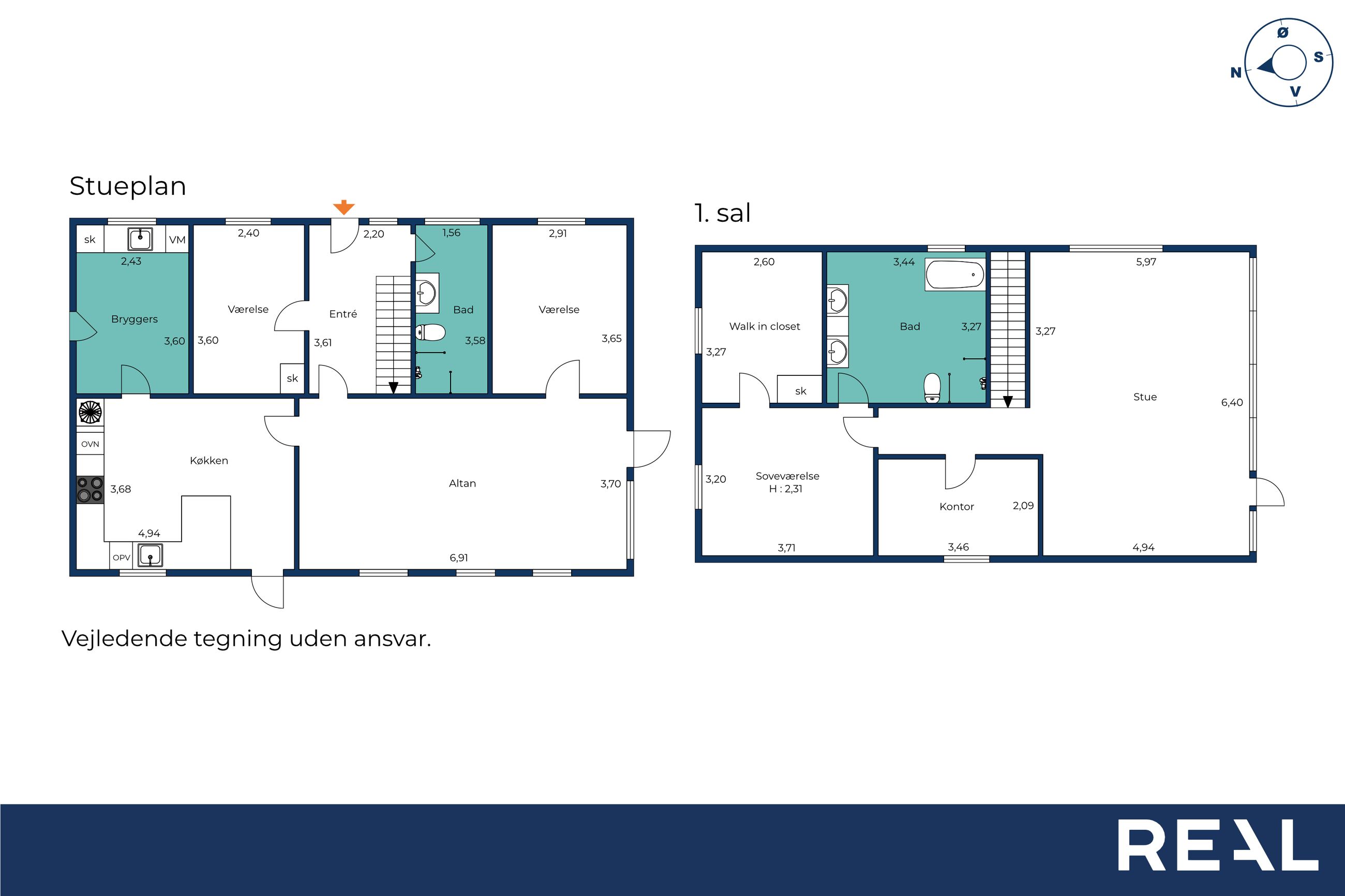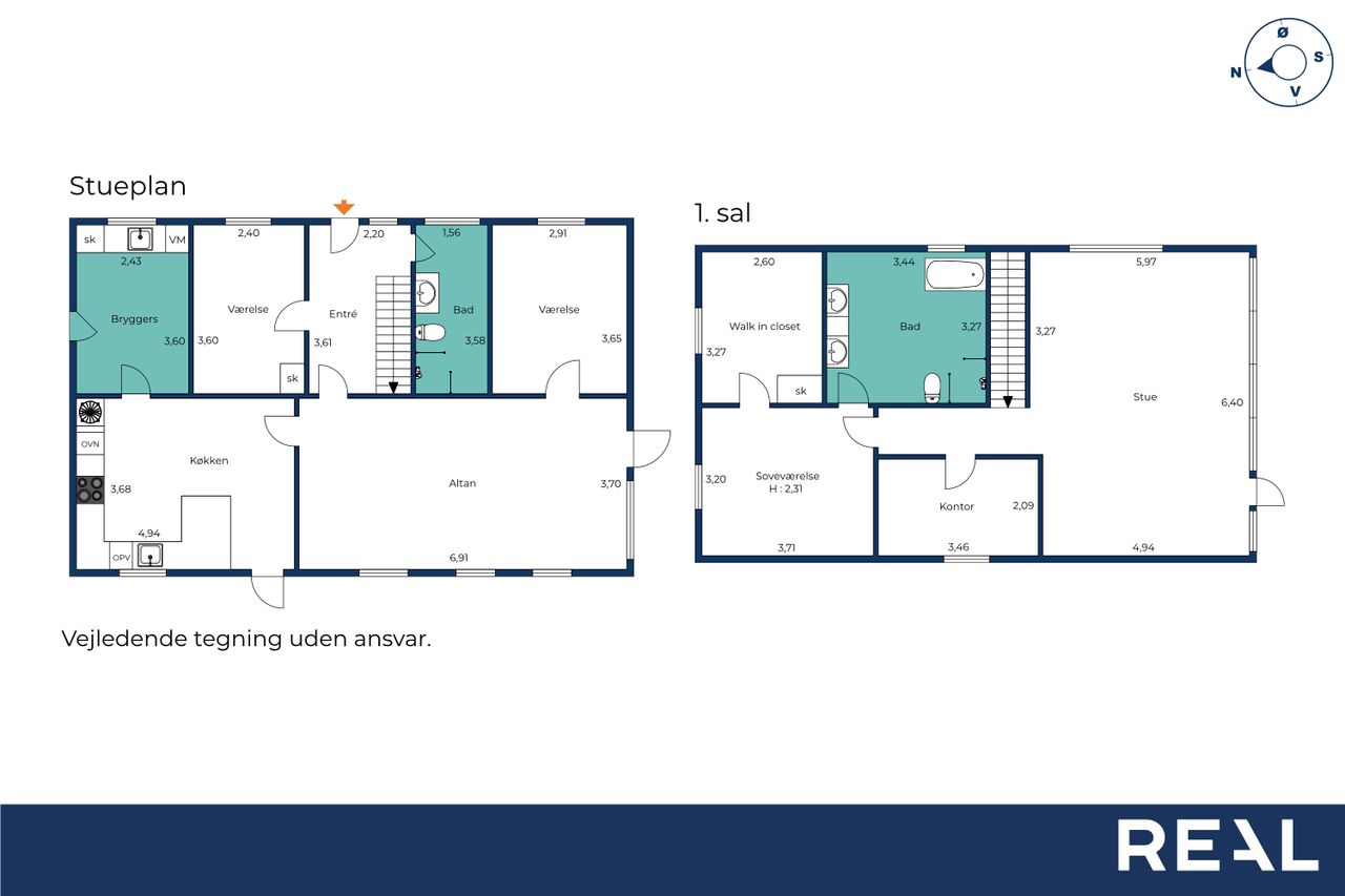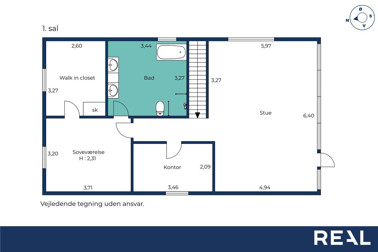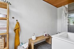 Når man træder ind i villaen bliver man mødt af en lys entré. I stueplan finder man desuden et stort nyere gæstetoilet med brus. Endvidere er det 2 gode værelser.