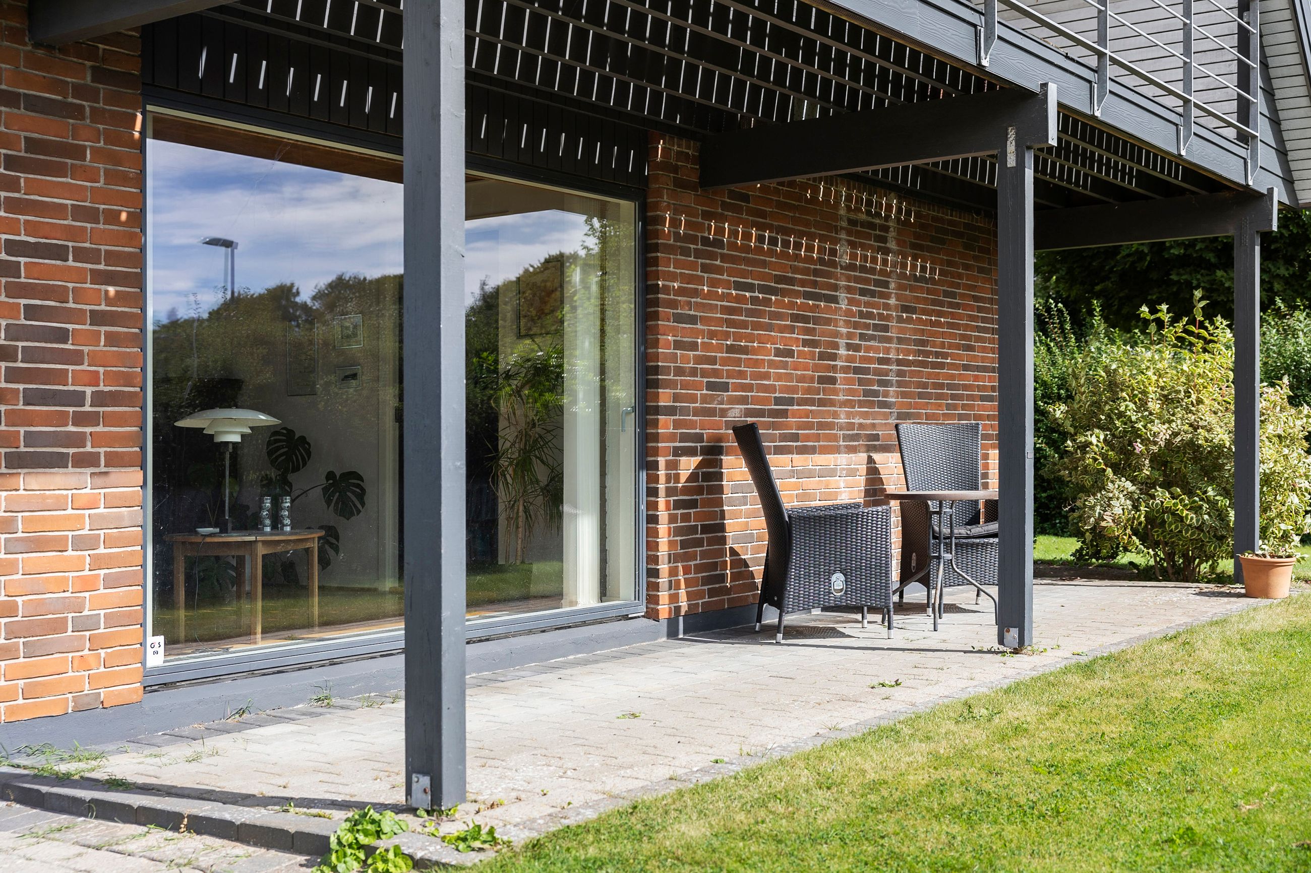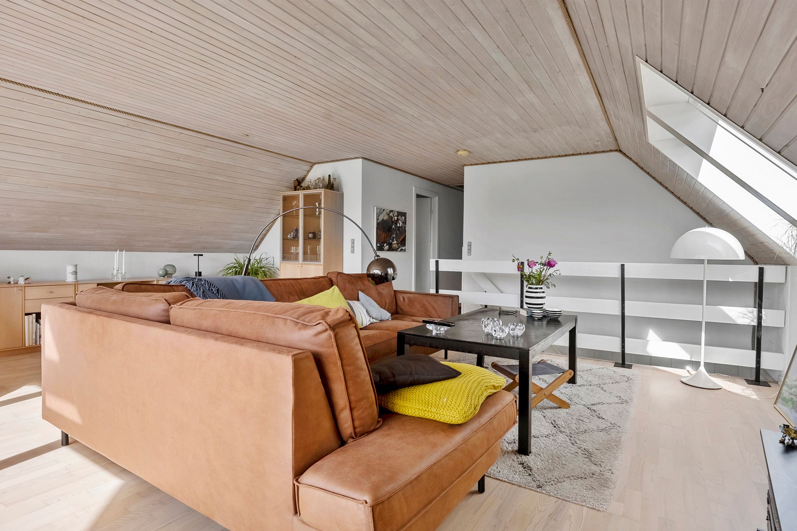 På første sal finder man en lys stue med direkte adgang til sydvendt altan, hvor man kan nyde det smukke område.