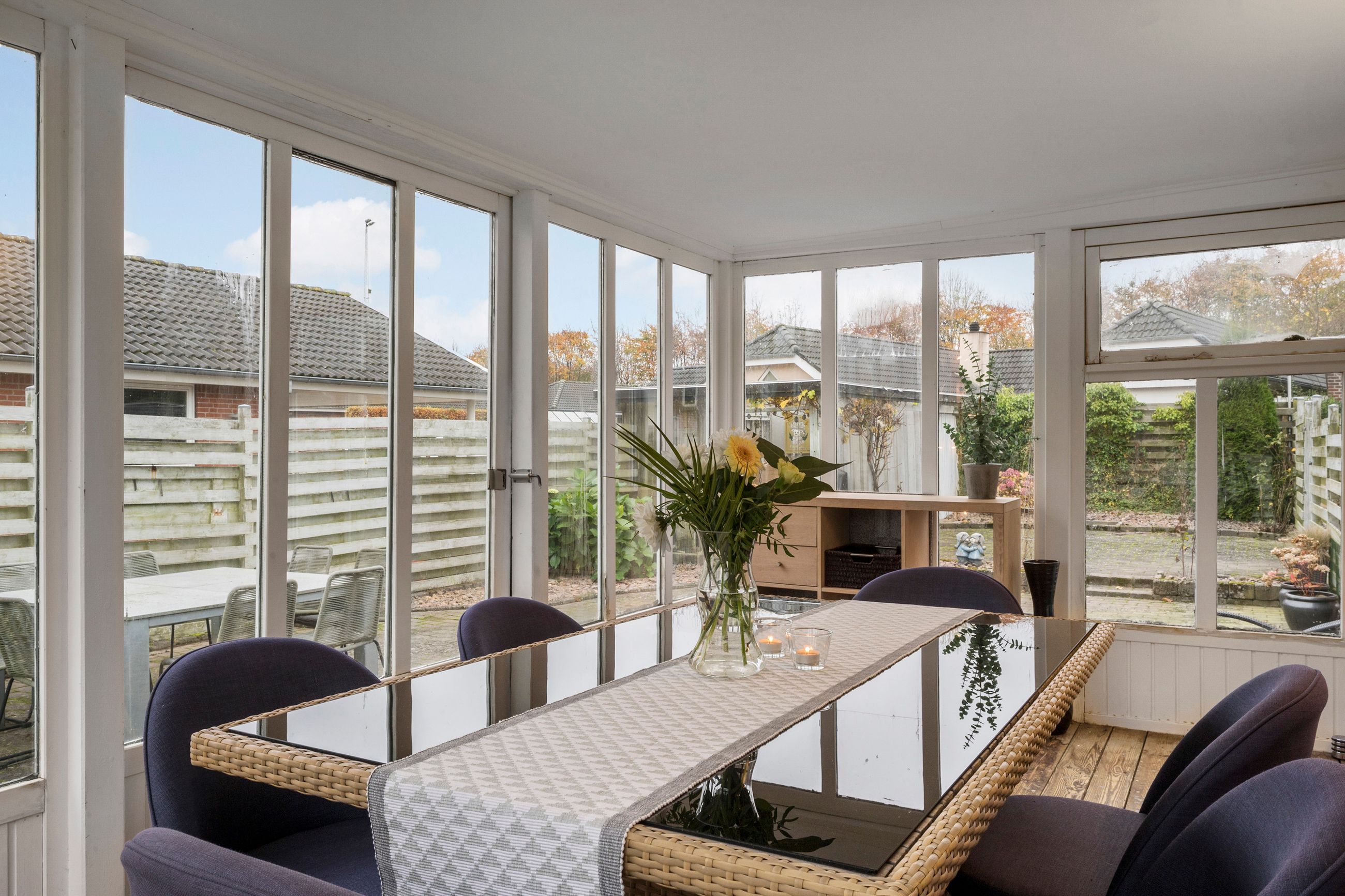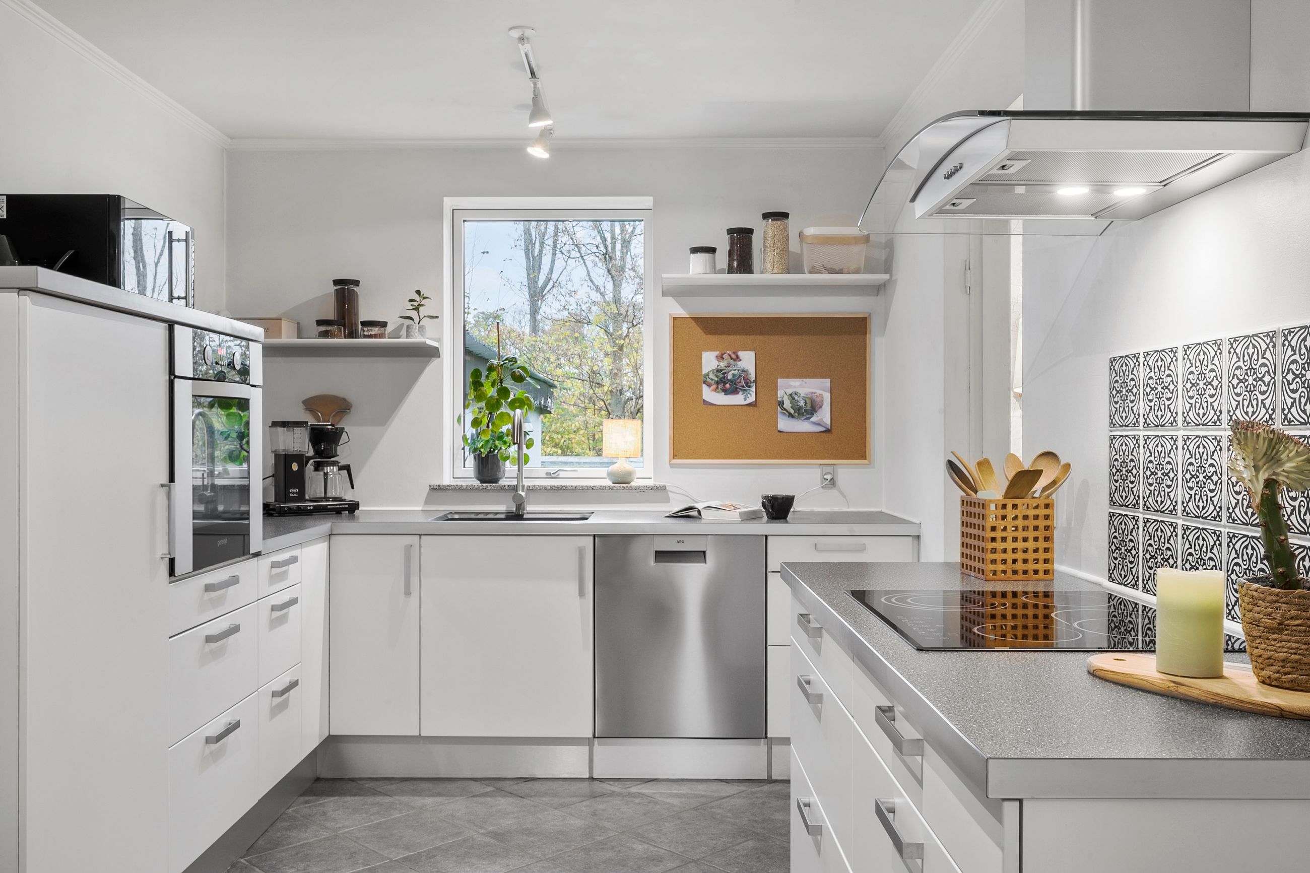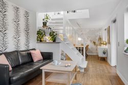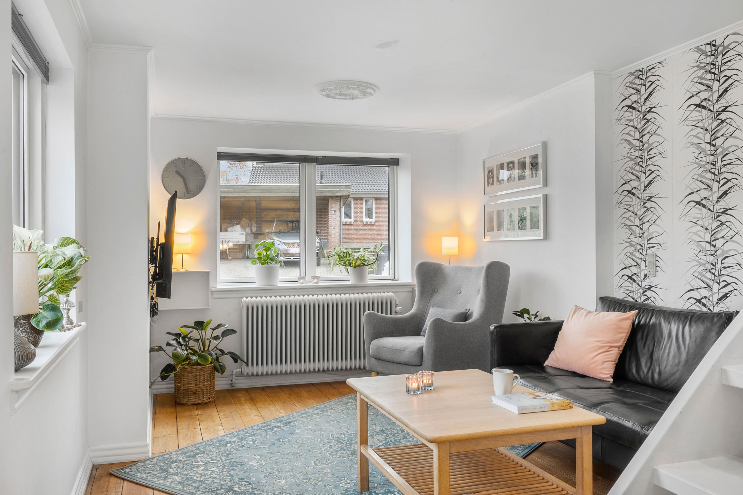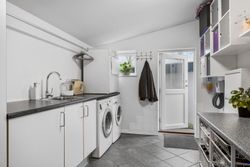 Huset byder velkommen med en rummelig entré, der fører videre til det hyggelige køkken med åben forbindelse til stuen. Her er der plads til både hyggelige middage og afslapning i stueområdet, som har direkte adgang til en lys udestue – perfekt til at nyde en kop kaffe og udsigten til den grønne have.