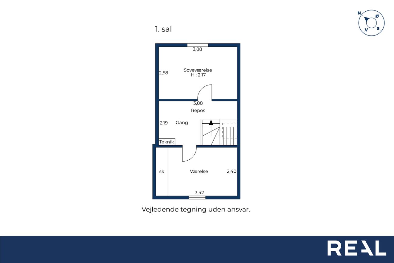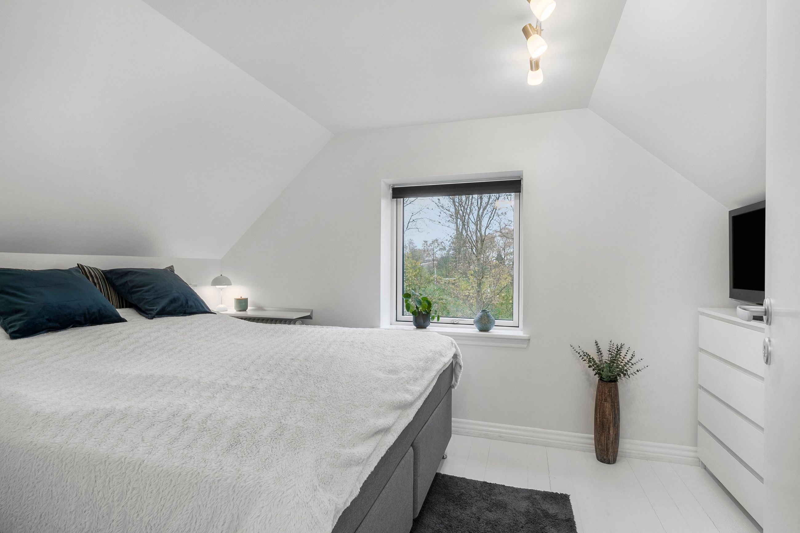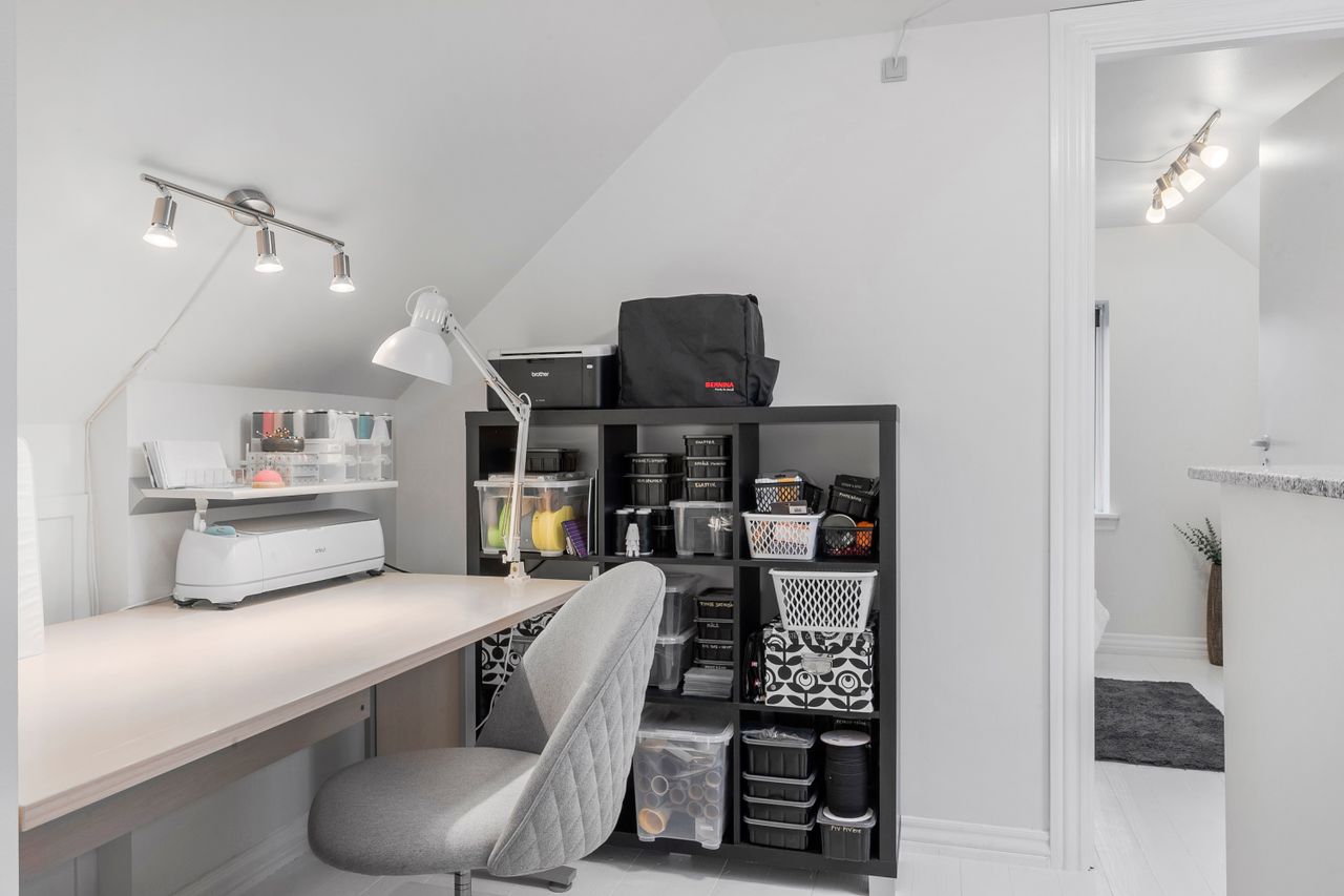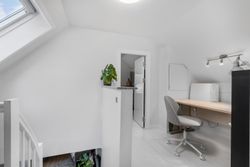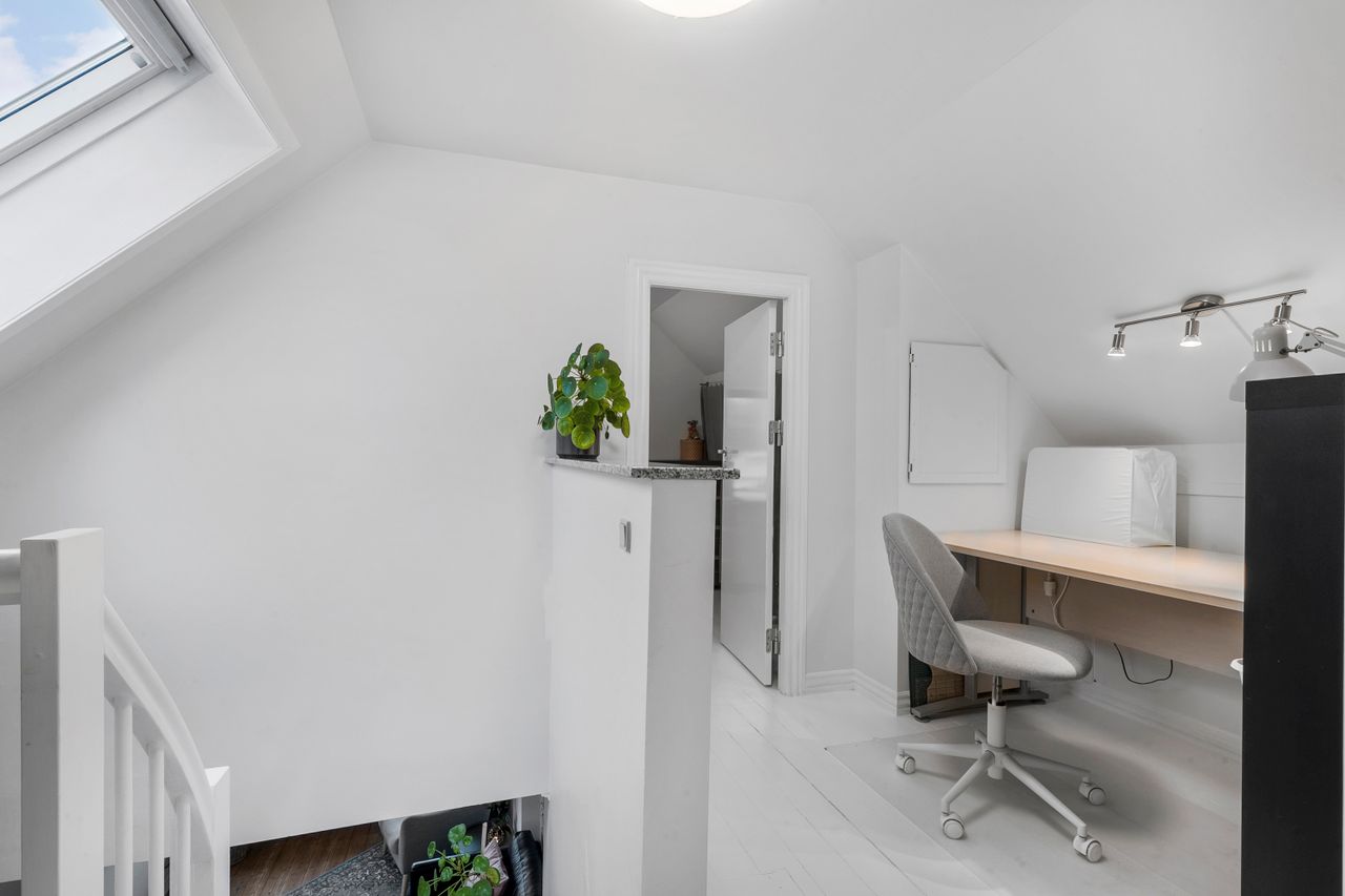 På første sal finder du et dejligt soveværelse, et ekstra værelse samt en lille repos, der kan fungere som kontorhjørne eller læsekrog. Denne etage er ideel til børnefamilien eller parret, der ønsker separat soveafdeling.