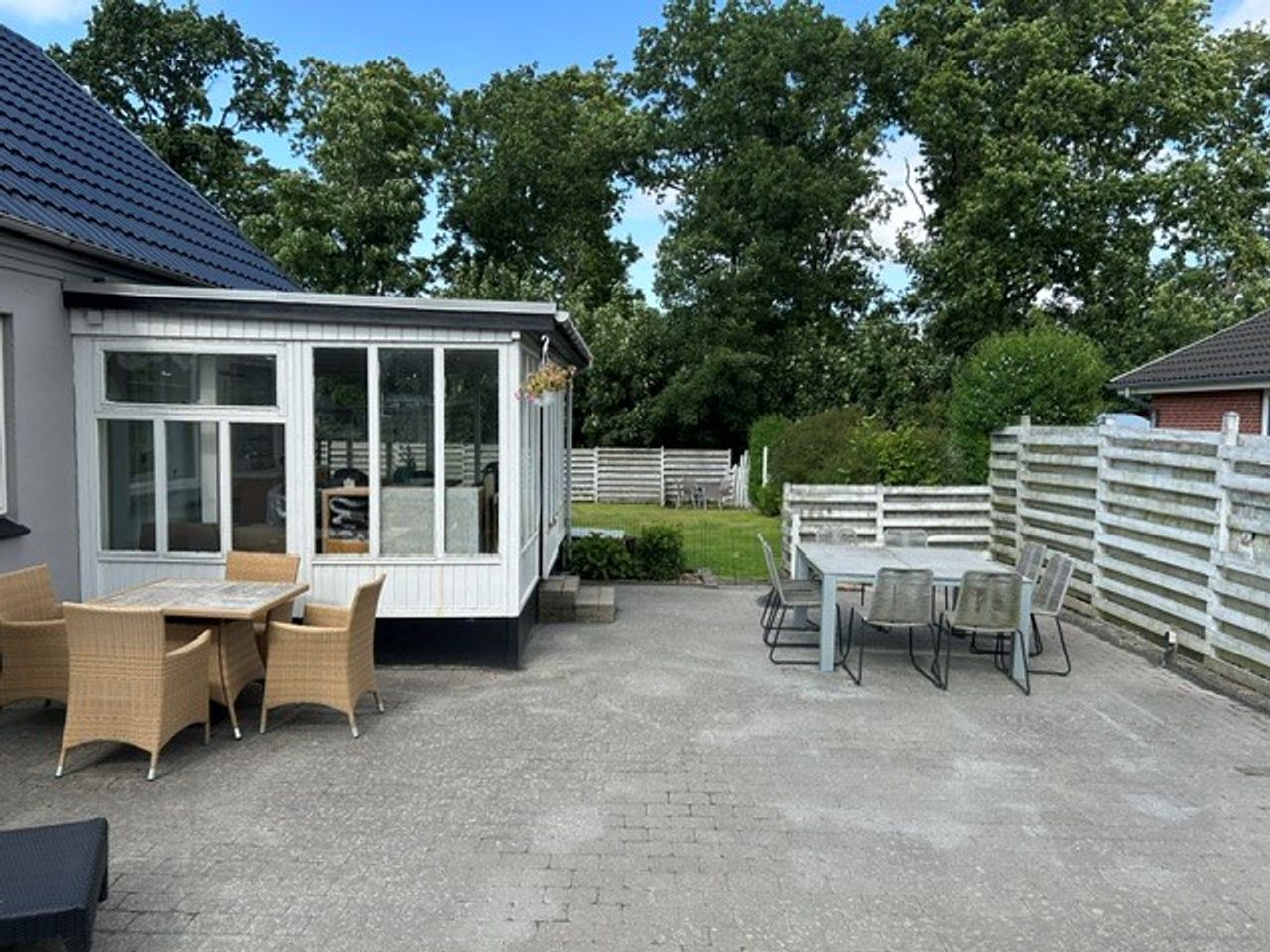 Udenfor kan du nyde en skøn terrasse med plads til udendørs ophold og hygge i haven. Beliggenheden er ideel for dem, der sætter pris på ro og natur, da der er gåafstand til naturskønne områder, som indbyder til gåture og friluftsliv.