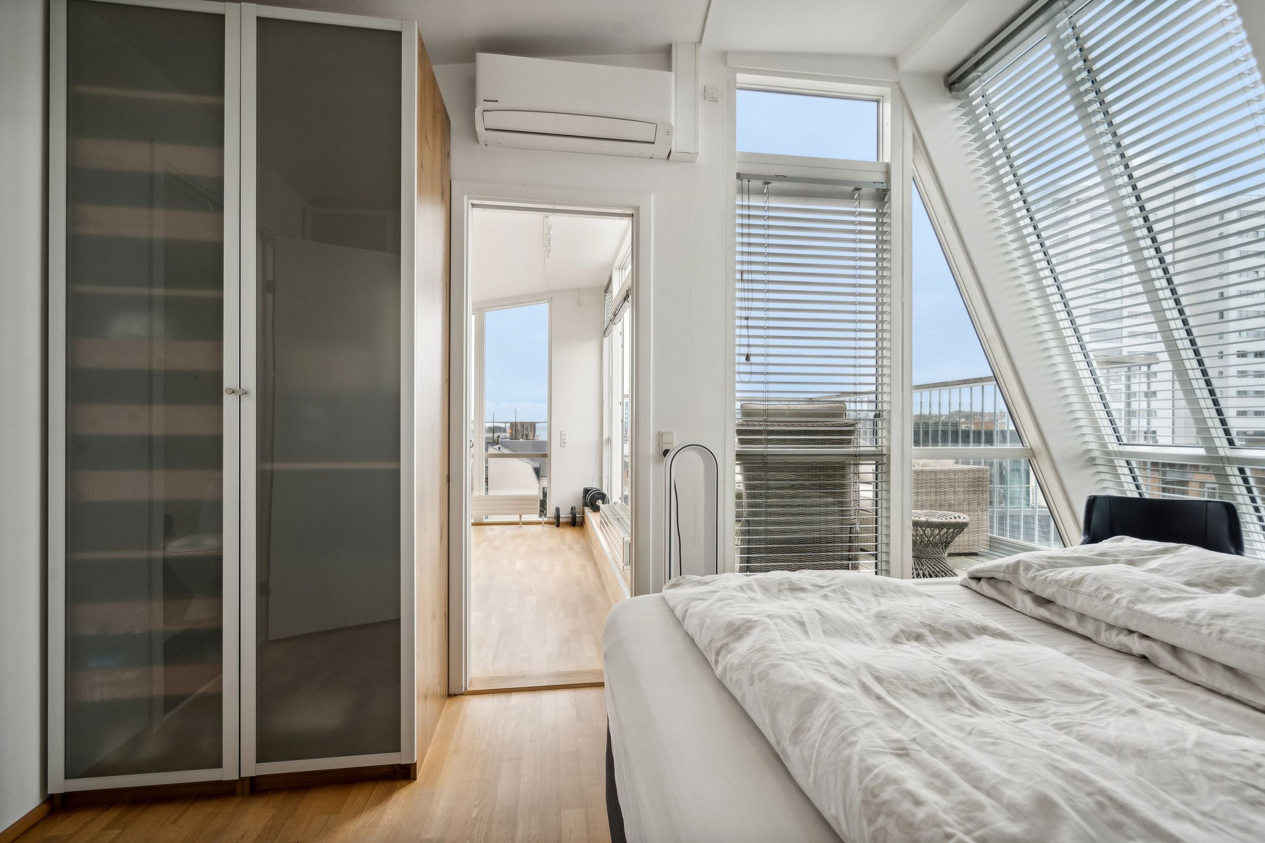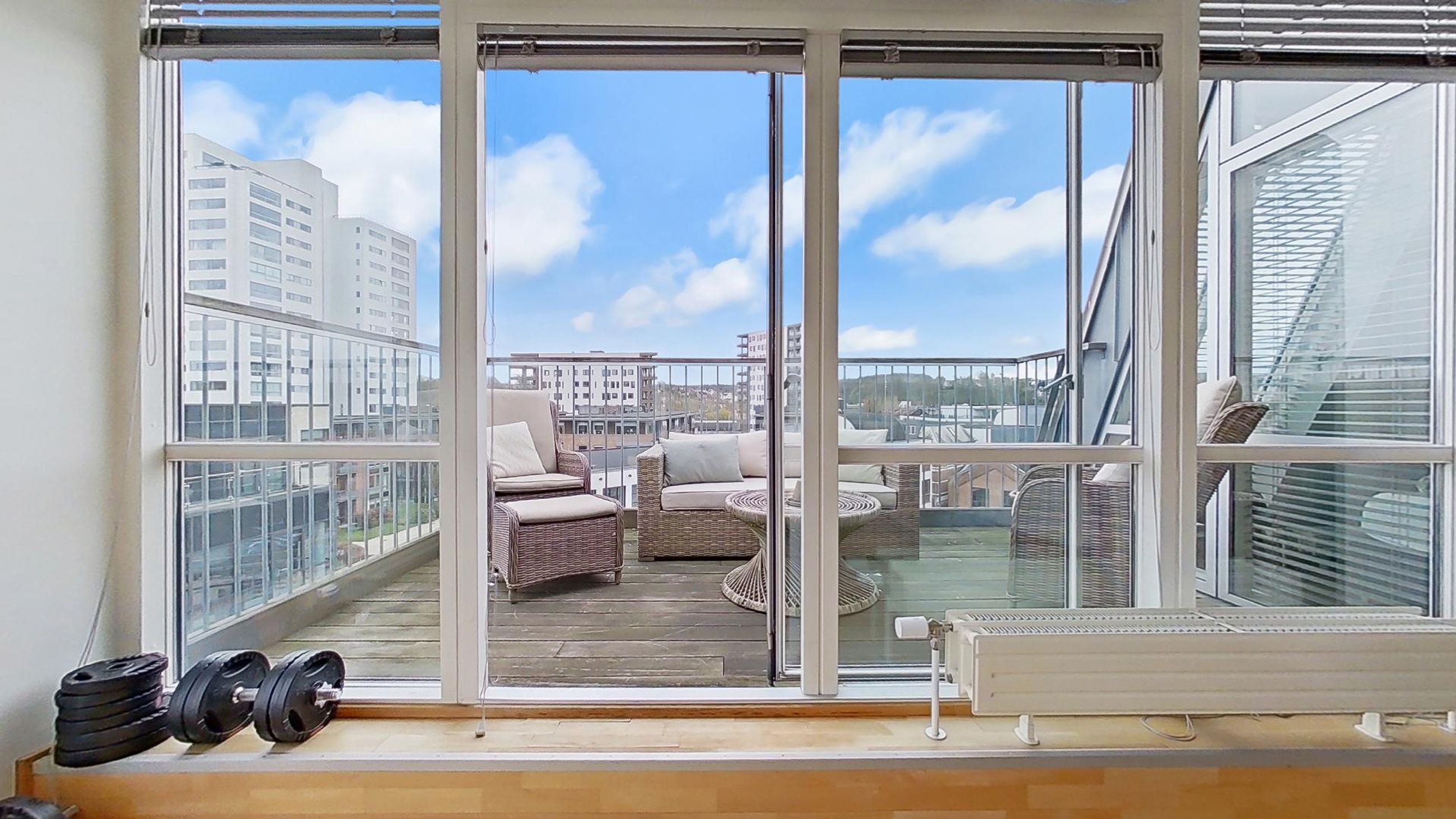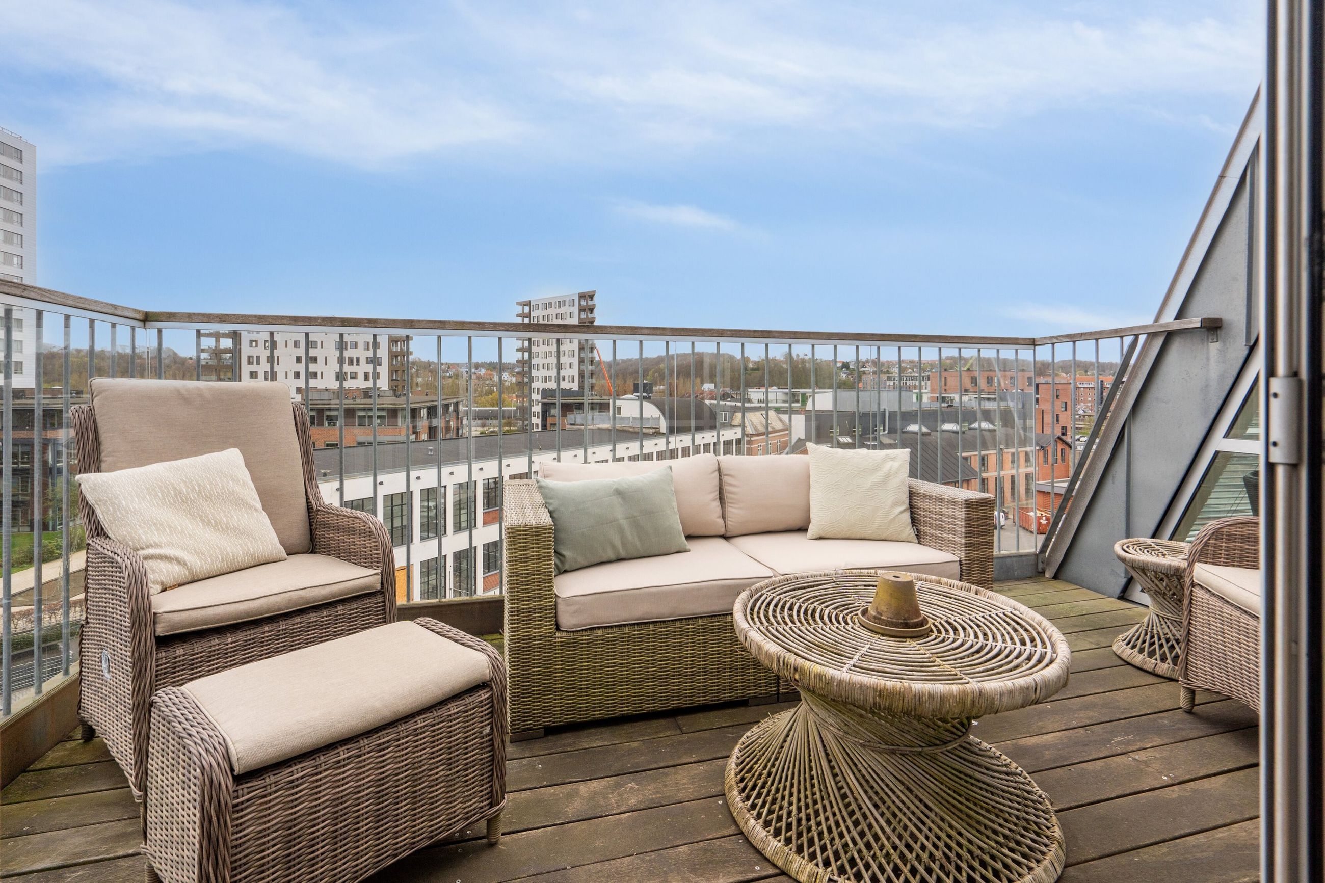 Savner du en nem hverdag med parkering i kælderen, elevator, gåafstand til indkøb vinmanden og alle byens andre faciliteter. Så er det måske på denne lejligheds altan du skal nyde byens liv og kigget til fjorden med et koldt glas i hånden.