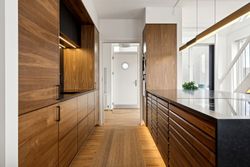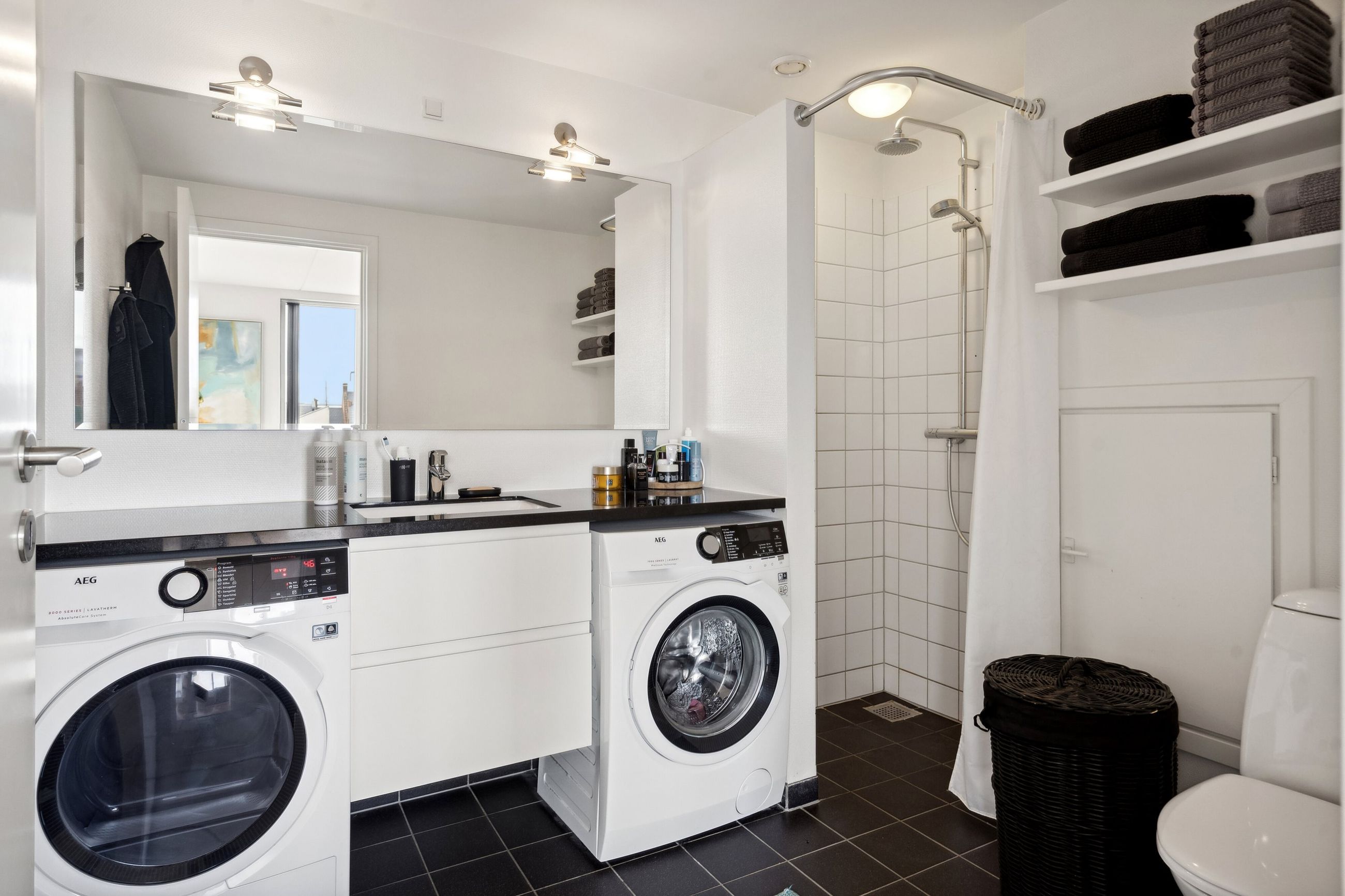 Når du træder ind i lejligheden, mødes du af en rummelig entre, der leder dig videre til det åbne køkkenalrum og stueområde. Her forenes stilrent design med praktisk funktionalitet, hvilket skaber et indbydende miljø for både hverdagens gøremål og sociale sammenkomster. Fra alrummet har du direkte adgang til den første af to altaner, hvor du kan nyde morgenkaffen eller aftensolen.