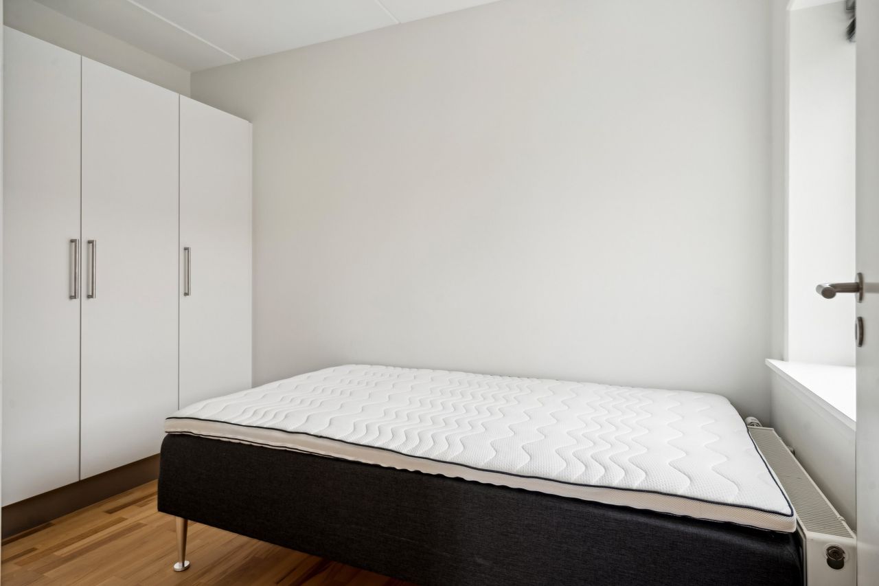 Beliggenheden er fantastisk central i Vejle, lige ned til havnen. Her får du ikke kun en skøn bolig, men også nærhed til bylivets pulserende energi samt smukke omgivelser ved vandet. Alt i alt en lejlighed, der tilbyder det bedste af både komfort, stil og beliggenhed.