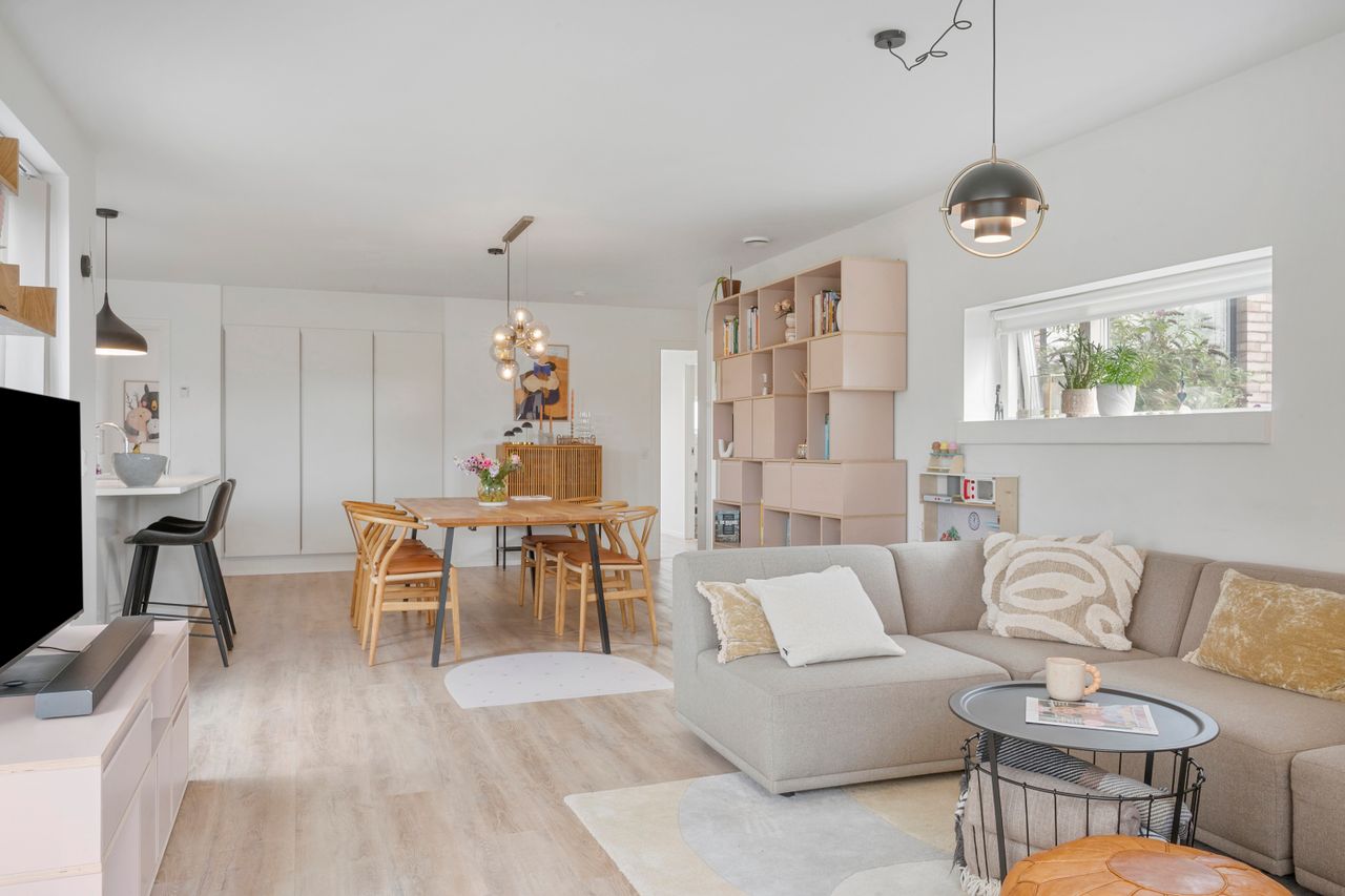 På Gimlevej 11B finder du denne indbydende bolig på 132 m2, beliggende for enden af et stille vænge på det skønne Uhrhøj. Boligen er nyere og indflytningsklar, så du kan flytte direkte ind uden at tænke på renovering.