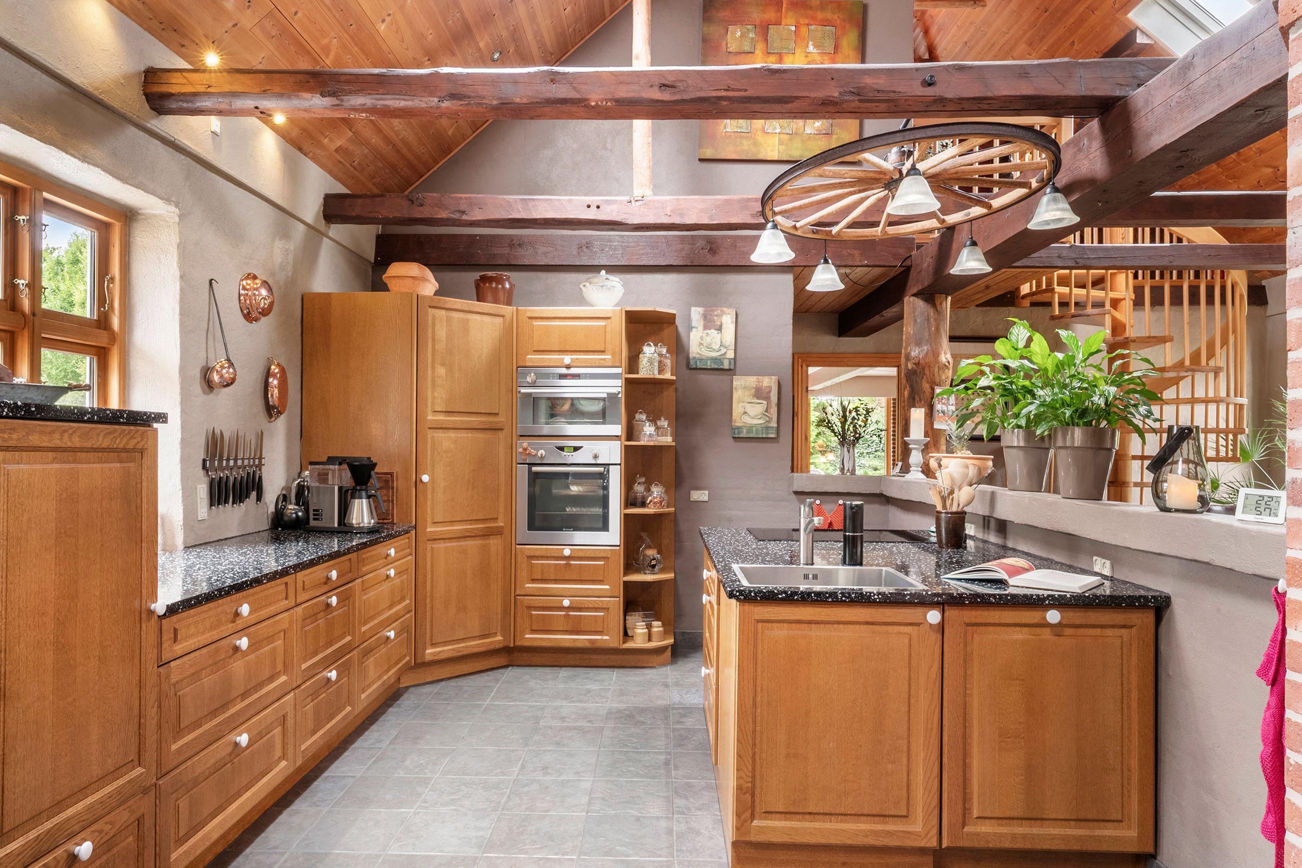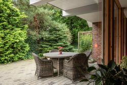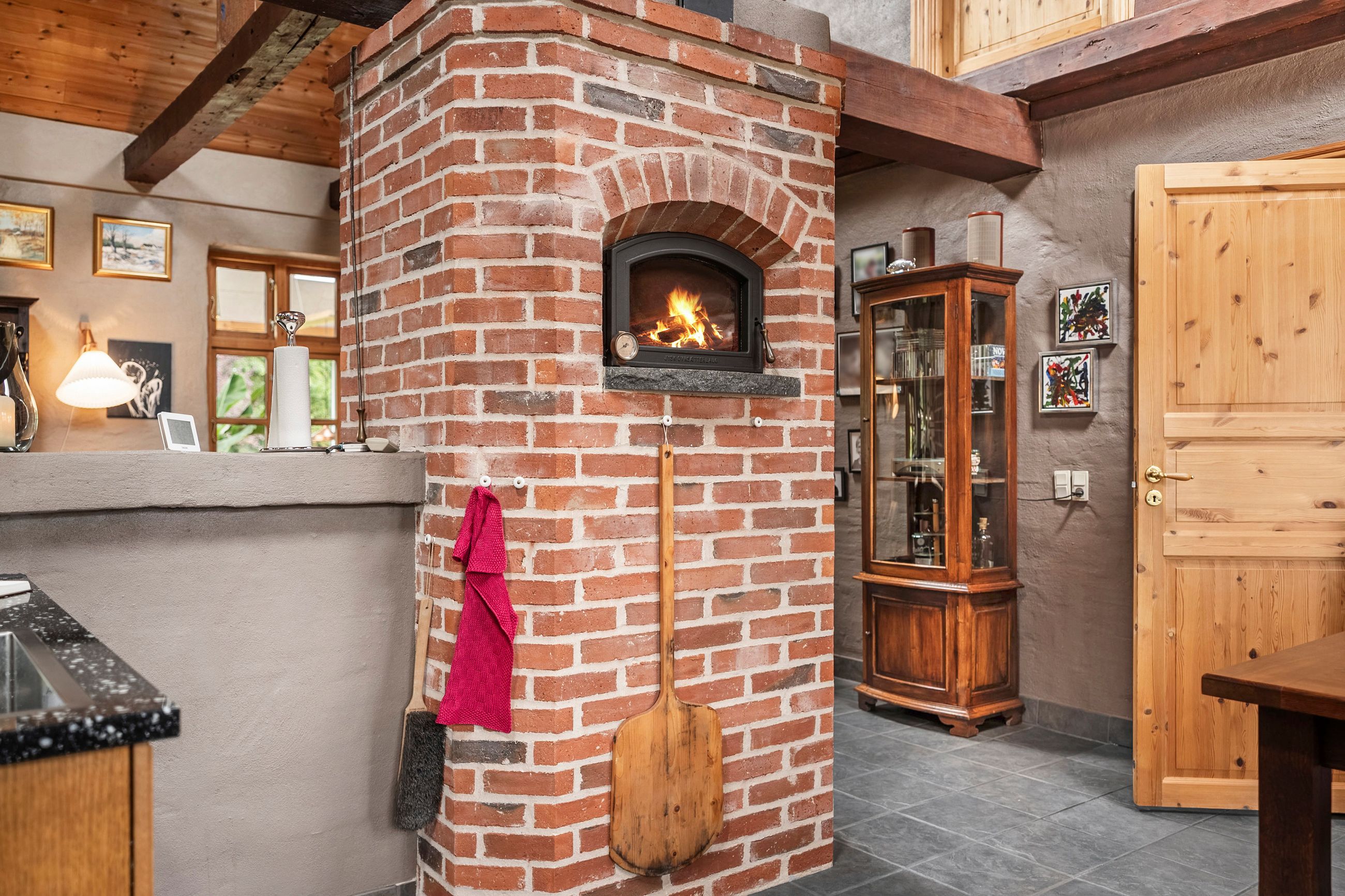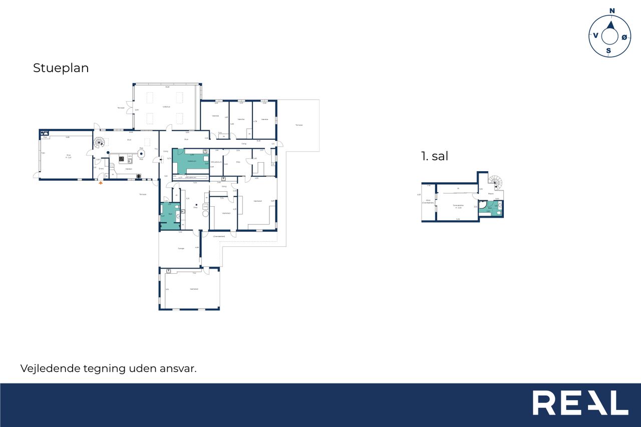Entreén byder dig velkommen og åbner op til den ene af husets stuer der ligger i forbindelse med køkkene/alruummet og husets anden stue med indbygget pejs, perfekt sted til at samle familien. Fra køkkenet fører gangen videre til husets ene badeværelse der er indrettet mørkt møbelarrangement og med dobbelt bruseniche. Fra gangen har man adgang til en skøn udestue med store vinduer og ovenlys vinduer, hvilket skaber et fantastisk lys. I udestuen er der plads til både stort spisebord og sofaarrangement. Fra udestuen kan man åbne op til et af ejendommens terrasser hvor aftensolen kan nydes.