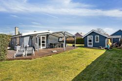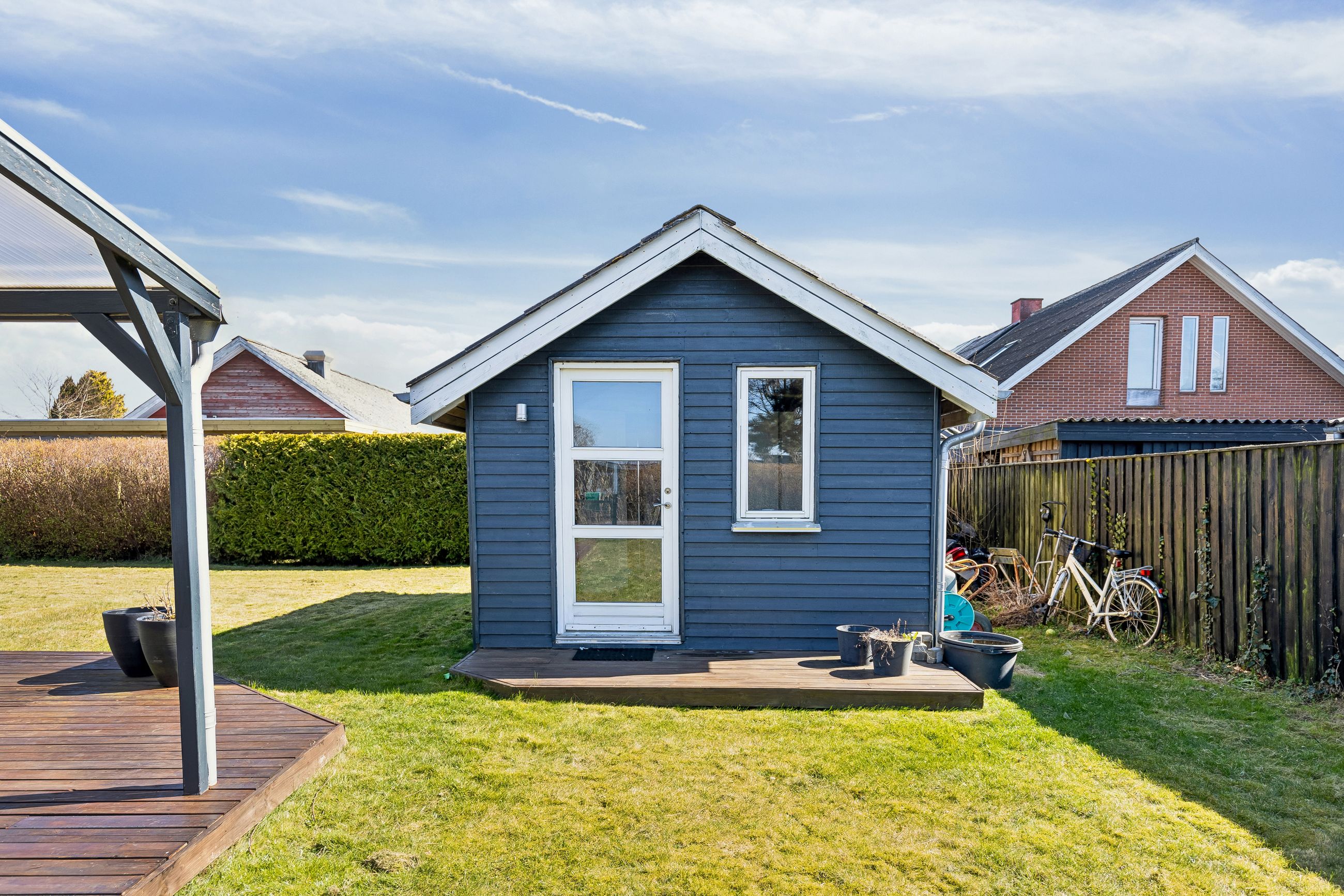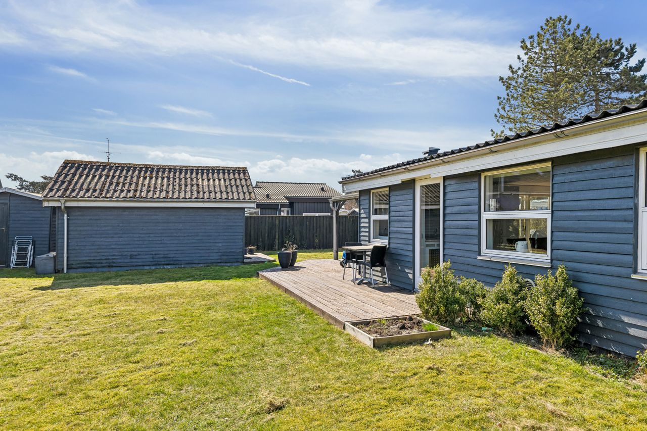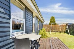 Udenfor strækker den store have sig ud, og her er der god plads til både leg og afslapning. Det er en perfekt ramme for børnene, der kan løbe rundt og lege, eller for voksne, der ønsker at nyde solen, læse en bog eller grille om aftenen. Haven indbyder til hyggelige stunder og giver et privat rum, hvor du kan slappe af og lade op.