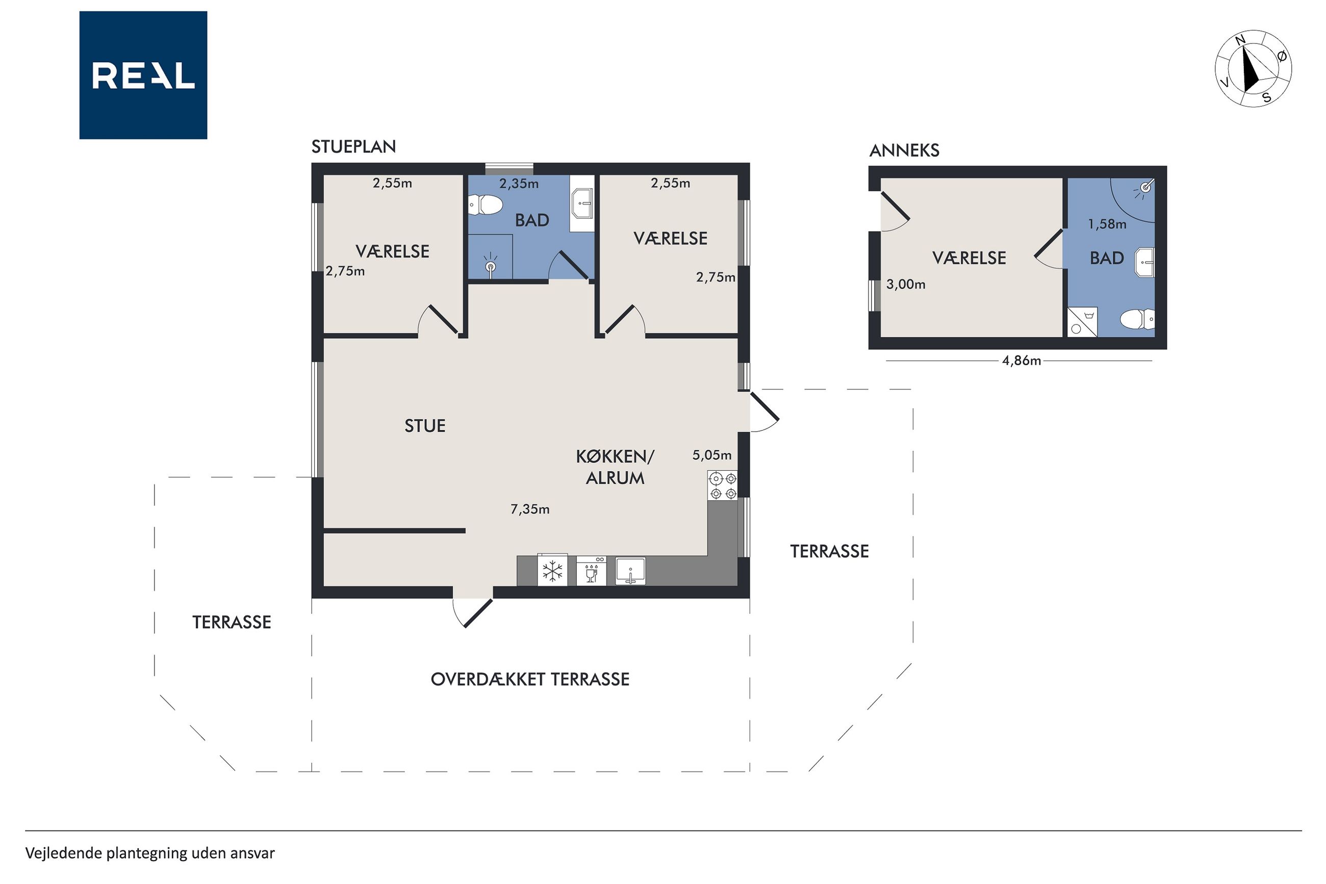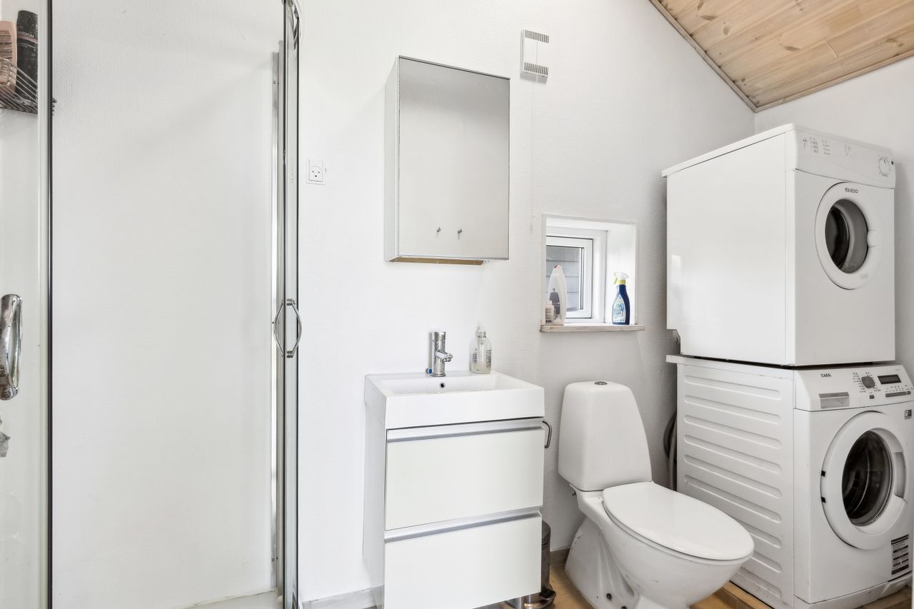 Huset byder også på to dejlige og lyse soverum, hvor du kan finde ro og nyde stilheden om natten. Begge værelser er indrettet med komfort i tankerne og giver en følelse af varme og hjemlig hygge. Det funktionelle badeværelse med bruser fuldender husets praktiske og komfortable indretning.