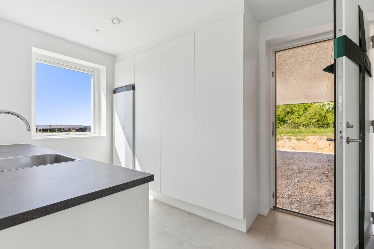 Velkommen til Juliehøj 37 – en moderne, nyopført funkisvilla beliggende i det naturskønne og rolige Tirsbæk Bakker. Ejendommen ligger ugeneret og byder på nem adgang til grønne områder, en smuk sø, stisystemer og motorvej E45. Samtidig er der kun få minutters kørsel hverdagens nødvendigheder, hvilket gør beliggenheden både fredfyldt og praktisk.