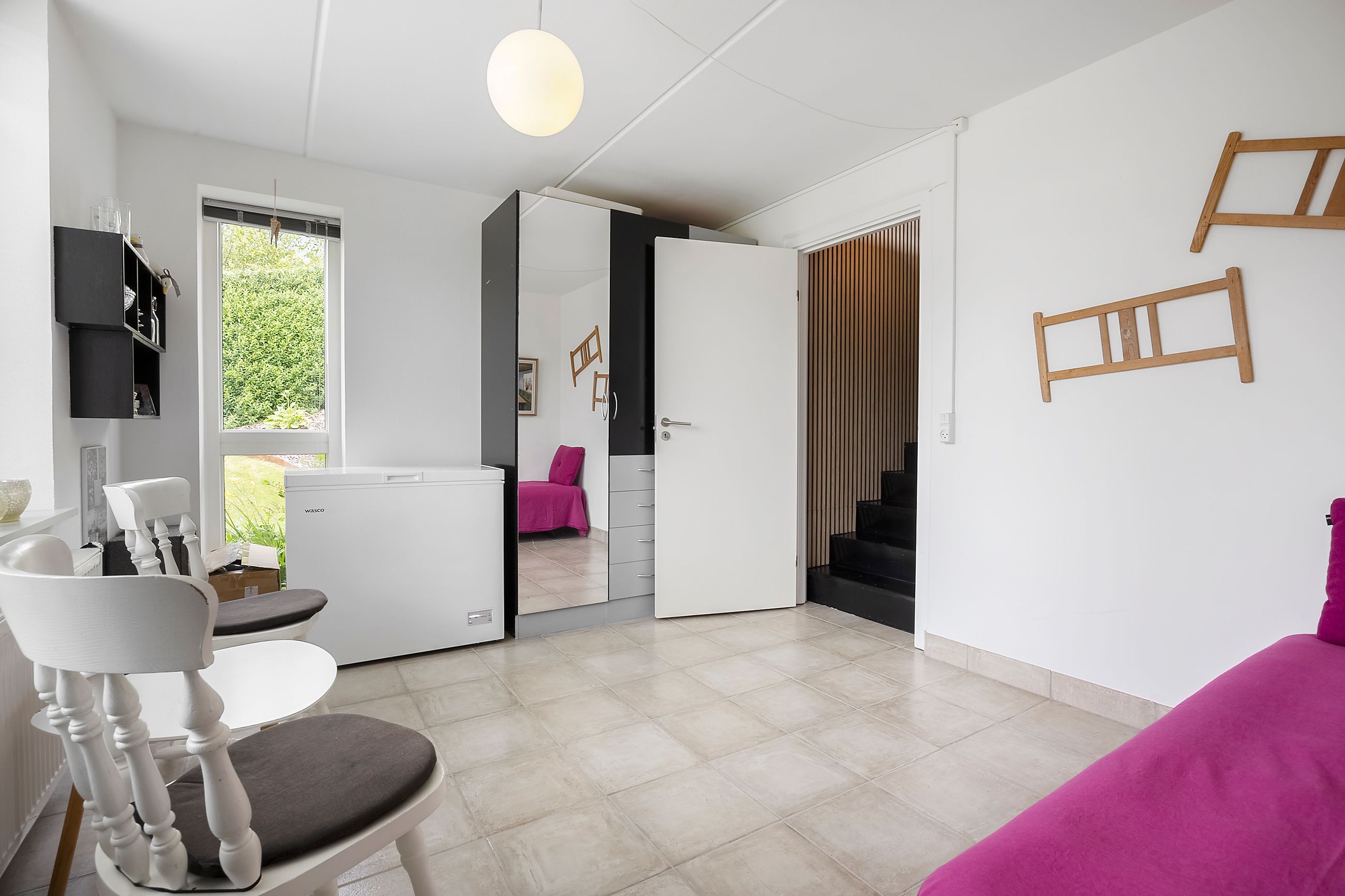 Her er to gode værelser, samt et ekstra værelse i underetagen, der kan bruges som børneværelse, gæsteværelse, hobbyrum eller hjemmekontor alt efter behov. Entréen er praktisk kombineret med bryggers med god plads til vaskesøjle og opbevaring.