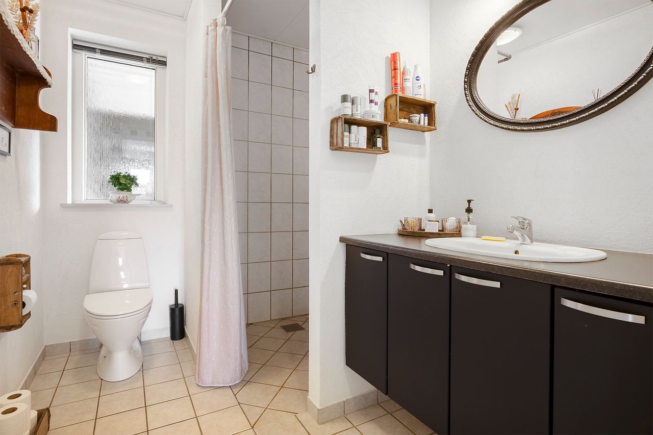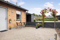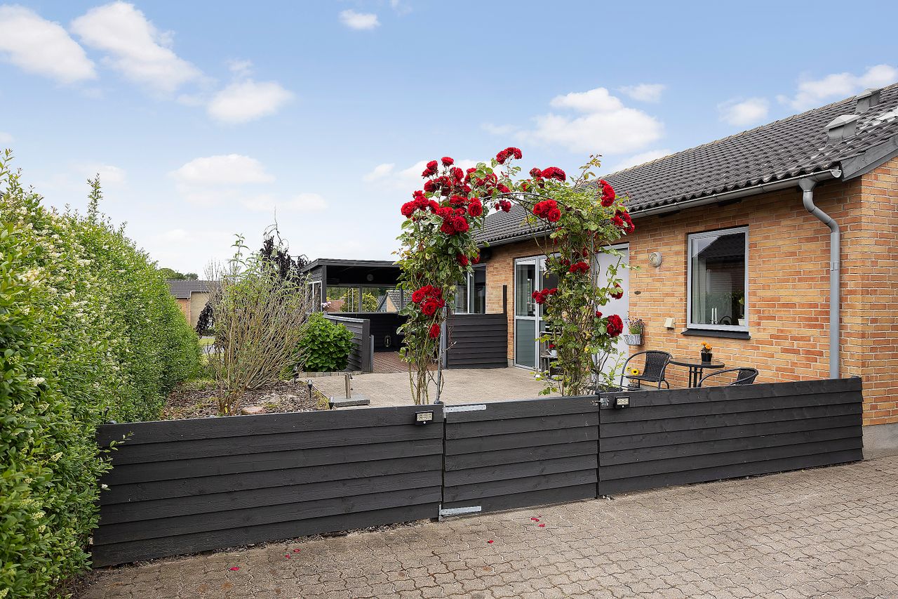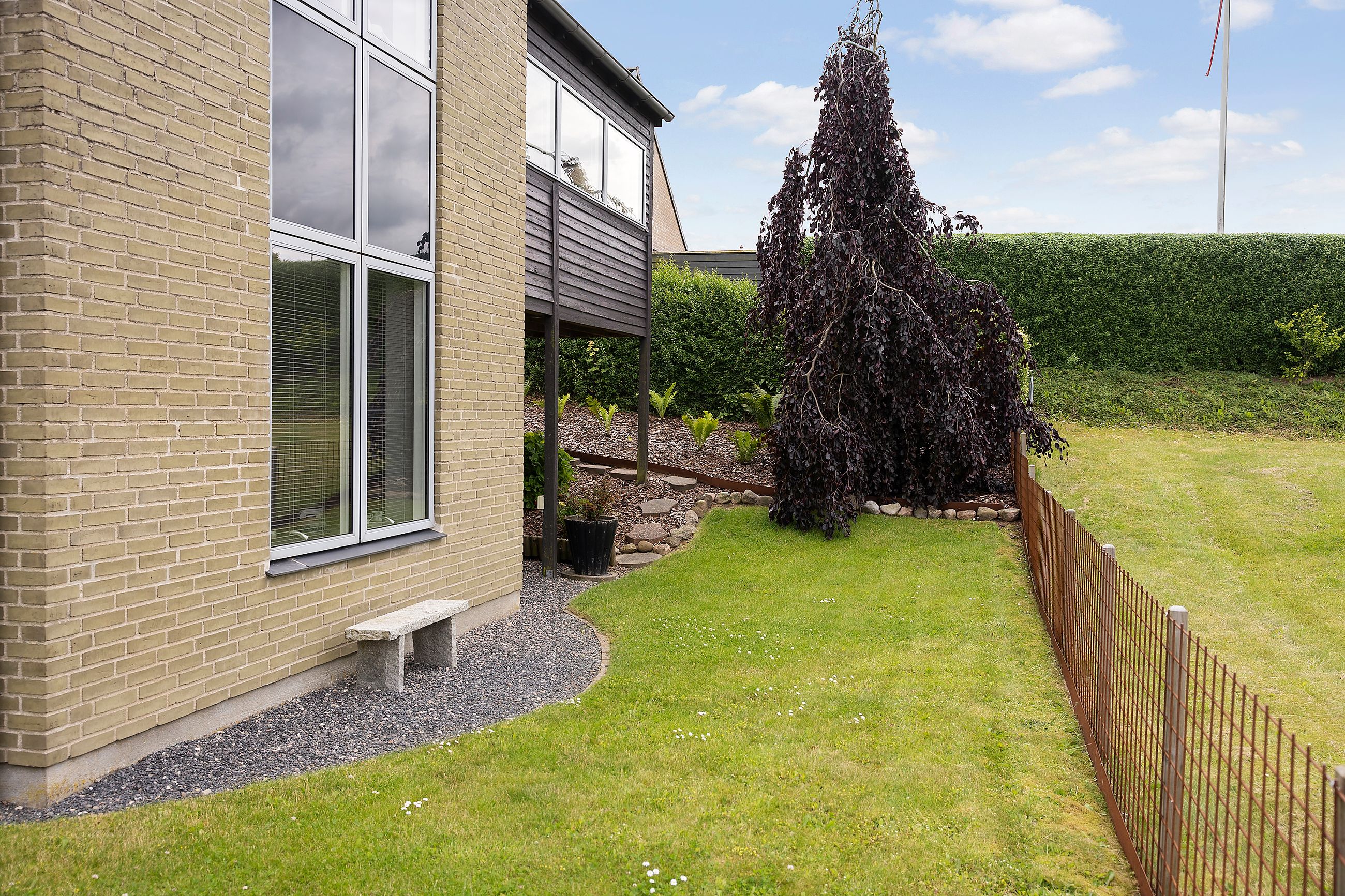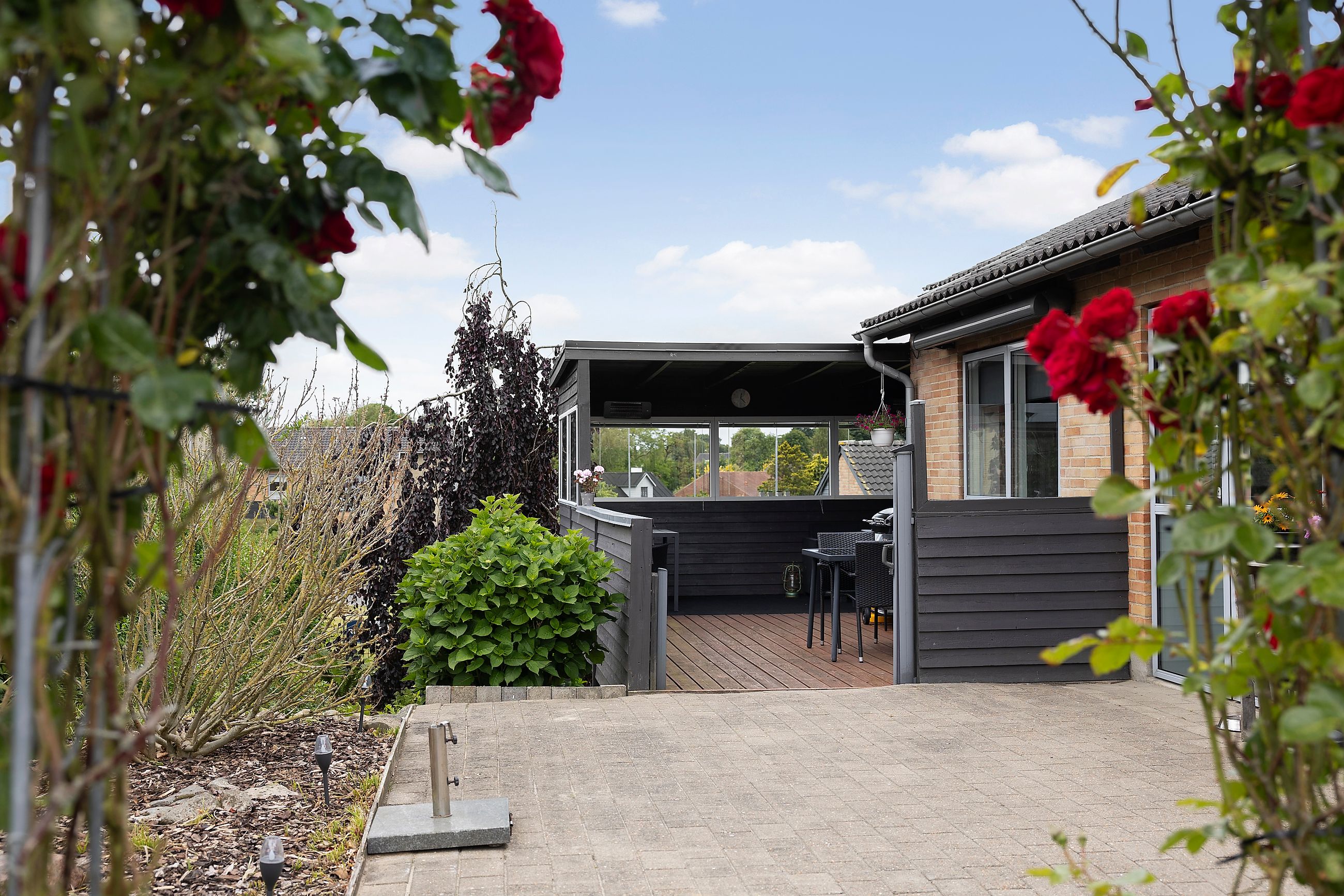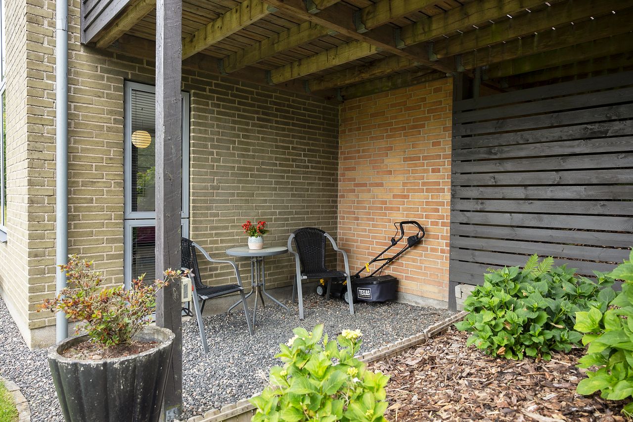 Udenfor får du en pæn, velholdt og nem have, der giver rig mulighed for afslapning uden omfattende vedligehold. Den store terrasse har både åbne og overdækkede afdelinger, så udelivet kan nydes uanset vejr og årstid.