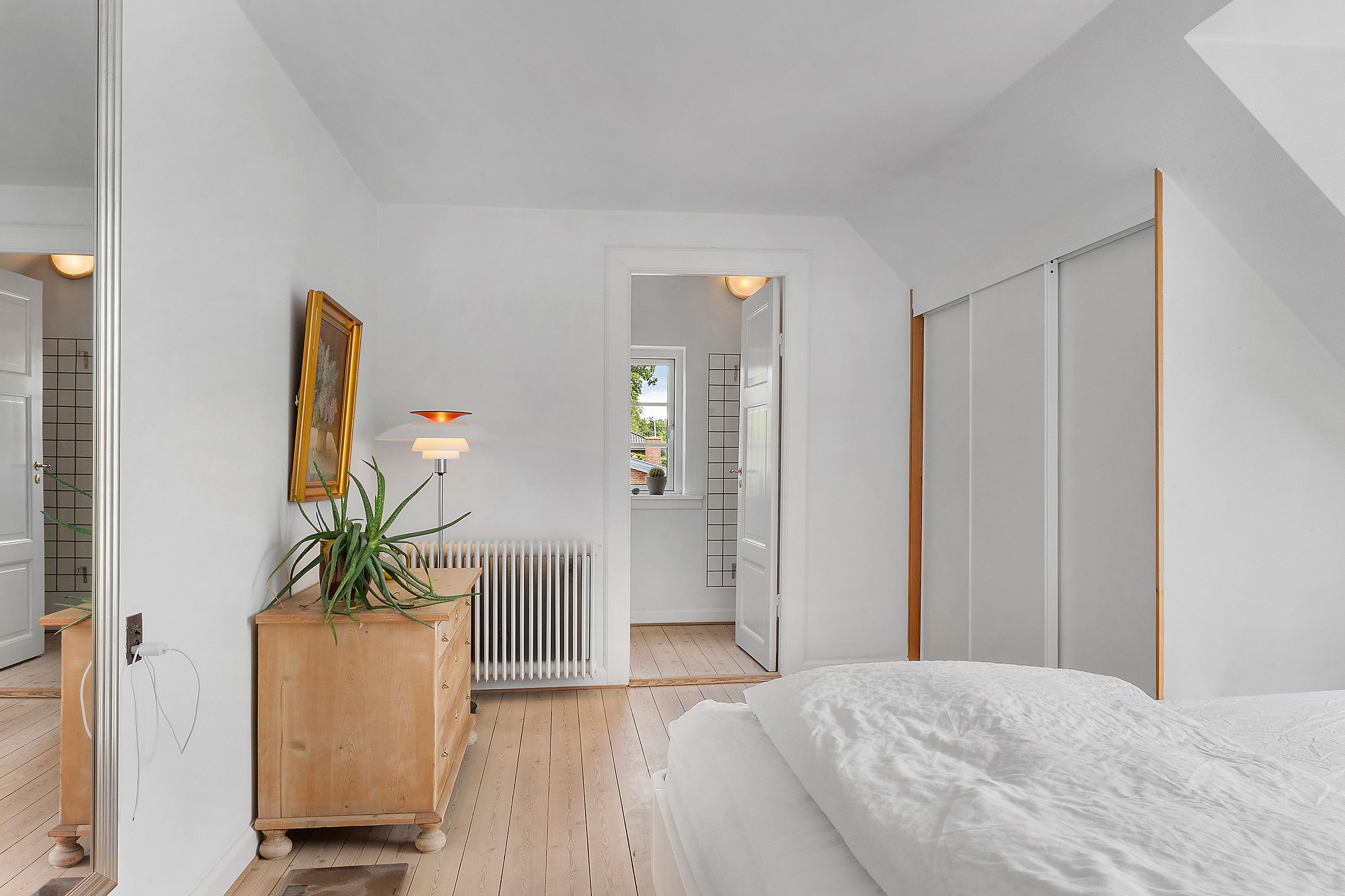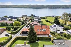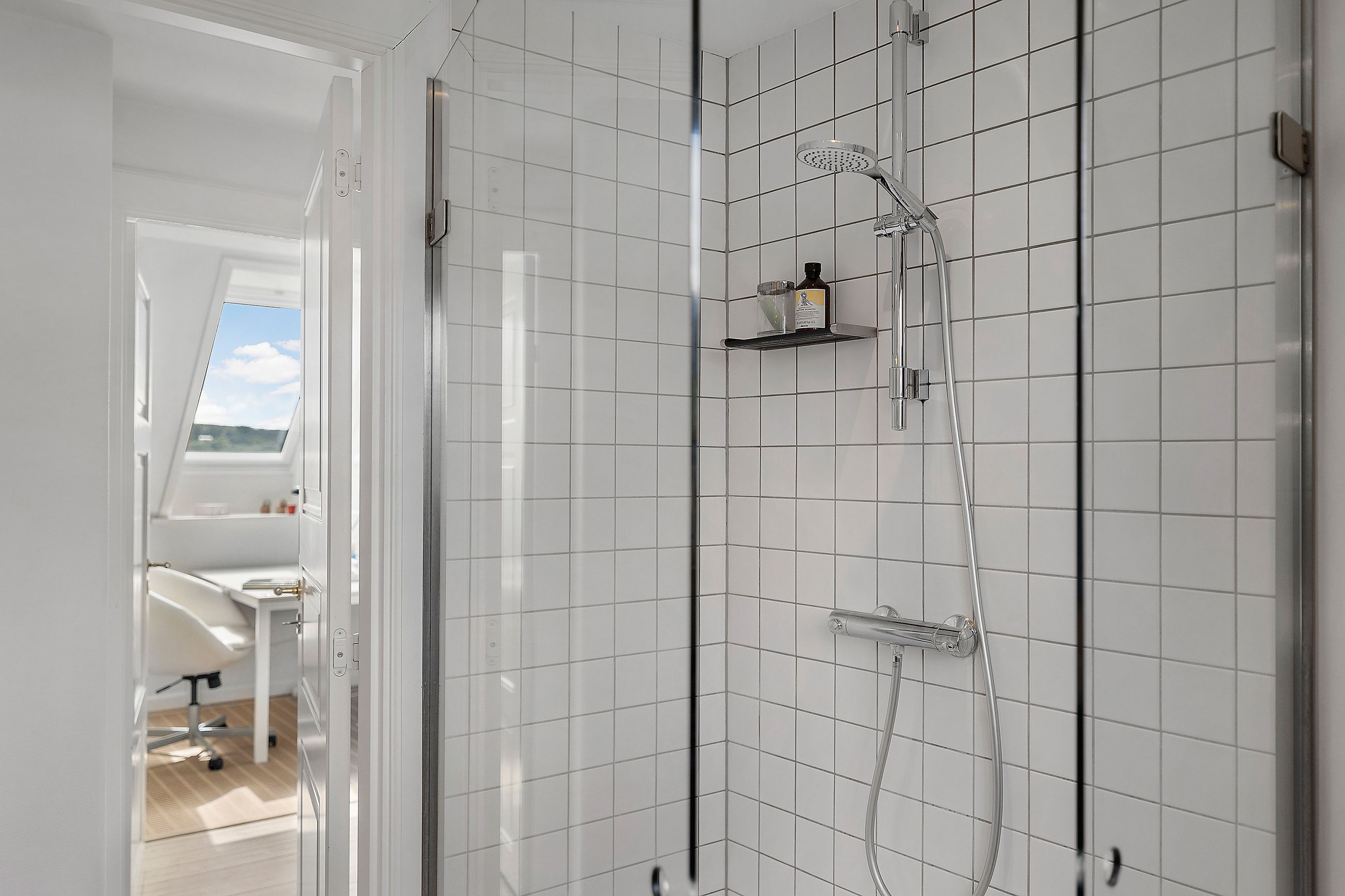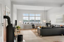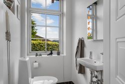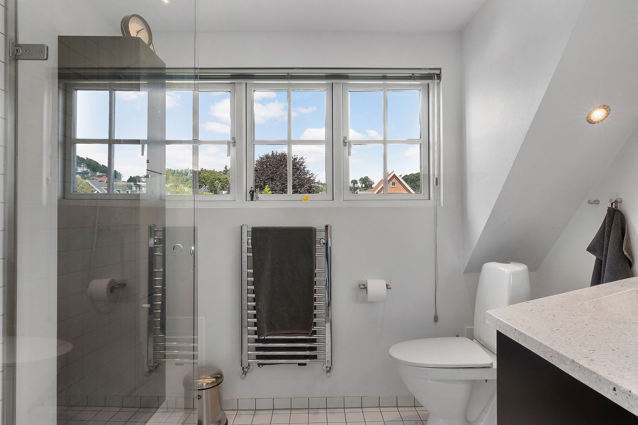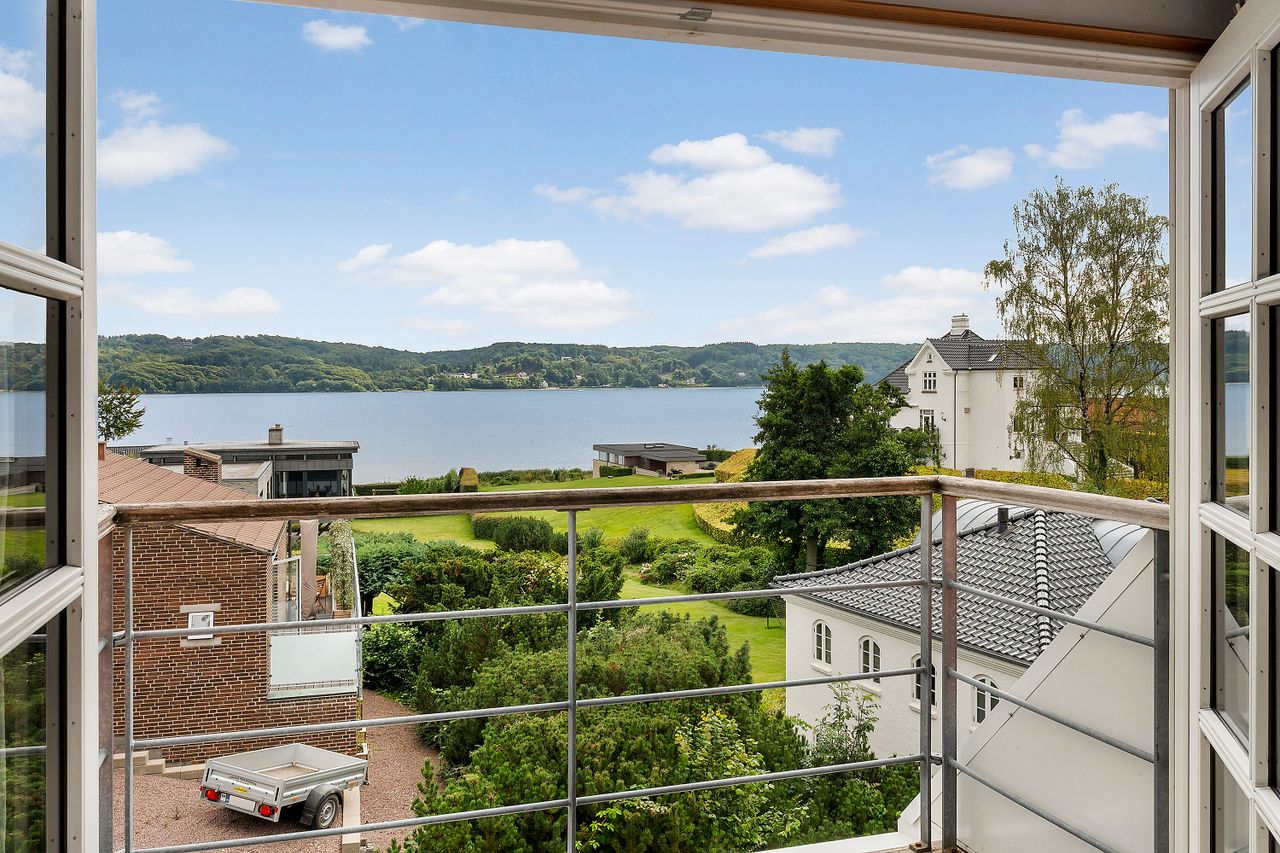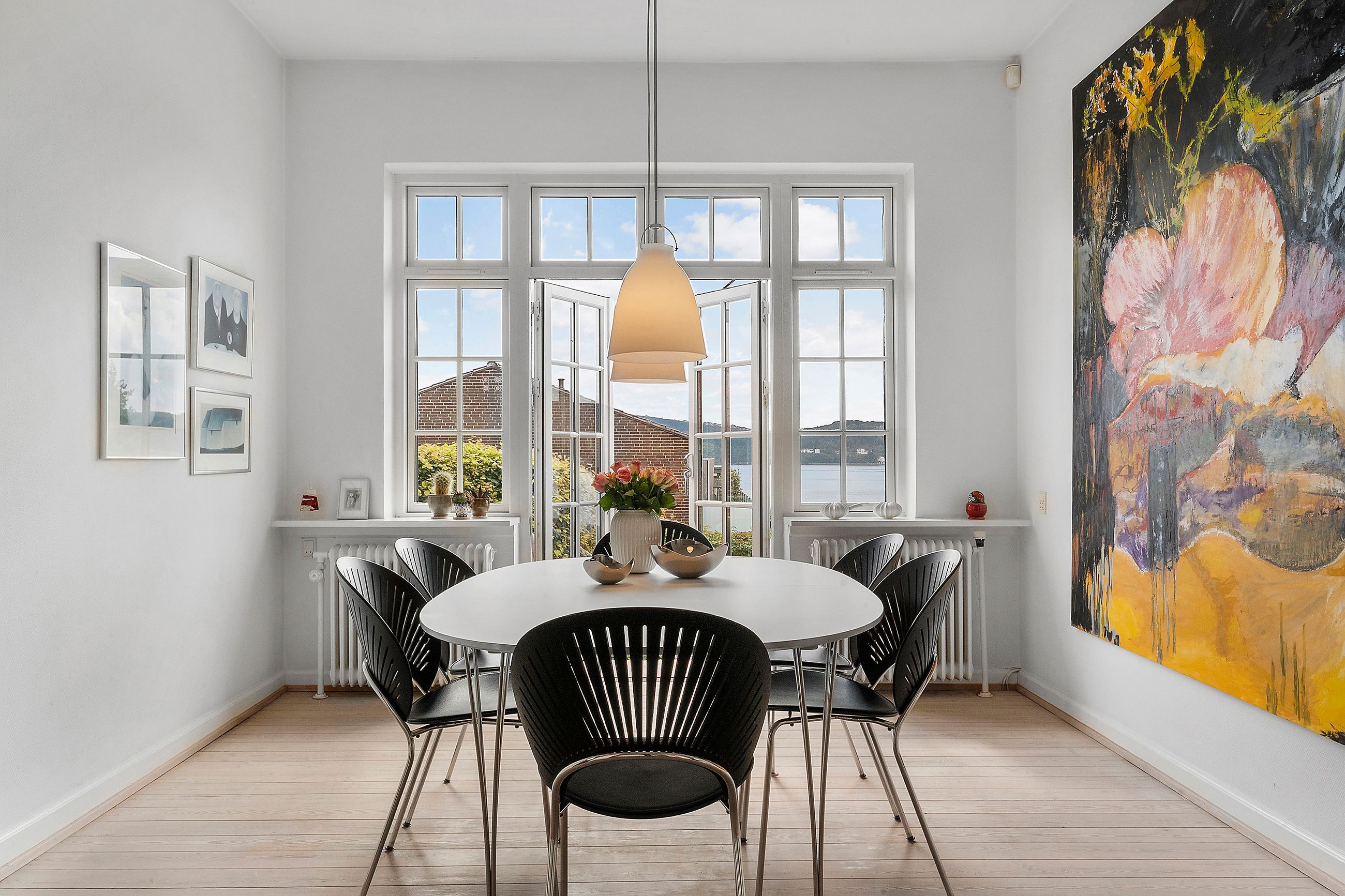 I stueplan mødes du af en indbydende entré med adgang til gæstetoilet. Det charmerende køkken har højt til loftet, flot gulv og en skøn udsigt – og ligger i åben forbindelse med spisestuen. Fra både spisestue og stue er der direkte udgang til en sydvendt terrasse med fliser og betagende udsigt – perfekt til afslapning og hyggelige stunder.På første sal finder du et nyere badeværelse fra 2012 med brus, tre gode værelser samt et stort soveværelse med walk-in closet og udgang til privat altan – ideel til morgenkaffen med udsigt til fjorden.
