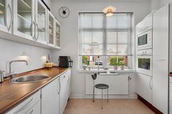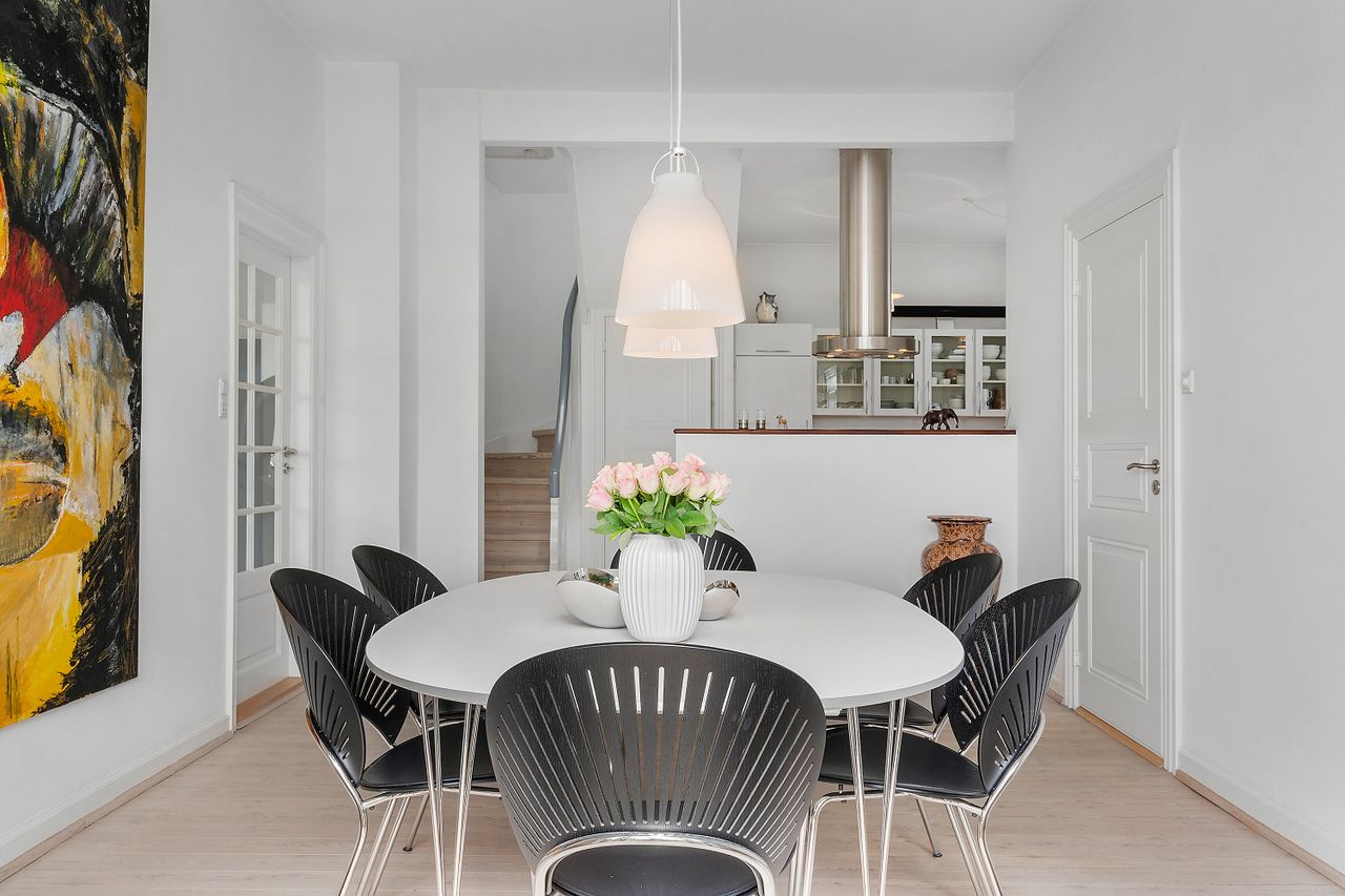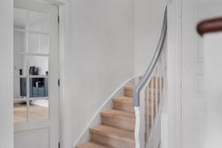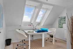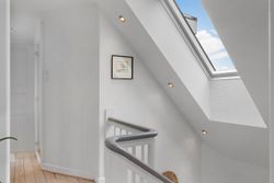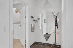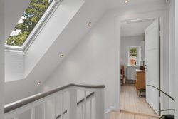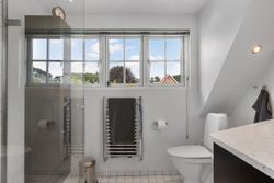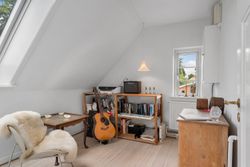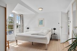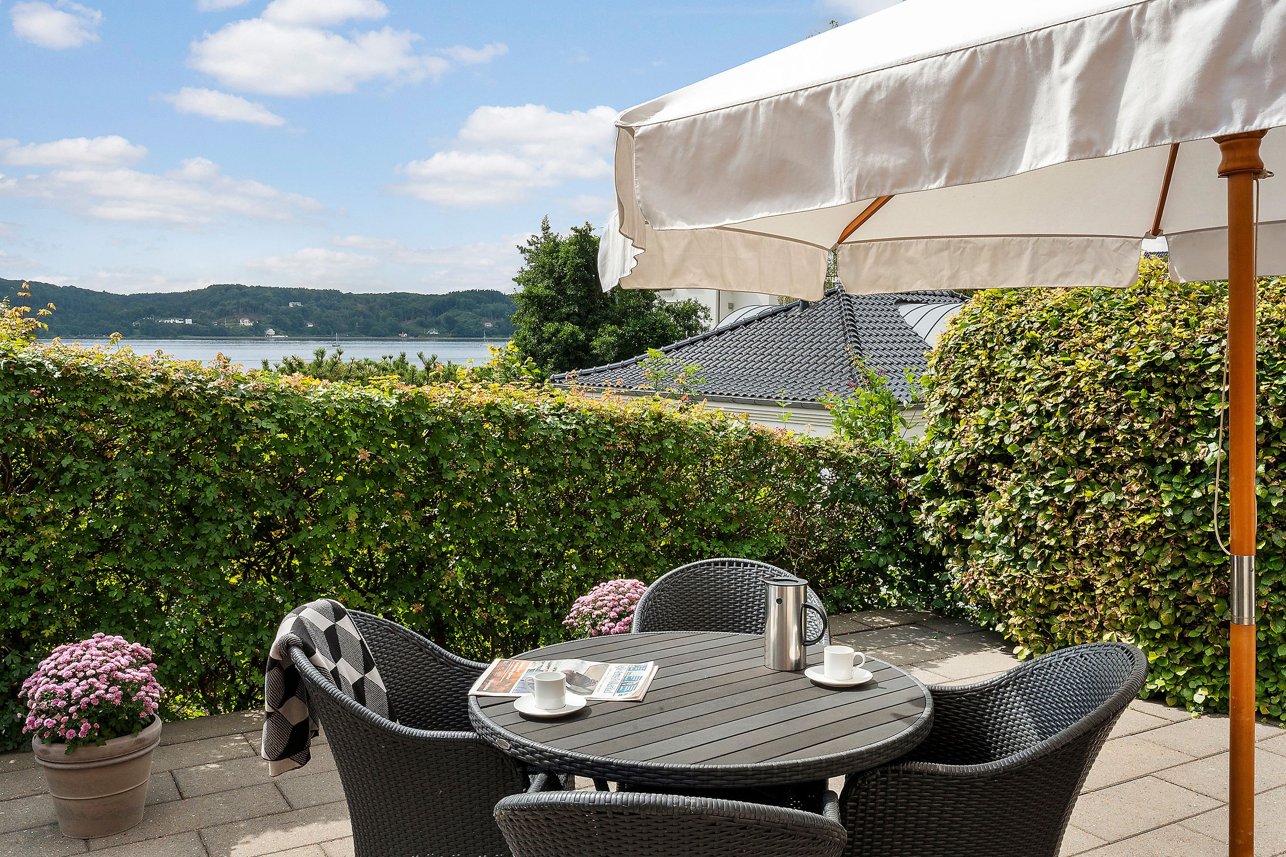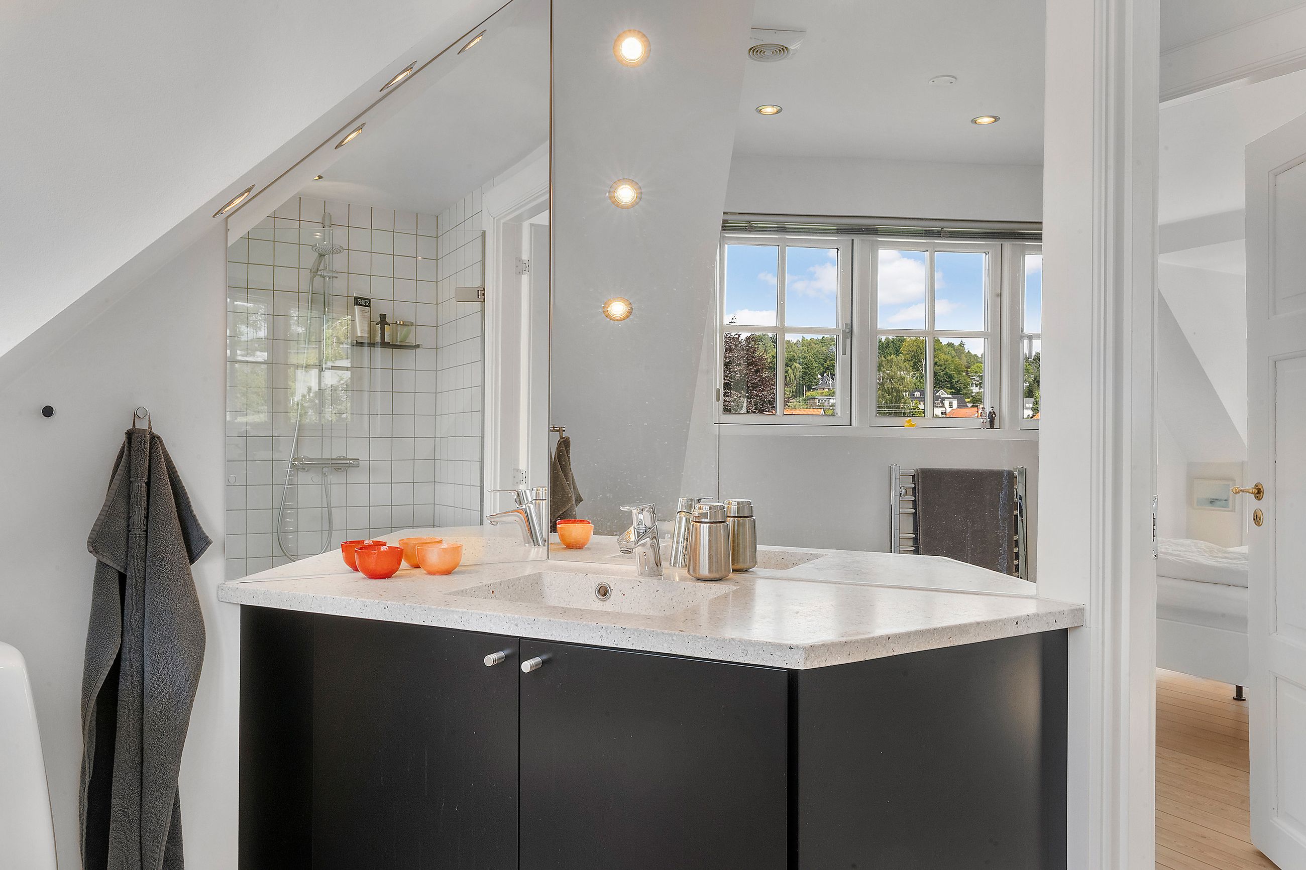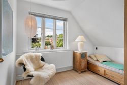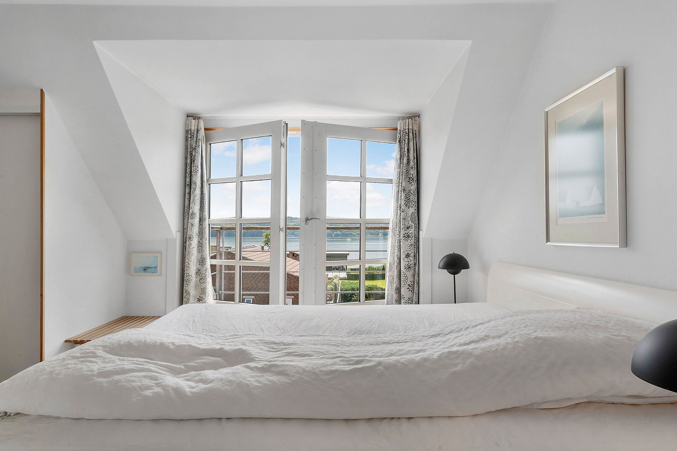 I stueplan mødes du af en indbydende entré med adgang til gæstetoilet. Det charmerende køkken har højt til loftet, flot gulv og en skøn udsigt – og ligger i åben forbindelse med spisestuen. Fra både spisestue og stue er der direkte udgang til en sydvendt terrasse med fliser og betagende udsigt – perfekt til afslapning og hyggelige stunder.På første sal finder du et nyere badeværelse fra 2012 med brus, tre gode værelser samt et stort soveværelse med walk-in closet og udgang til privat altan – ideel til morgenkaffen med udsigt til fjorden.