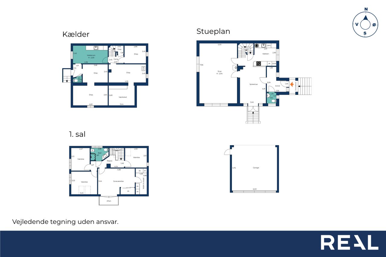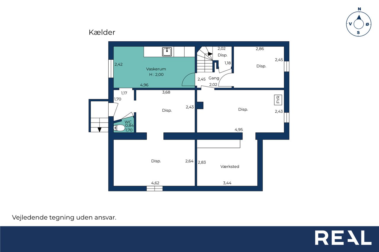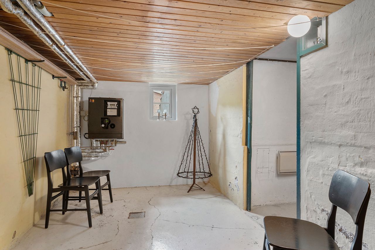 Kælderen rummer et praktisk vaskerum, tre disponible rum, et værksted og endnu et toilet. Her er der rig mulighed for opbevaring eller hobbyrum.