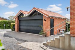 Grunden er flot anlagt med en opvokset have, vestvendt terrasse og god plads til leg og udeliv. Til boligen hører desuden en rummelig dobbelt garage opført i 2010 med el-port fra 2012.