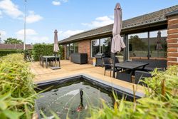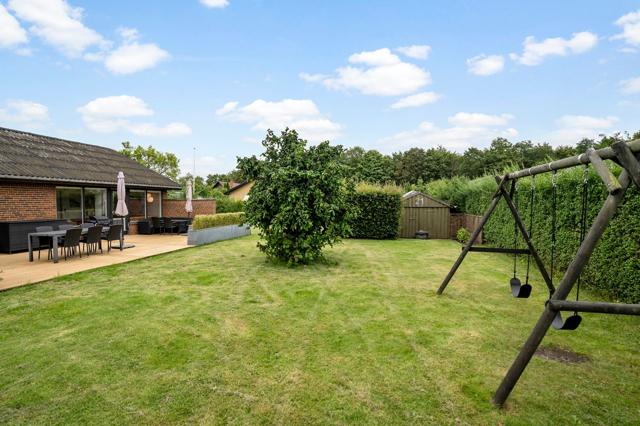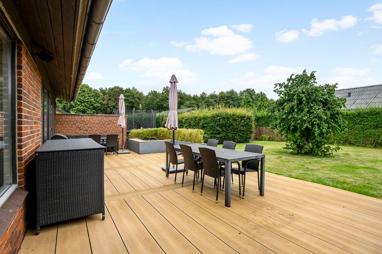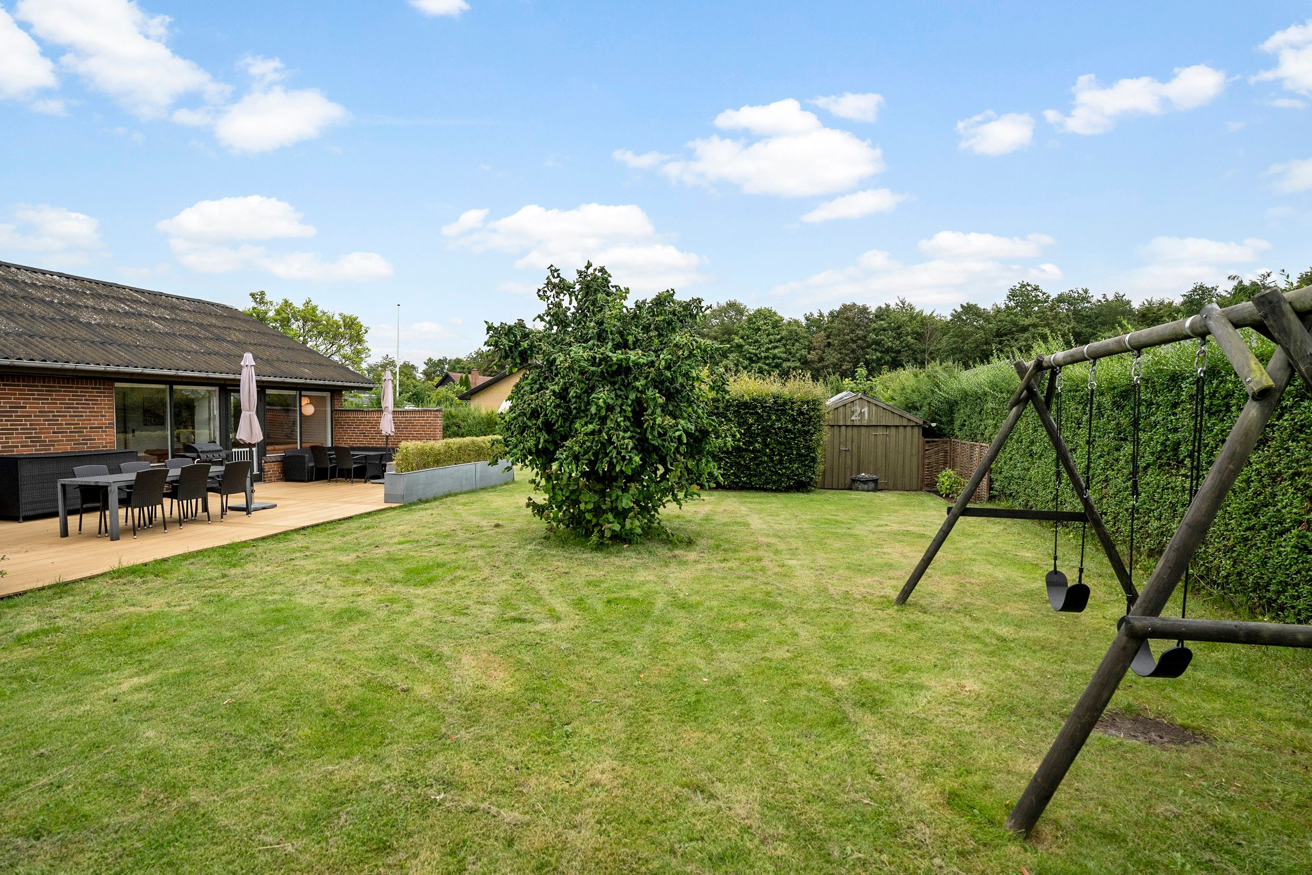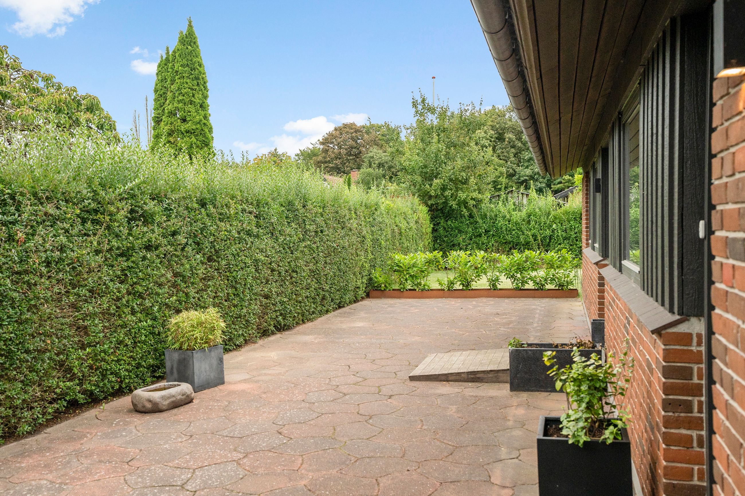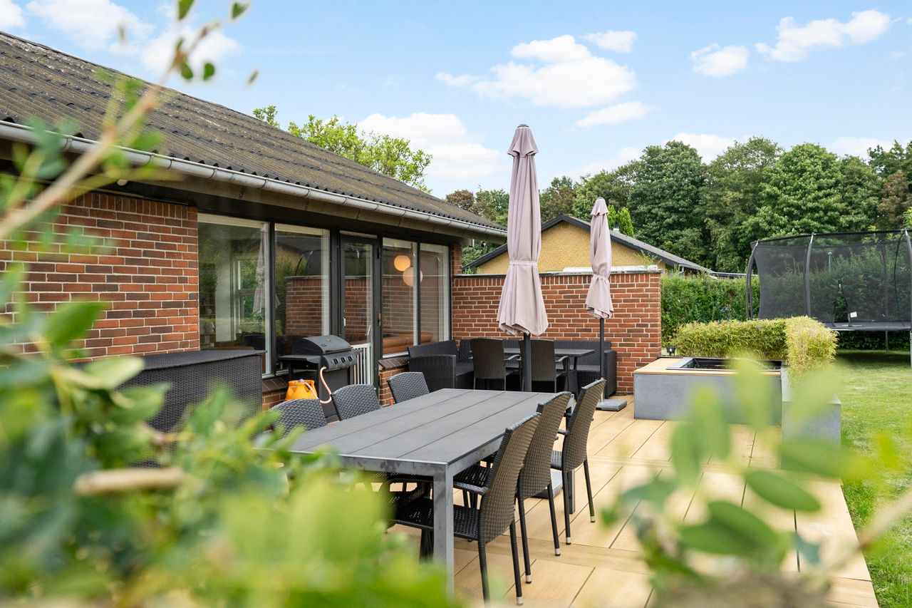 Udendørs finder du en hyggelig og nem vedligeholdt have med en dejlig terrasse, der indbyder til afslapning, grillmiddage og udendørs hygge – et perfekt fristed i sommerhalvåret.