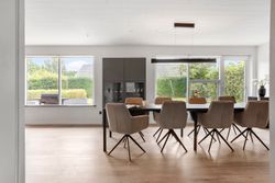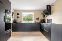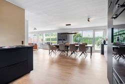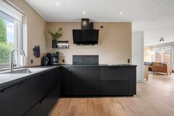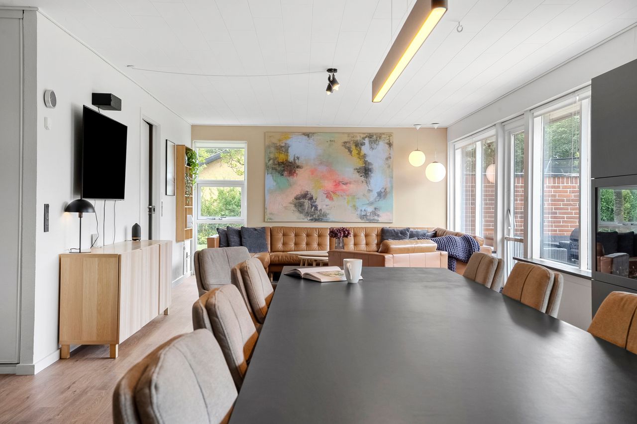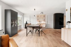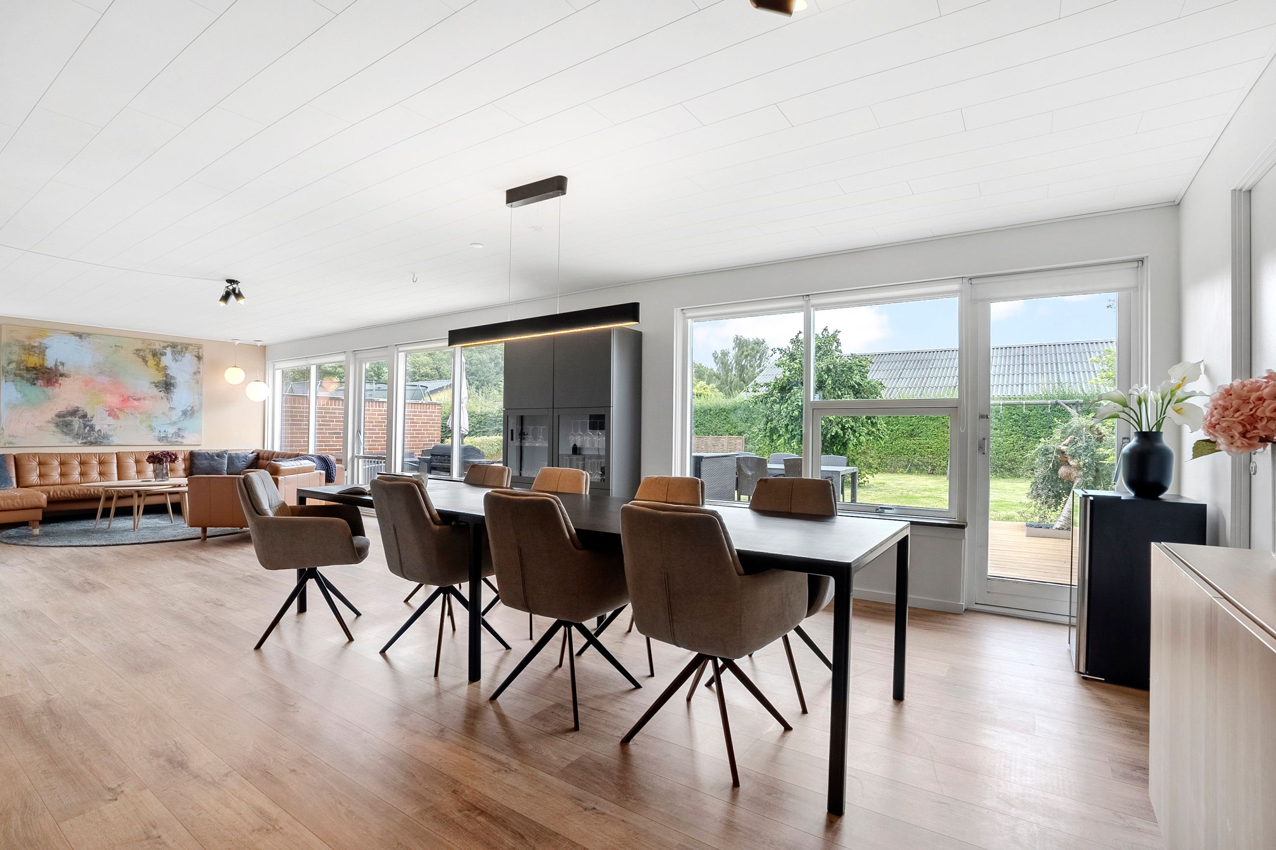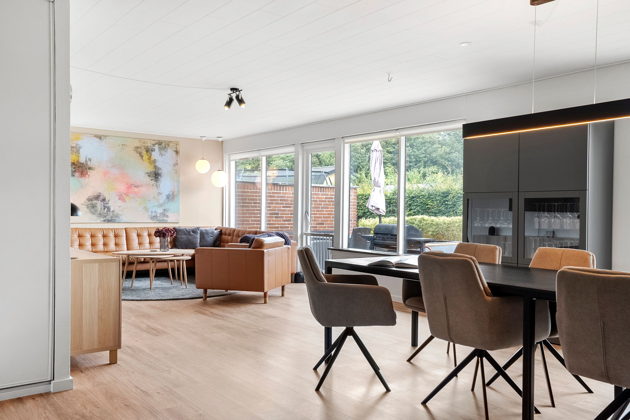 Hjemmets hjerte er det flotte, nyere køkken, som ligger i åben forbindelse med alrum og stue. Her skaber de åbne rammer en skøn atmosfære med masser af naturligt lys og gode muligheder for samvær og hyggelige stunder. Køkkenet er moderne indrettet med stilrene elementer, rigeligt bord- og skabsplads samt plads til at udfolde madlavningen.