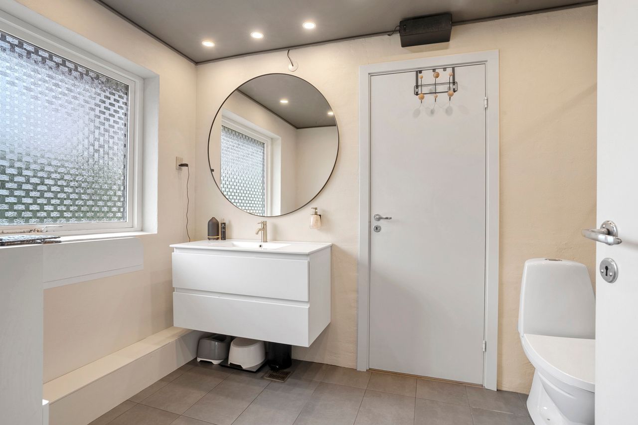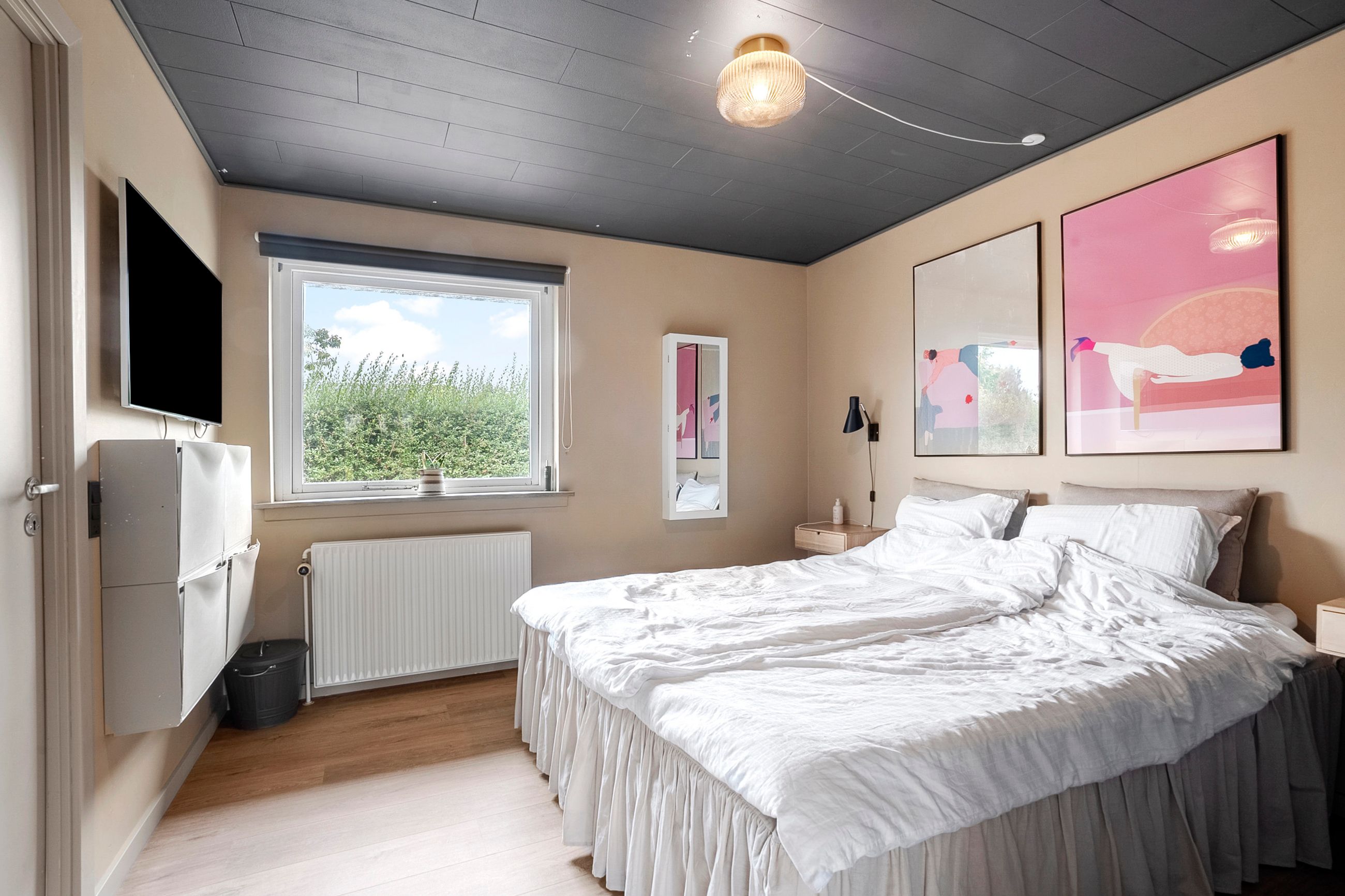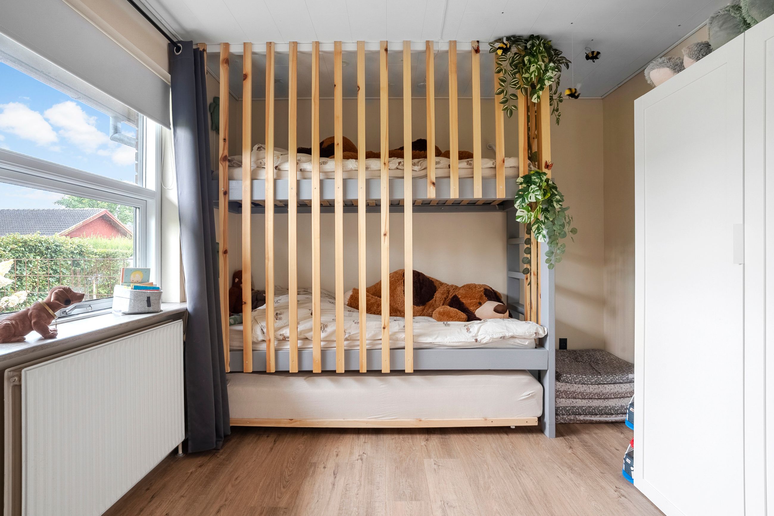 Boligen rummer tre gode værelser, der nemt kan indrettes som børneværelser, kontor eller gæsteværelser – alt efter behov. Det renoverede badeværelse er lyst og indbydende med en praktisk bruseniche og moderne inventar.