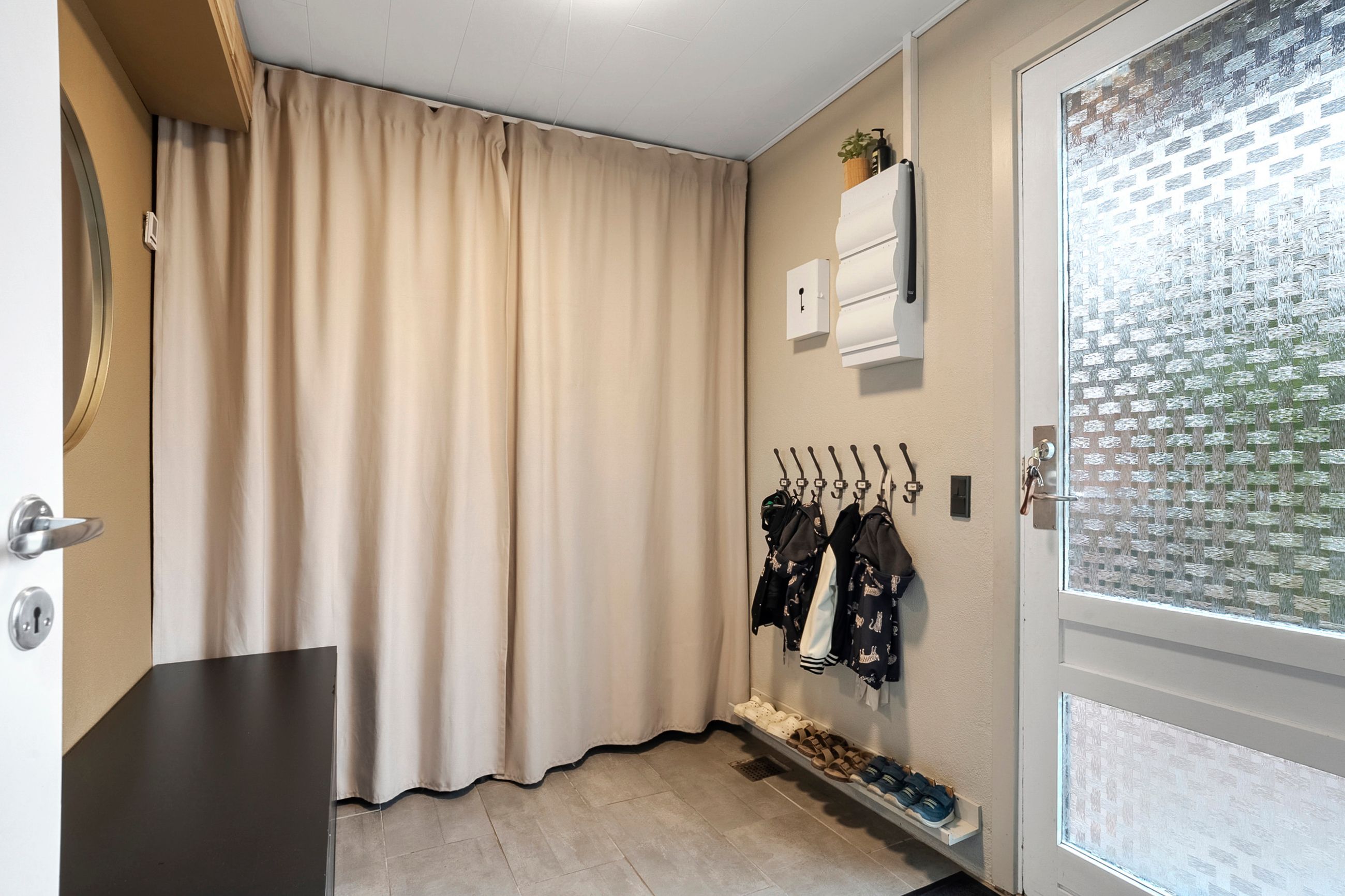 Beliggende i et roligt kvarter, giver denne bolig både trygge rammer for børnene og en god base for dem. Beliggenheden er ideel med kort afstand til institution, indkøb, transport og naturoplevelser, hvilket gør denne bolig til et trygt og bekvemt sted at bo.
