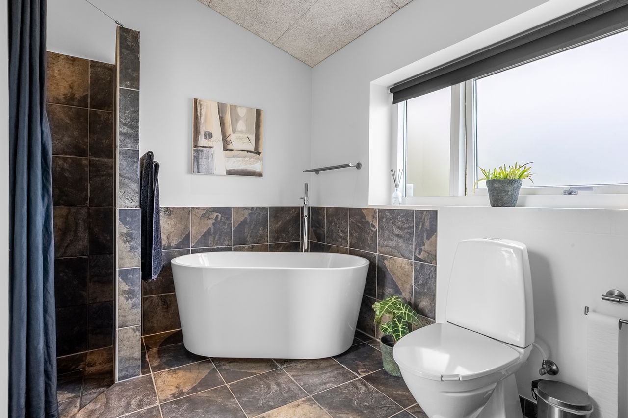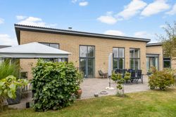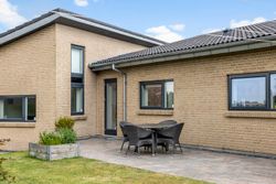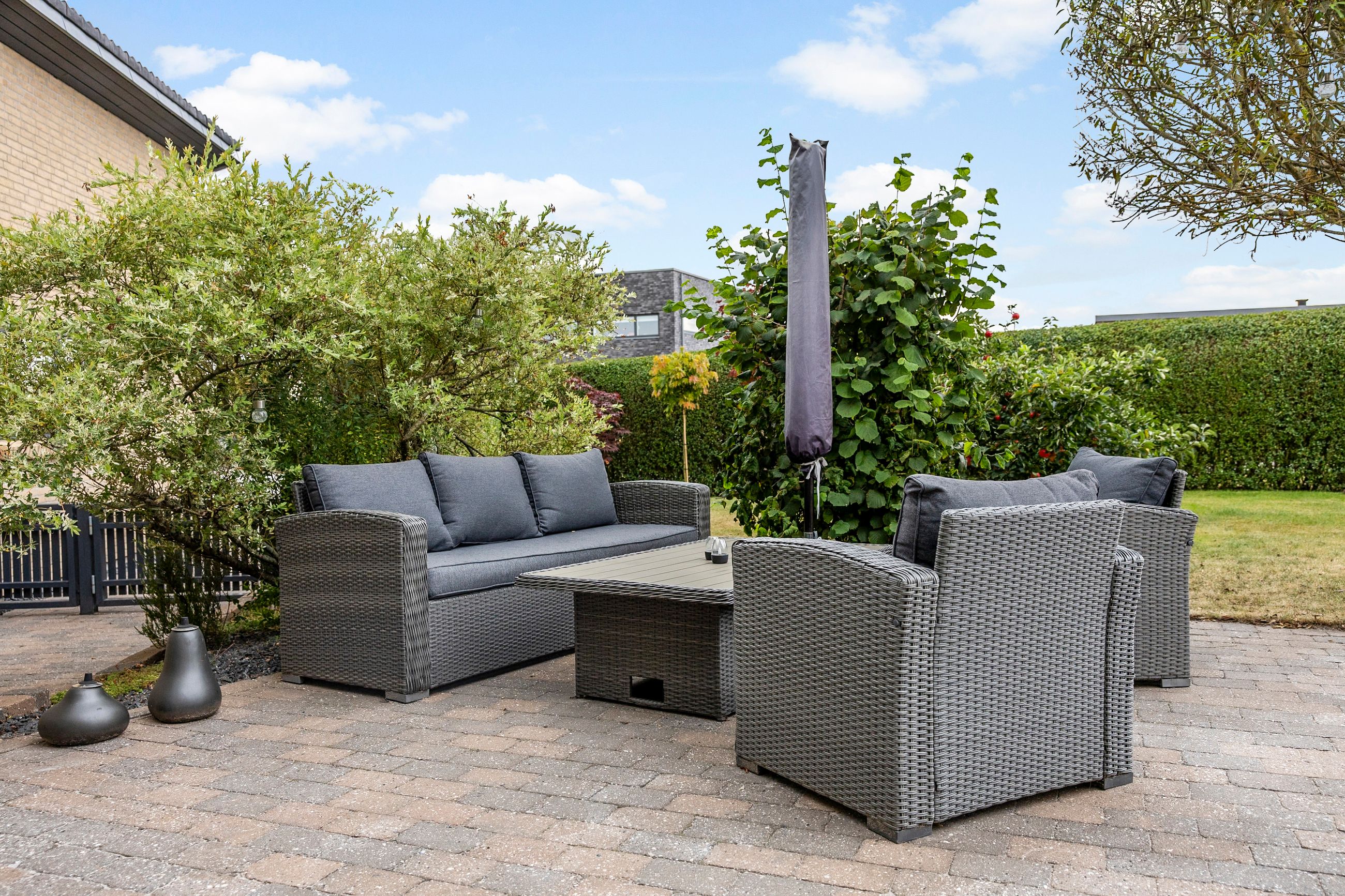 Udendørs venter en stor og ugeneret terrasse, hvor udelivet kan leves i fulde drag. Her er masser af plads til sommerens grillmiddage, børneleg eller rolig afslapning under åben himmel. Til huset hører også en rummelig dobbeltgarage med gulvvarme – en luksus, man hurtigt lærer at sætte pris på.