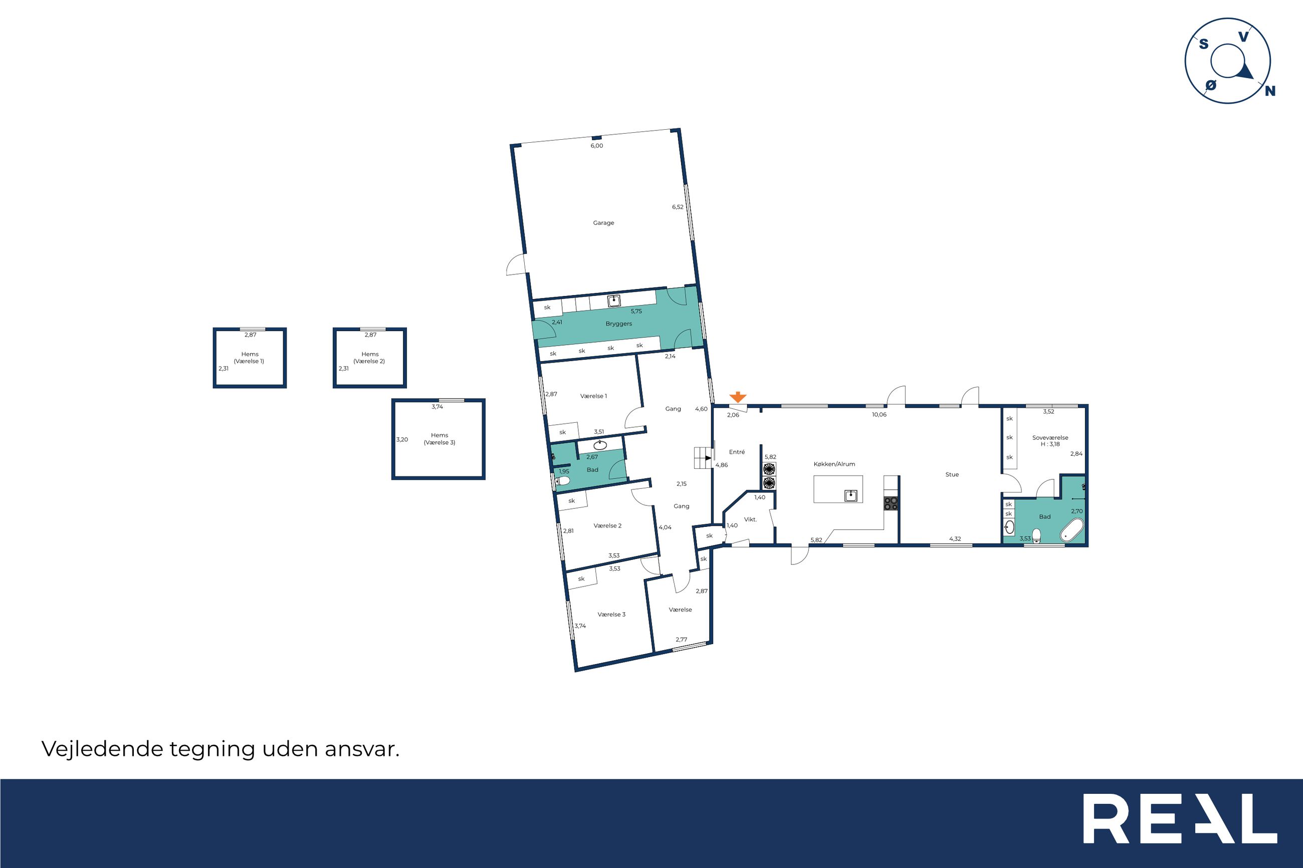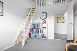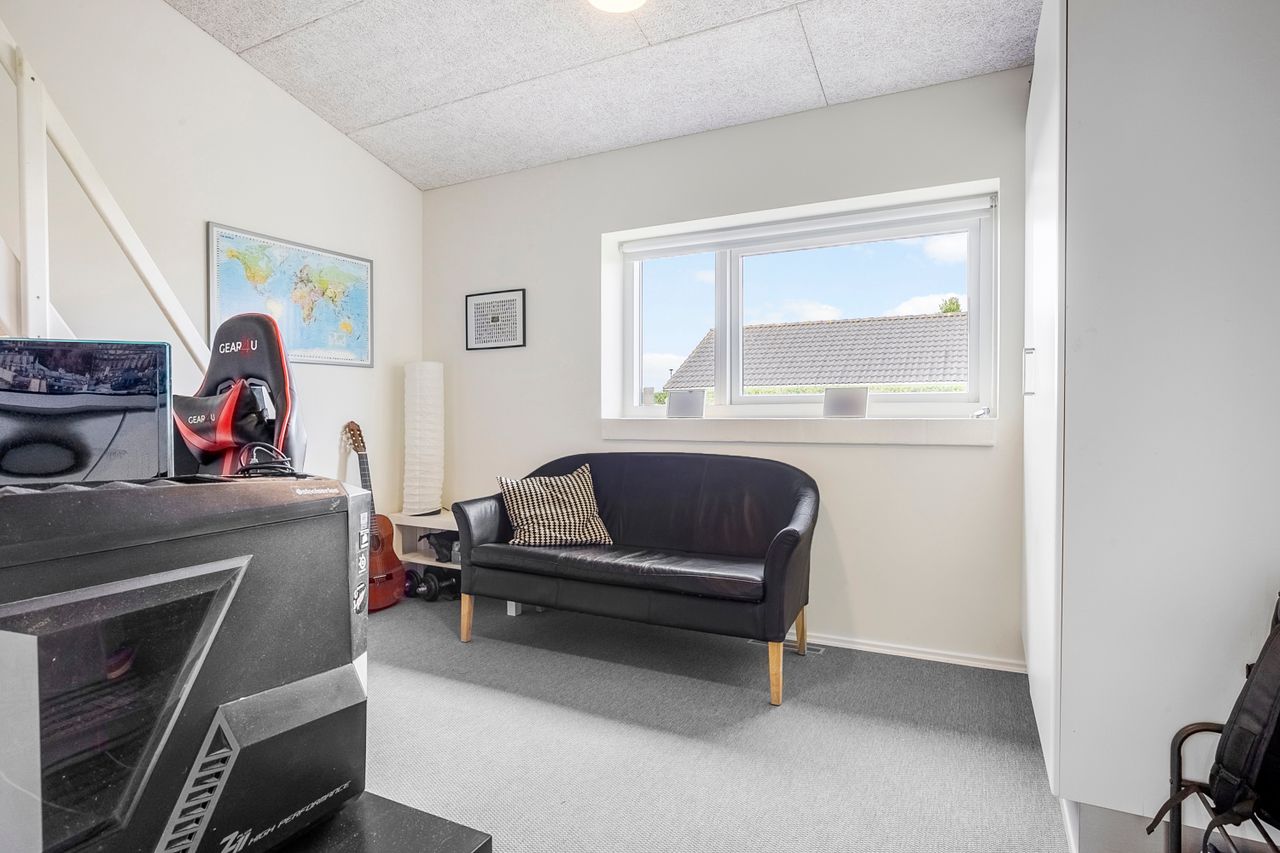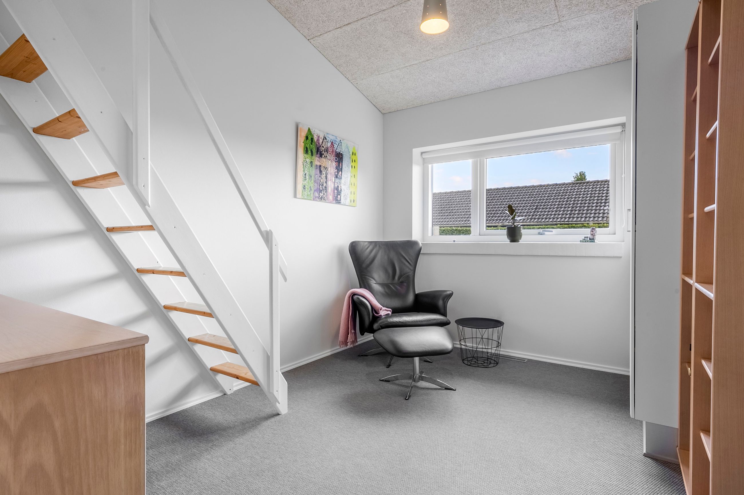 Villaen rummer hele fem værelser – perfekt til den store eller voksende familie. Forældreafdelingen forkæler med eget badeværelse, direkte udgang til en privat terrasse samt adgang til den rolige forhave – et ideelt frirum til morgenkaffen eller aftensolens sidste stråler. Tre af de fire øvrige værelser er indrettet med hems, hvilket giver ekstra plads og masser af charme – perfekte til kontor eller børne- eller teenageværelser.