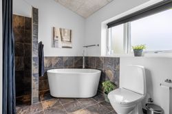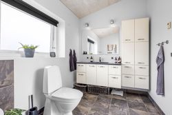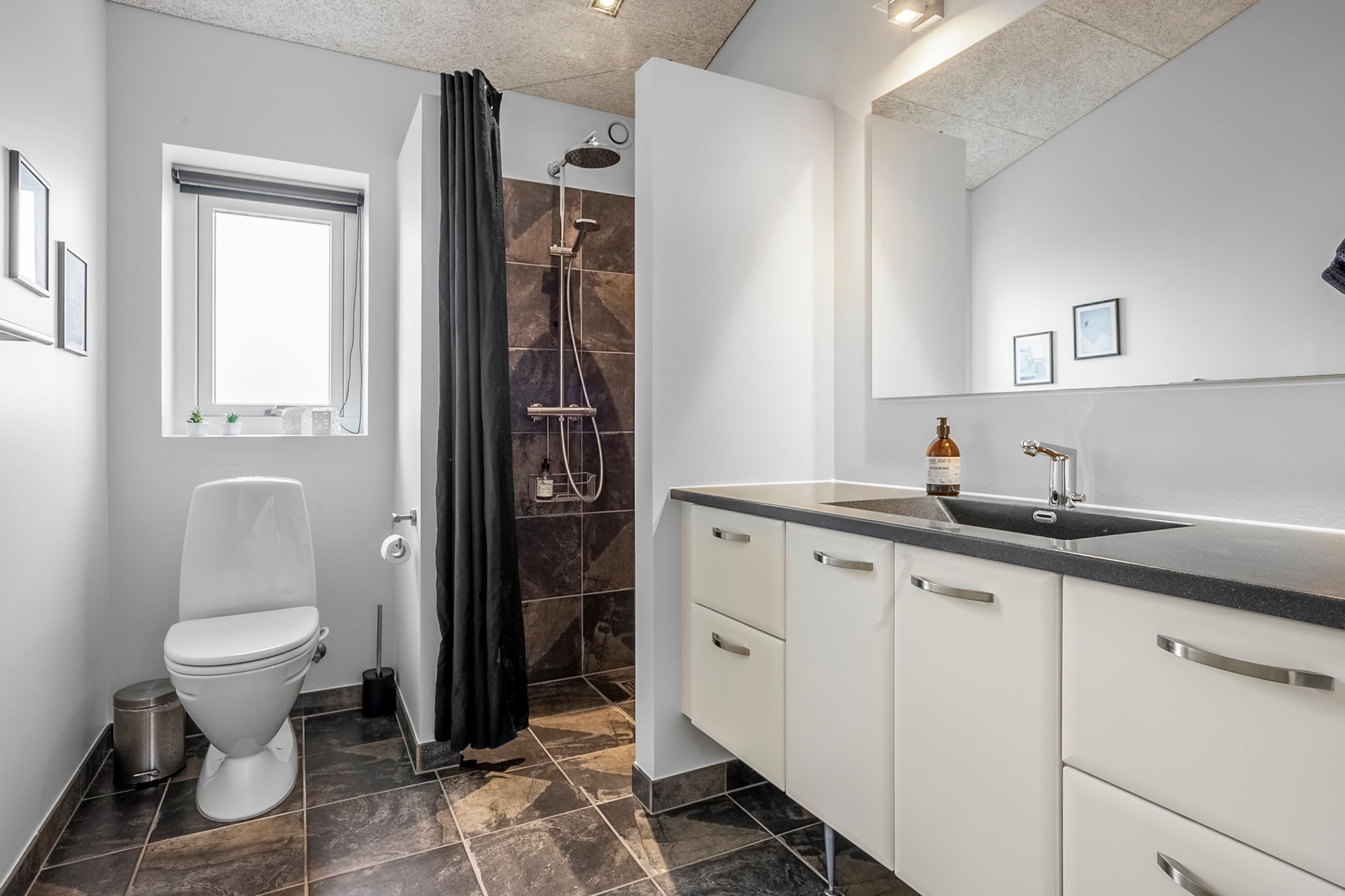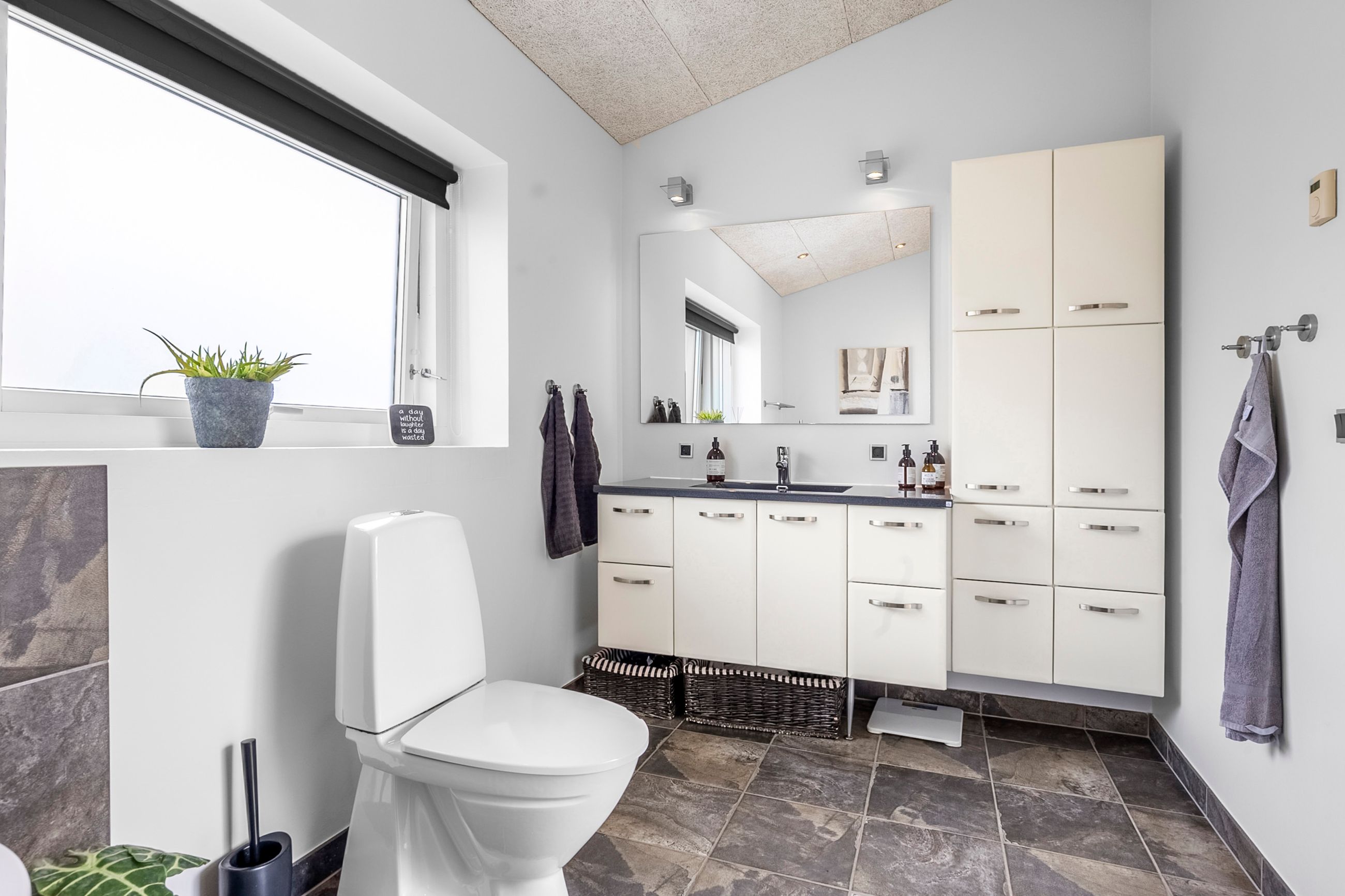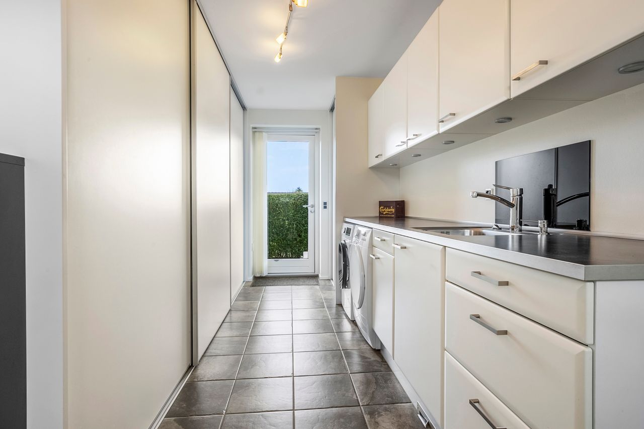 Komforten er i top med genvex-anlæg og centralstøvsuger med 2 fejebakker og hele 5 udtag, som dækker hele huset. Der er naturligvis endnu et badeværelse samt et stort, praktisk bryggers med god opbevaringsplads – her er der tænkt på hverdagens behov og familiens logistik.