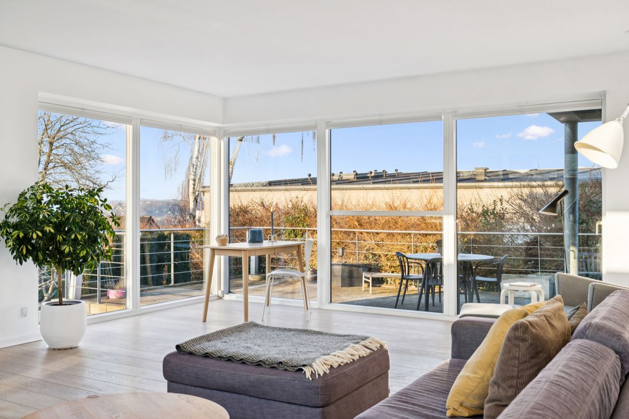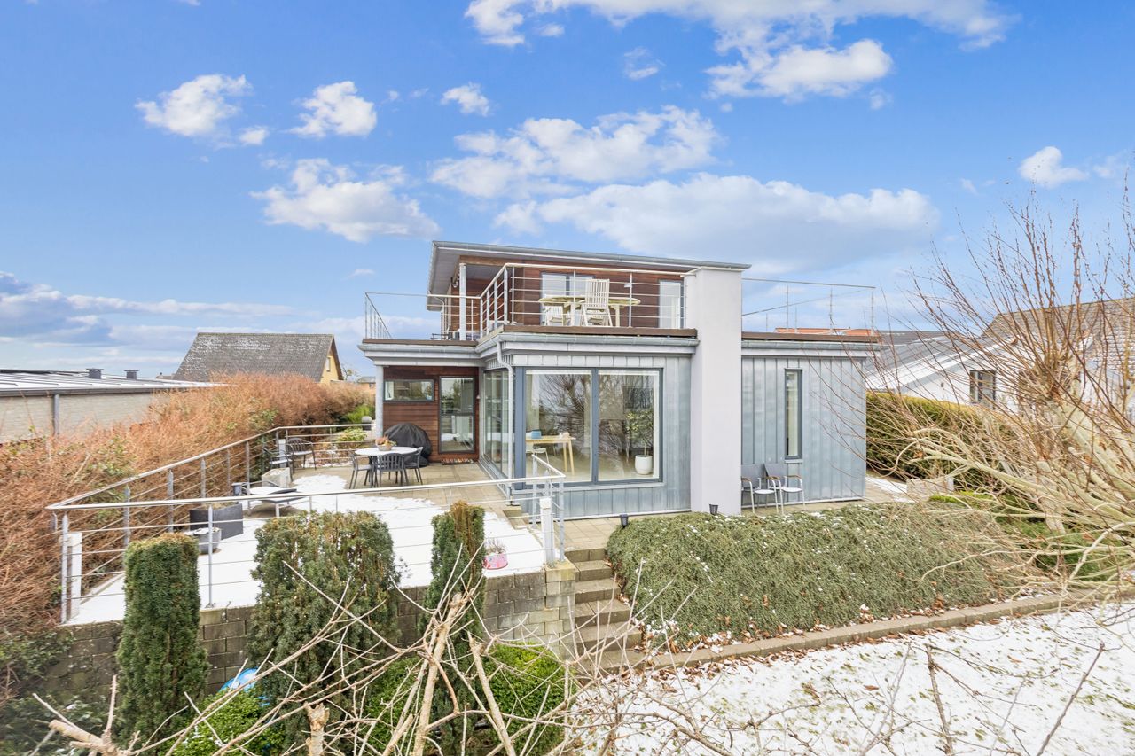På Miravej 7 finder du en bolig, hvor beliggenhed, udsigt og følelsen af at have rigeligt med plads går op i en højere enhed. Huset ligger højt og på en stille vej, hvilket giver en sjælden kombination af ro, privatliv og et smukt kig ud over omgivelserne til alle verdenshjørner – samtidig med at byens puls kun er få minutter væk.