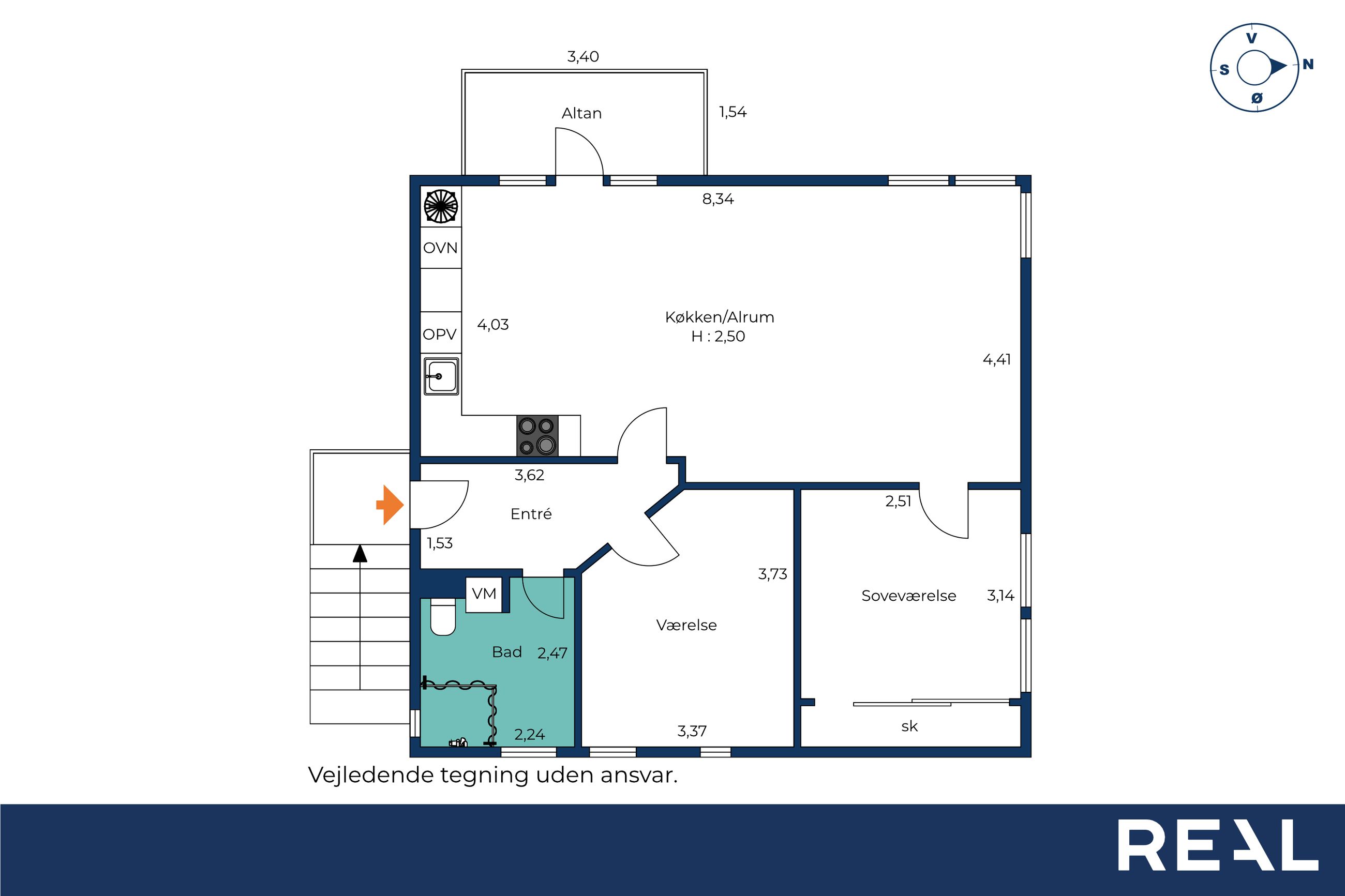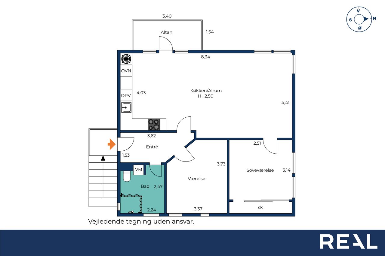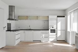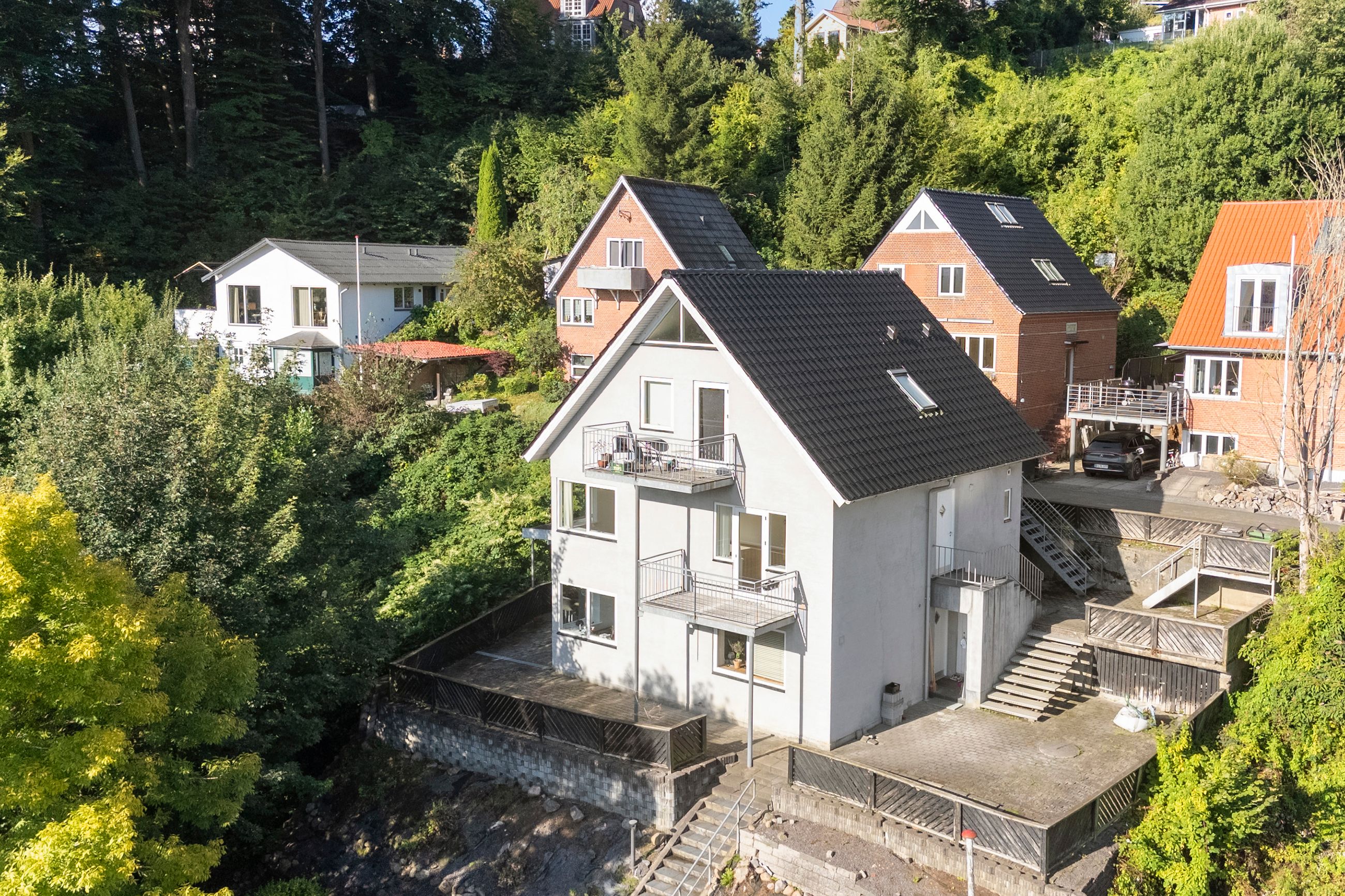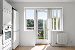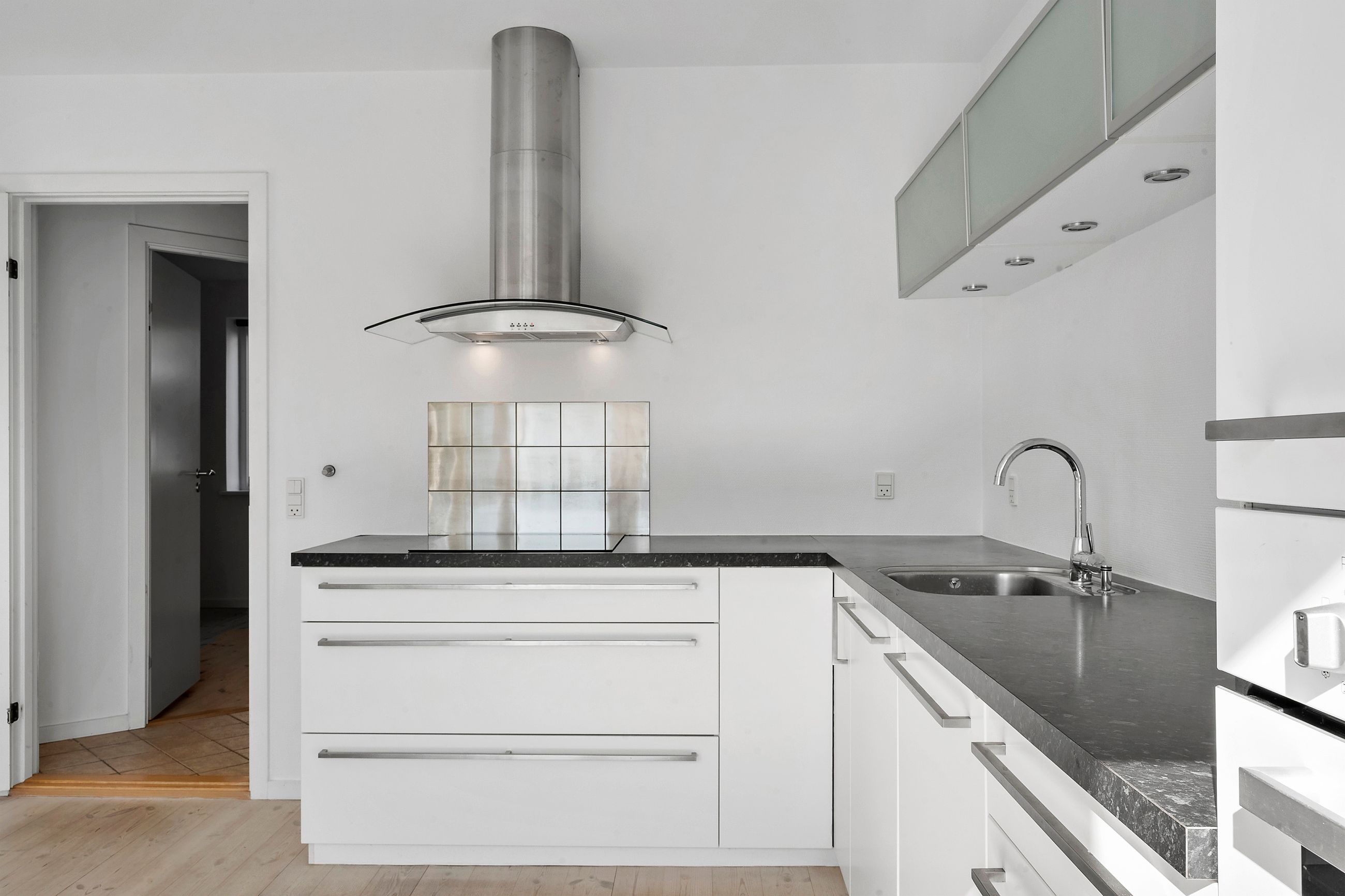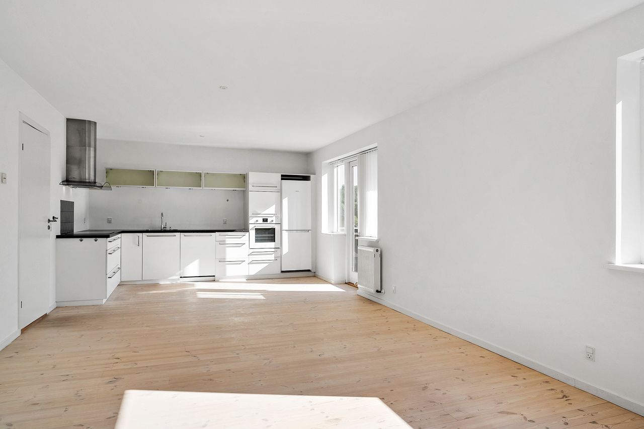 Boligens hjerte er det store, åbne køkken-alrum, der fungerer som det naturlige samlingspunkt. Køkkenet er moderne indrettet med gode arbejdsflader og plads til både madlavning og samvær. Stuen har et generøst lysindfald takket være de store vinduespartier, og herfra er der direkte adgang til en dejlig altan, hvor du kan nyde en flot udsigt samt plads til at indrette med cafébord eller loungemøbler.