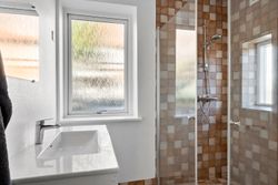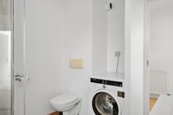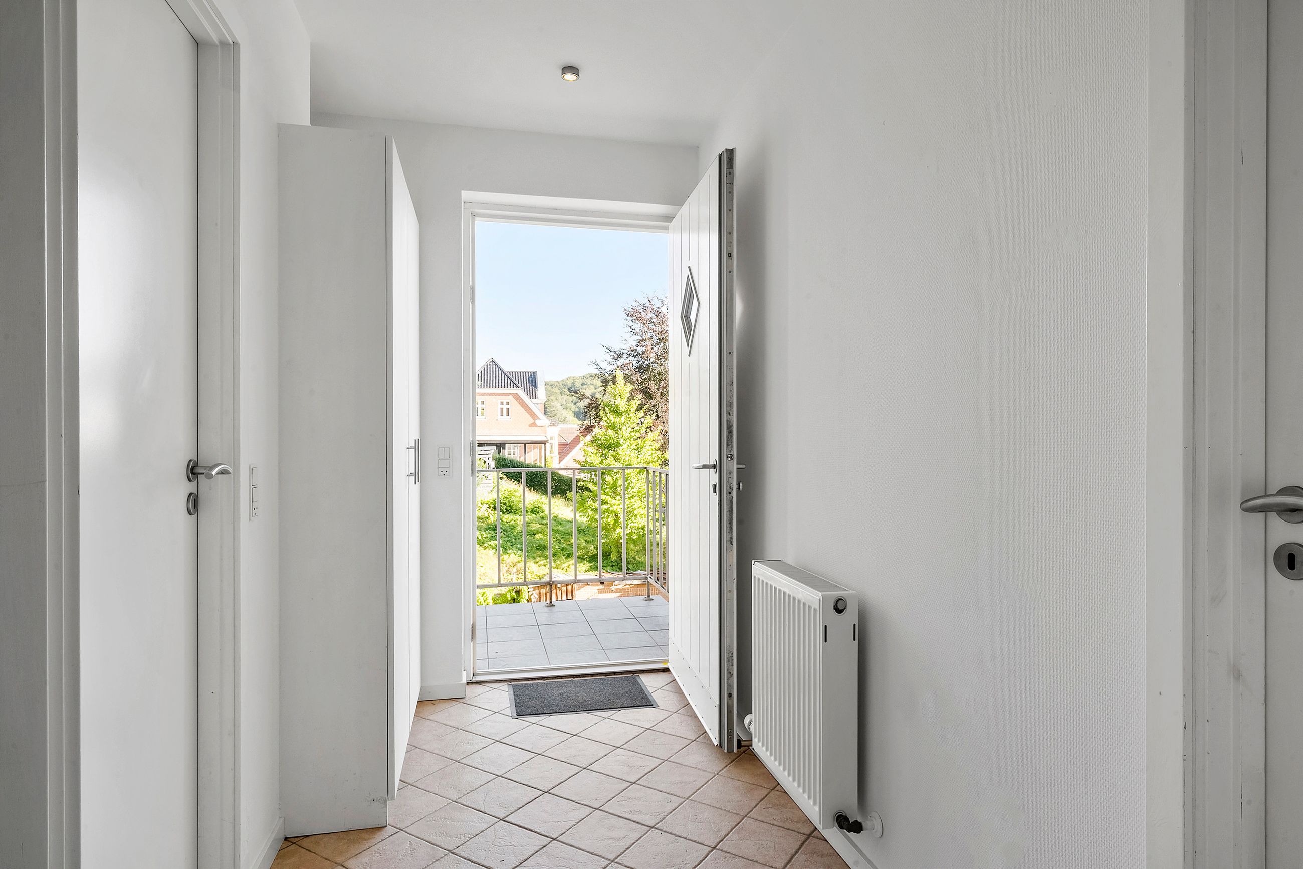 Når du træder ind, mødes du af en entré med garderobeplads, der giver et godt første indtryk og samtidig skaber orden i hverdagen. Herfra er der adgang til et lyst badeværelse, som er funktionelt indrettet.