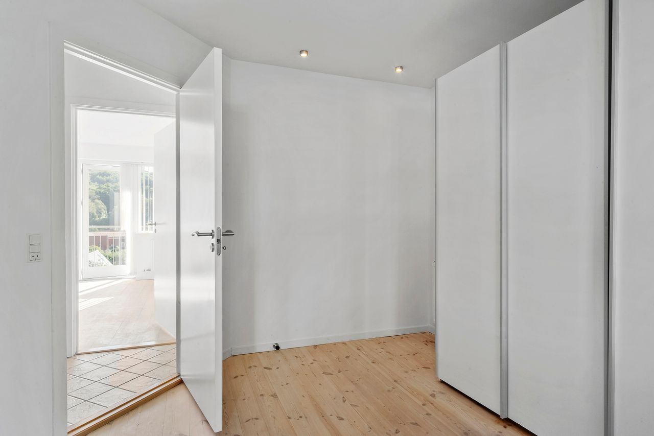 Lejligheden rummer desuden et soveværelse med god skabsplads, der gør det nemt at holde orden, samt et ekstra værelse, som kan indrettes fleksibelt – hvad enten du har brug for hjemmekontor, gæsteværelse eller børneværelse.