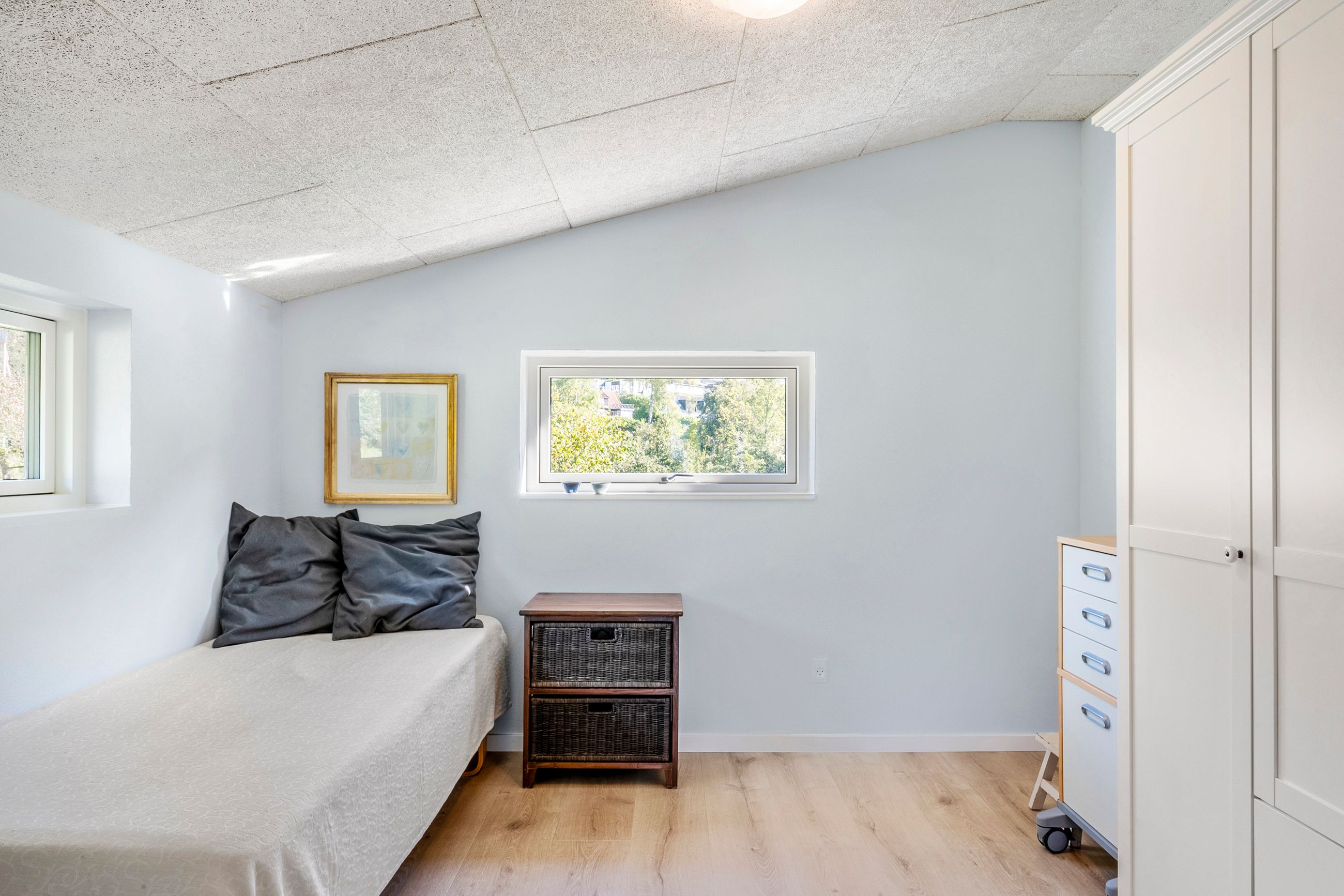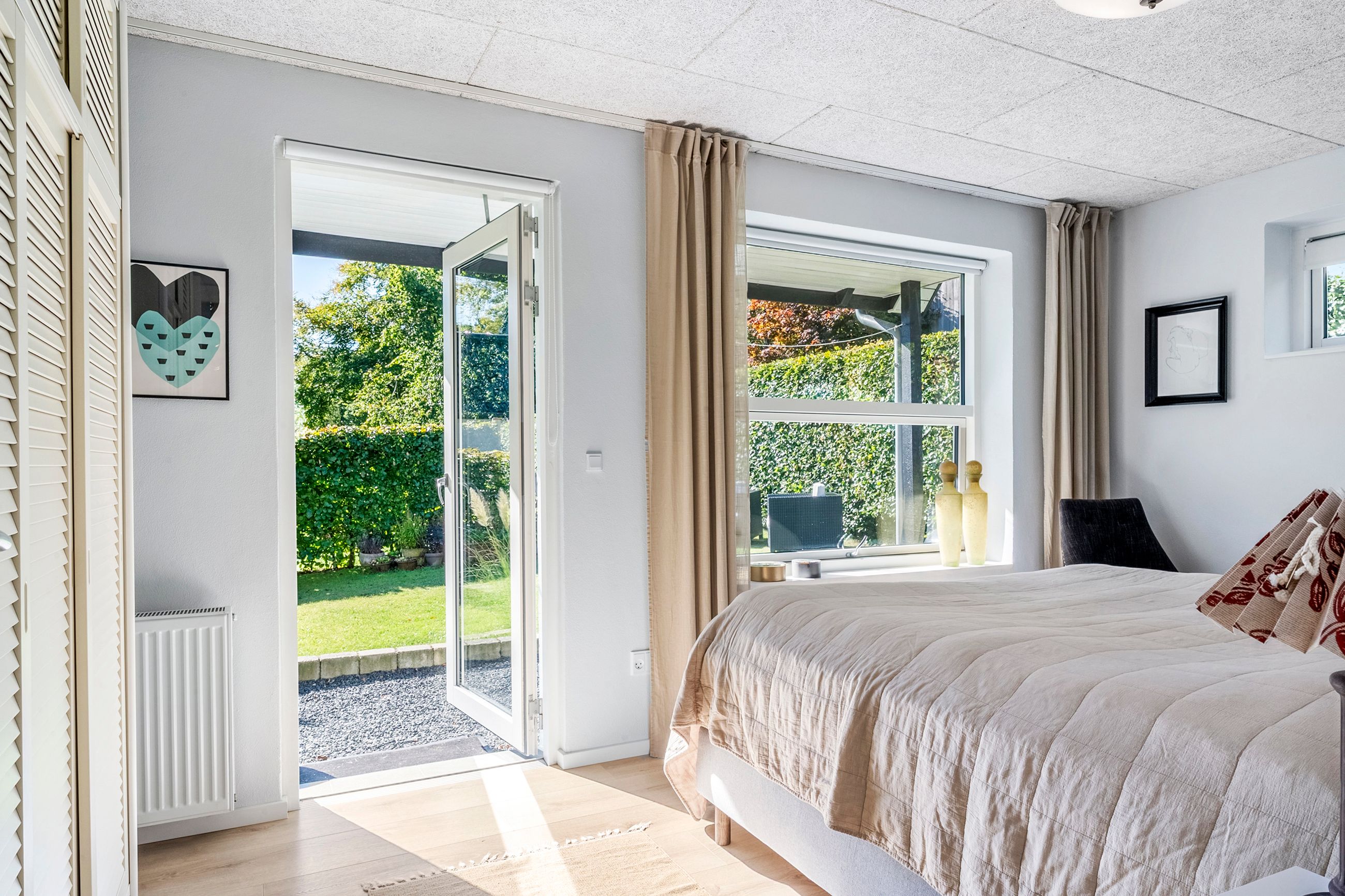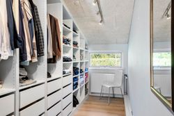 Huset rummer fire værelser, der giver god plads til både børn, gæster og hjemmekontor. Tre af værelserne ligger i tilknytning til walk-in closet – og de har direkte udgang til terrassen og haven.