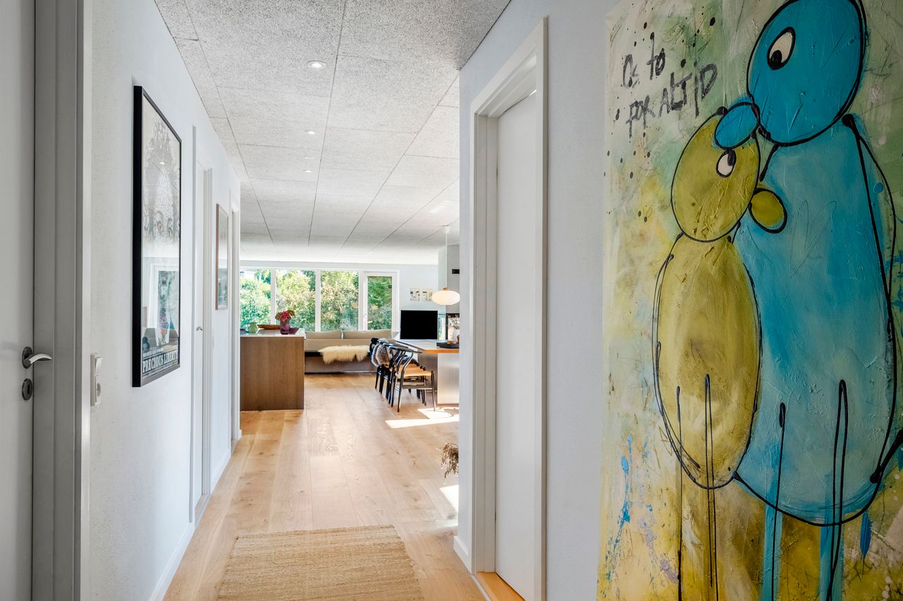 På Lehmannsvej 17A får du en bolig, der på smukkeste vis forener funktionel indretning og en attraktiv beliggenhed med Nørreskoven som nabo. Her venter hele 180 m2 velindrettet bolig med masser af plads til familielivet, hvor både indretningen og omgivelserne er nøje gennemtænkt for at skabe de bedste rammer for en harmonisk hverdag.