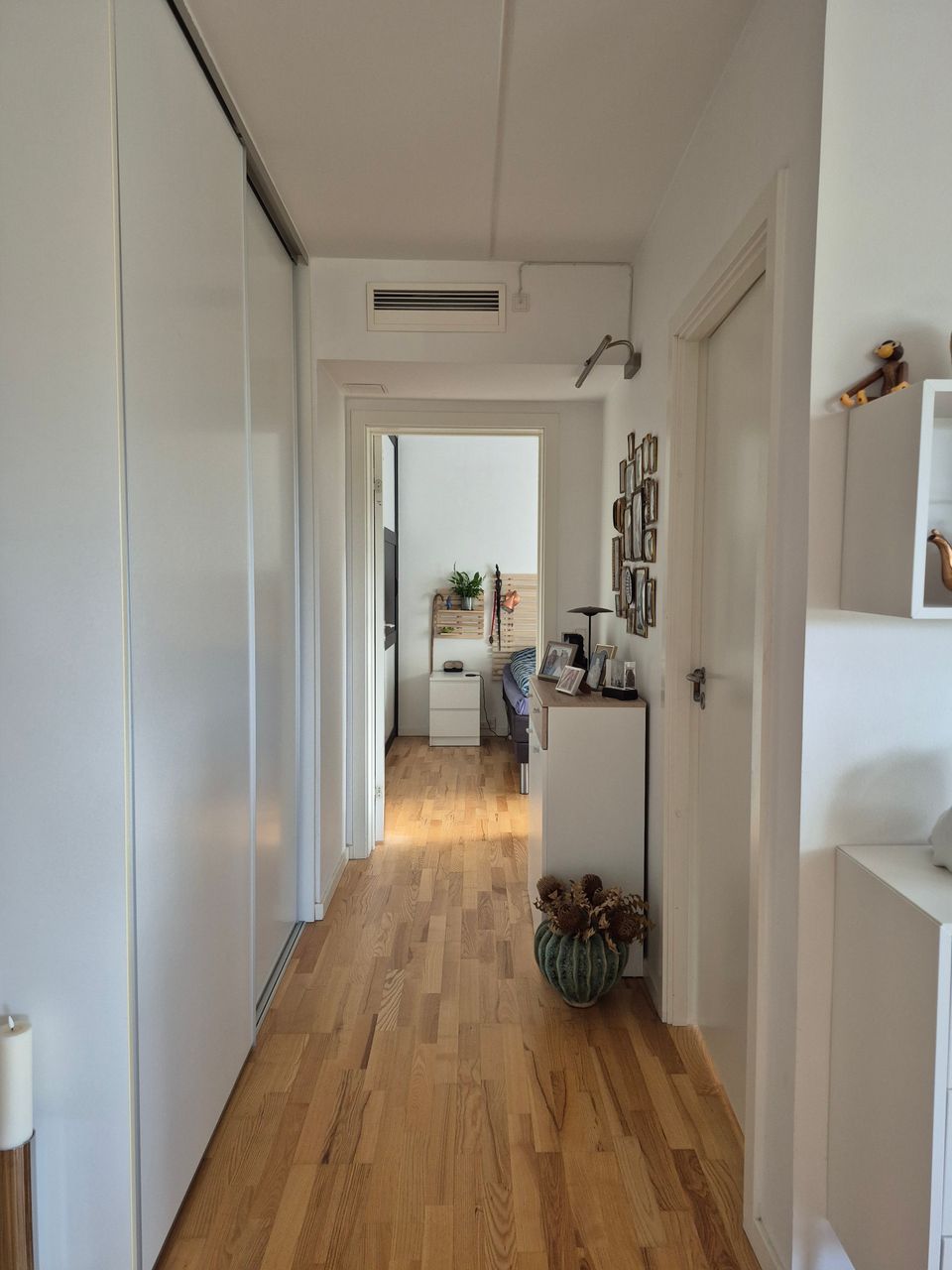 Lejligheden byder velkommen med en fin entre, hvor der er et indbygget skab. I åben forbindelse med entreen, er der et rummeligt, lyst alrum, med henholdsvis stue og køkken.
