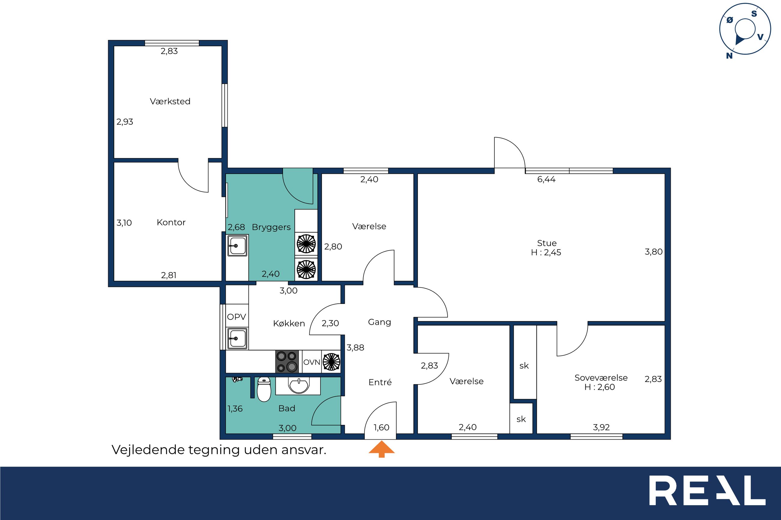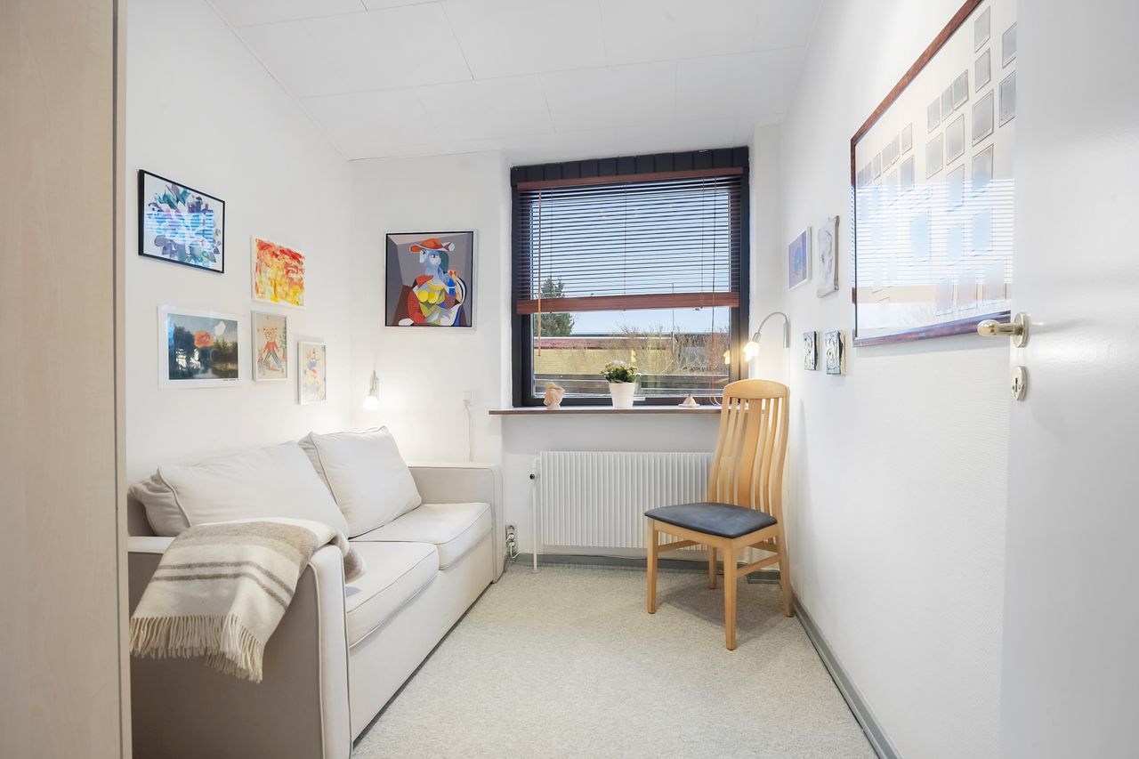 Her får du en funktionel planløsning med hele fire soverum, så der er plads til både børn, gæster eller hjemmekontor. Den lyse stue inviterer til hyggelige aftener med familien, mens køkkenet og det praktiske bryggers giver en hverdag, der fungerer. Hertil kommer et badeværelse.