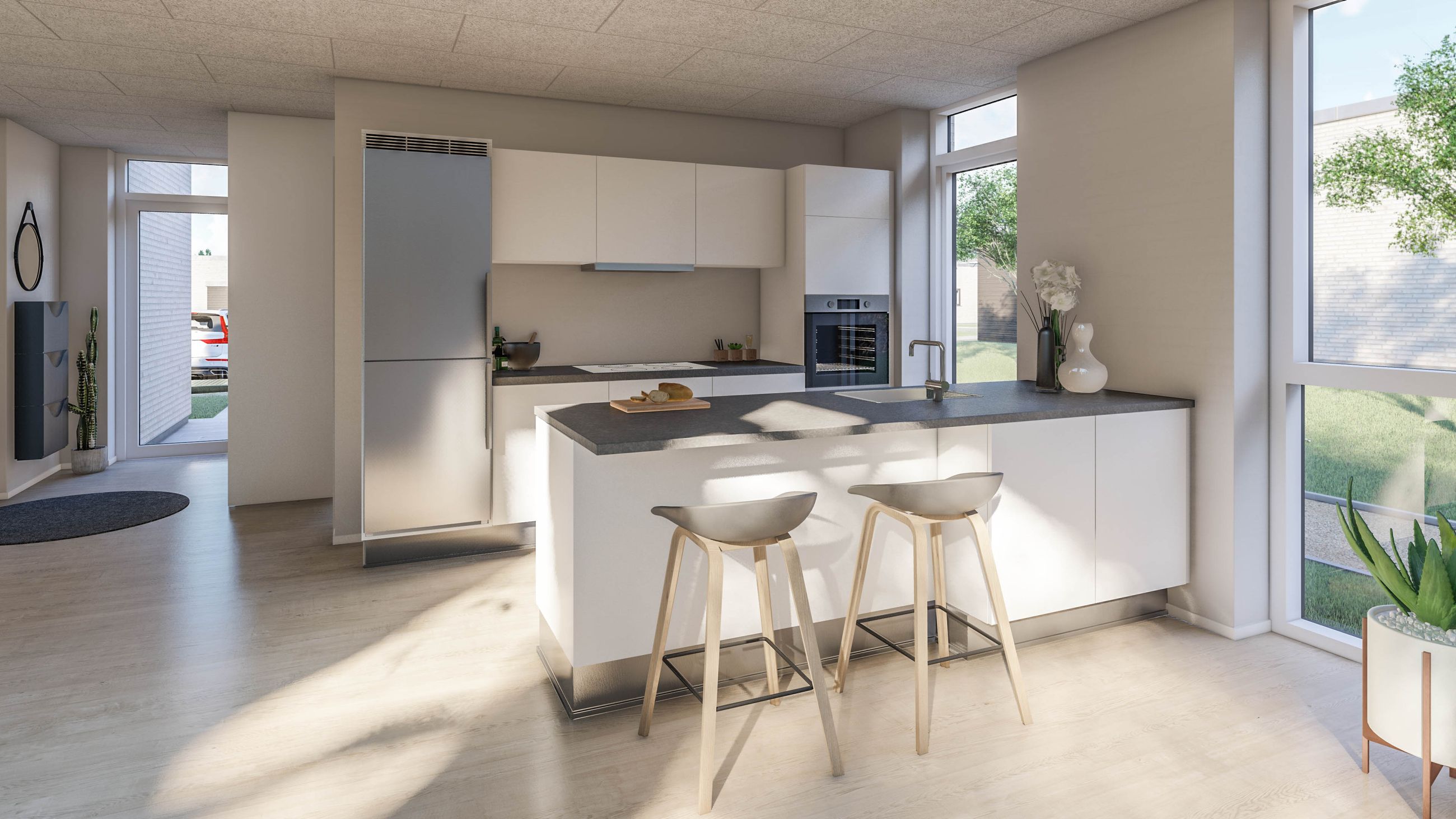 Her får I en splinter ny bolig fra 2024, som endnu er under opførsel, og som er energivenlig med et lavt varmeforbrug i en flot moderne stil. Boligen har store vinduespartier, genvindingsanlæg, 2 lækre terrasser samt en lille have. - 3 veldisponerede værelser- Lækker badeværelser med plads til tørretumbler og vaskemaskine - Lyst åbent køkken/alrum/stue - Direkte udgang til egen mindre gårdhave og terrasse.- Egen p-plads ved boligen- Stort redskabsrum hvor der er indlagt lys og strøm - Grund ca. 500 m2- Mulighed for at opsætte en ladestander Boligen er fuldmuret som giver et godt komfortabelt og sundt indeklima at opholde sig i samt så er der naturligvis brugt de nyeste krav til isolering m.v. Boligområdet er åbent og luftigt i form af tvillingehuse, som på deres egen måde skaber plads til liv, aktiviteter og et hyggeligt fælles miljø, som henvender sig til alle aldersklasser. Boligerne er beliggende på Bystedparken i Gårslev, hvor I er tæt på naturen, og med åbne rammer omkring jer, men fortsat beliggende tæt på indkøb, samt hverdagens øvrige fornødenheder. El, vand, varme betales direkte til forsyningsselskaberne.