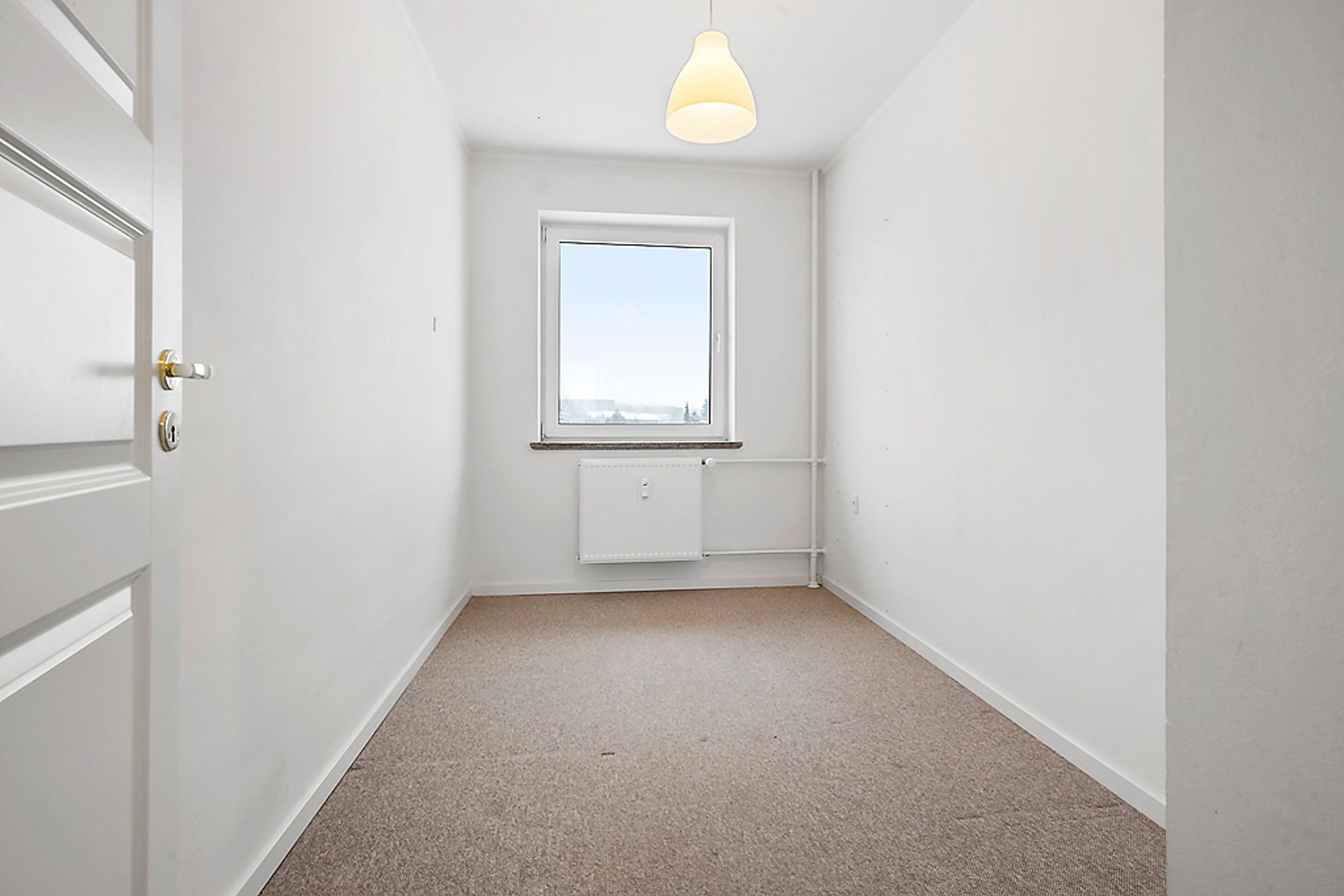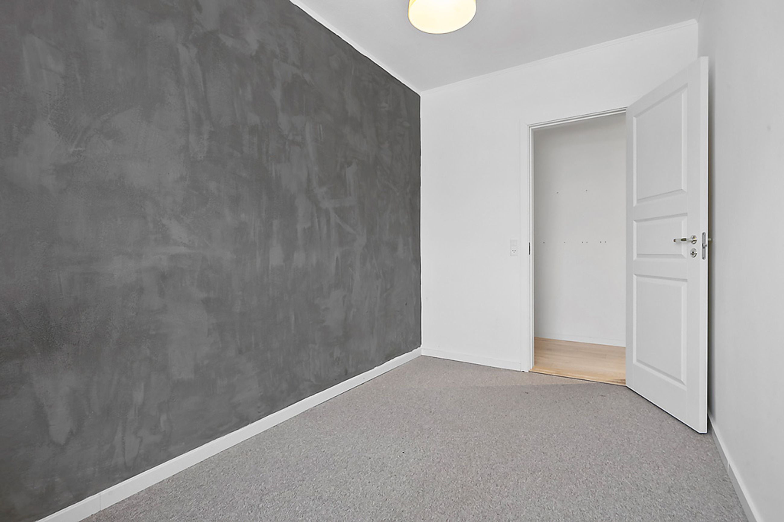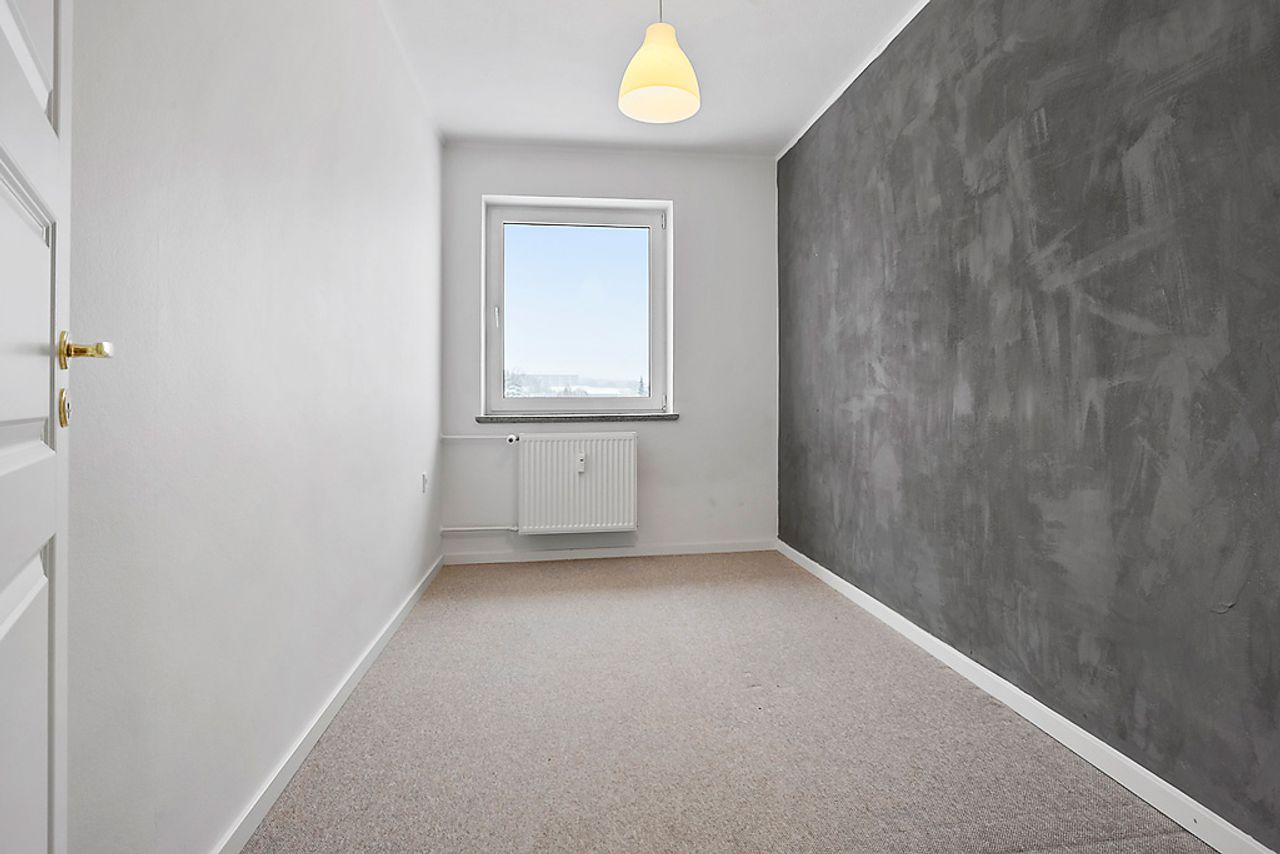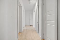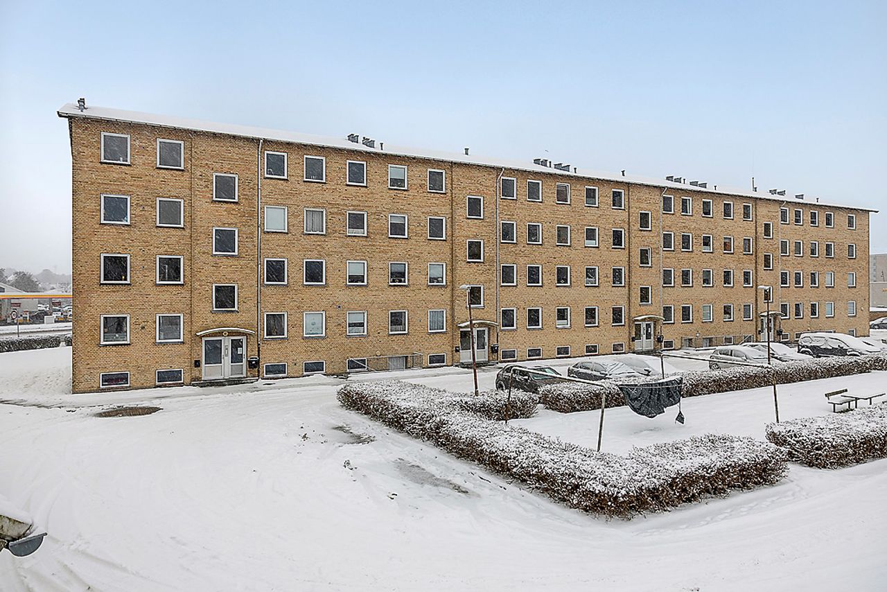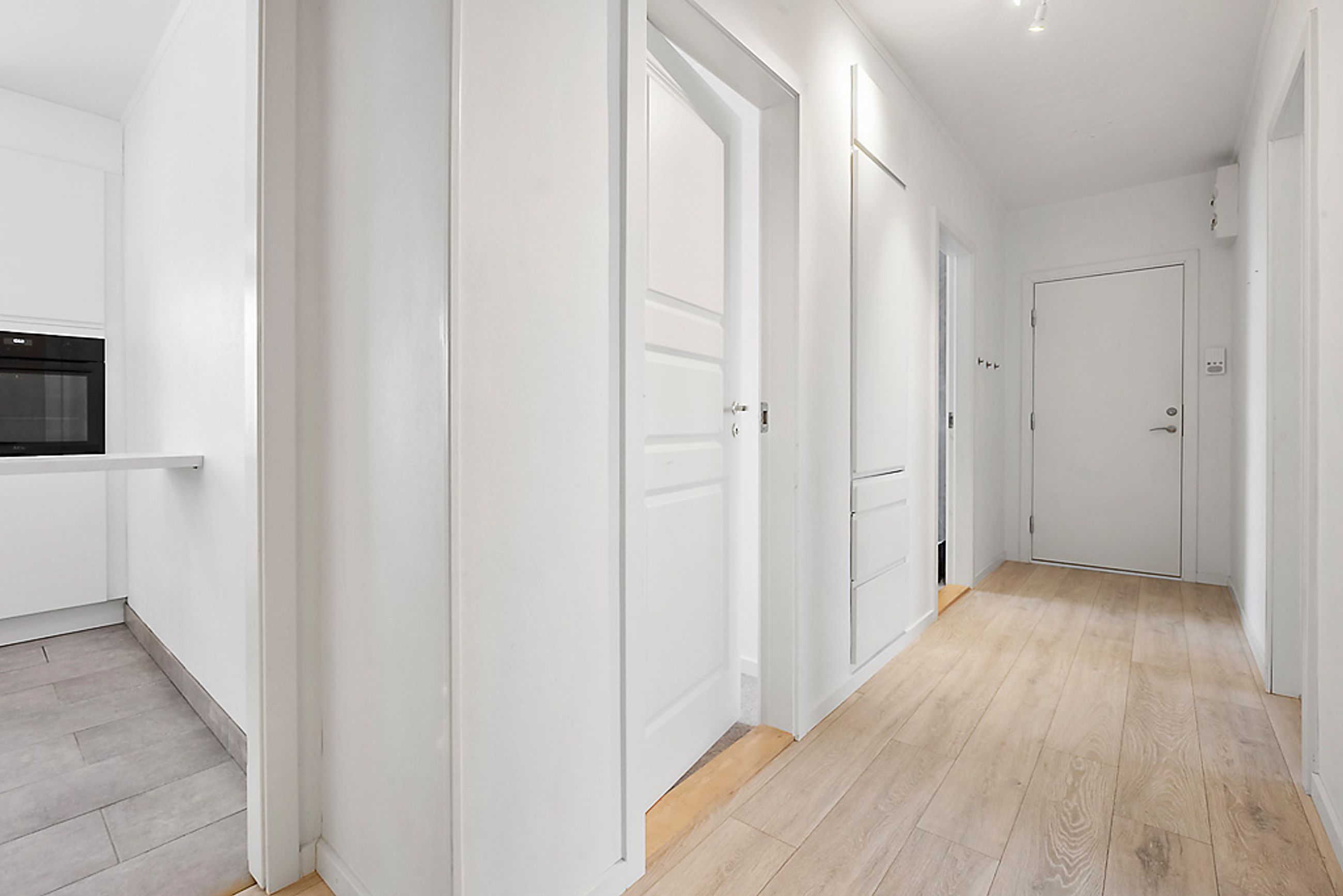 Når man træder ind i lejligheden via den rummelige fordelingsgang/entré med skabsplads til overtøjet, mødes man af flotte gennemgående gulve i entréen såvel som i stuen og værelserne. De store vinduer lader masser af lys strømme ind i alle rum, hvilket sammen med de hvide vægge giver et lyst og luftigt indtryk.