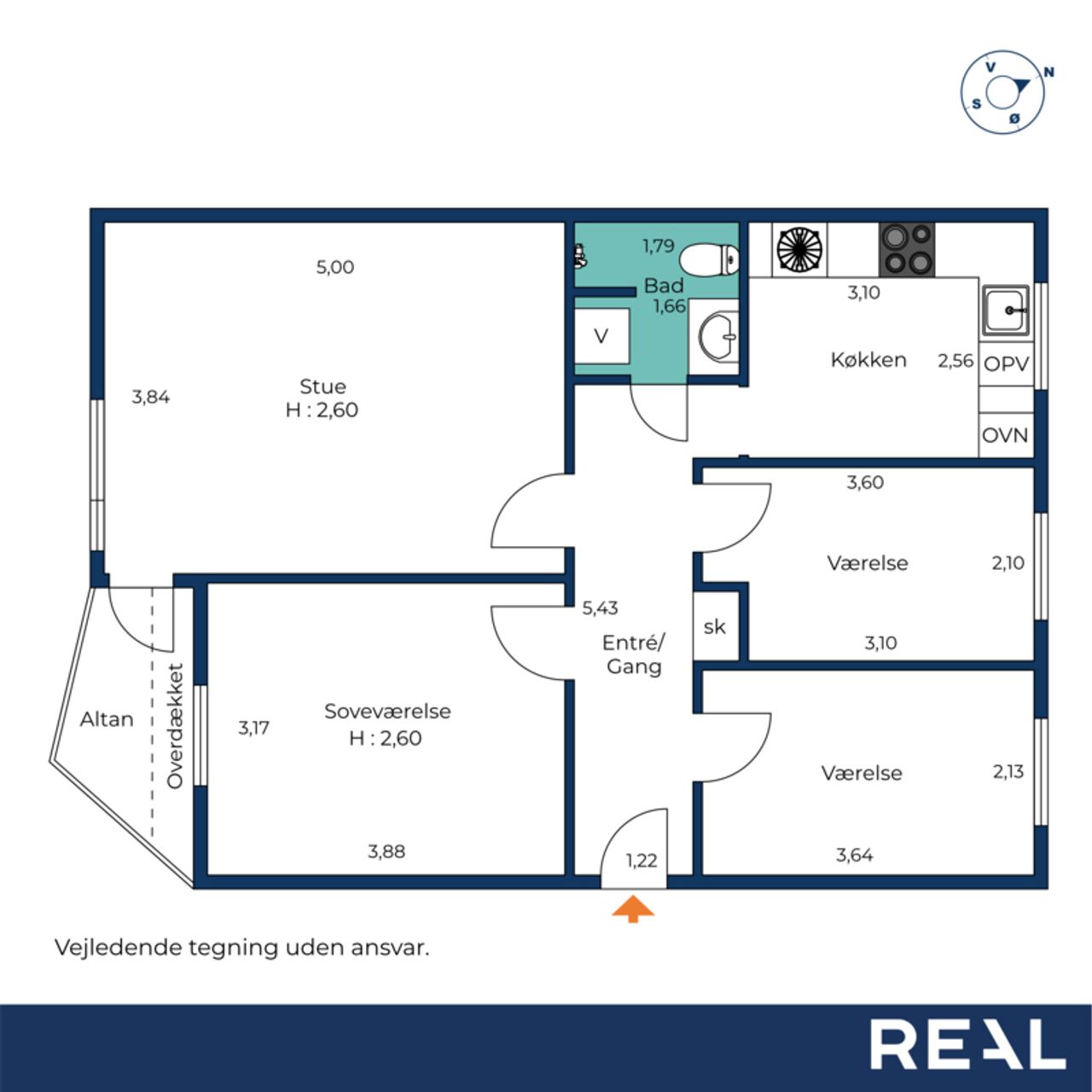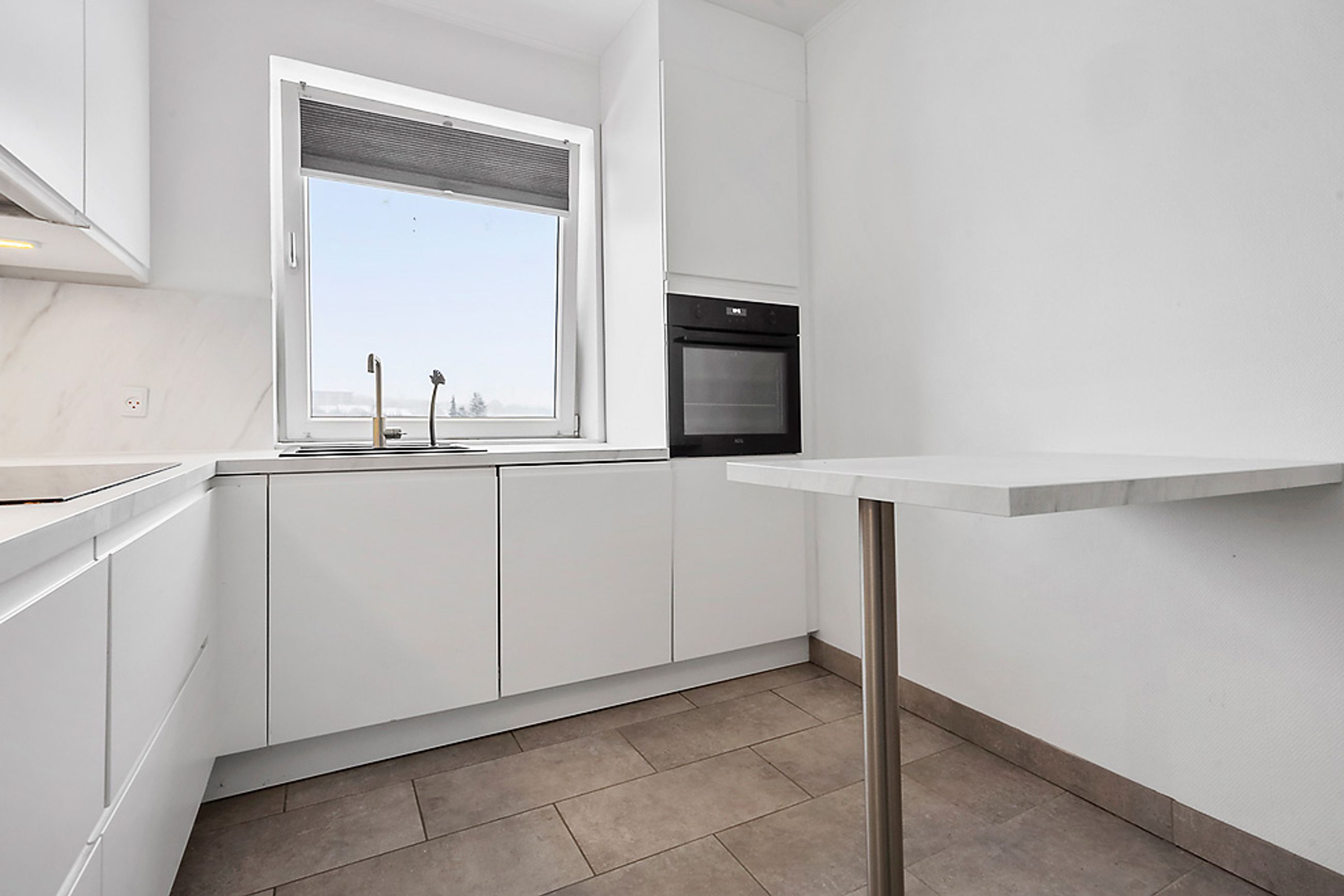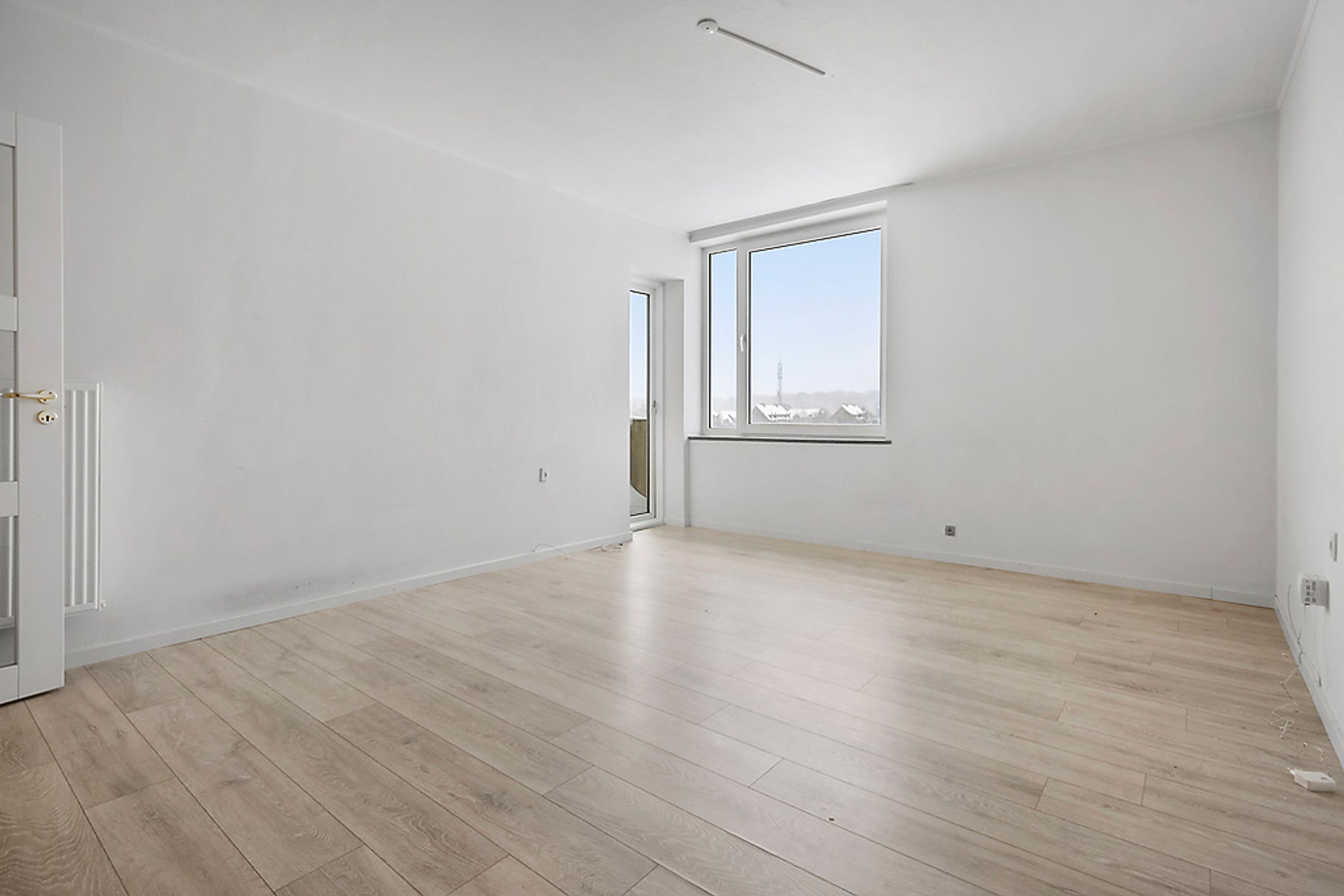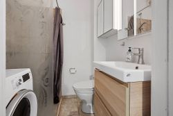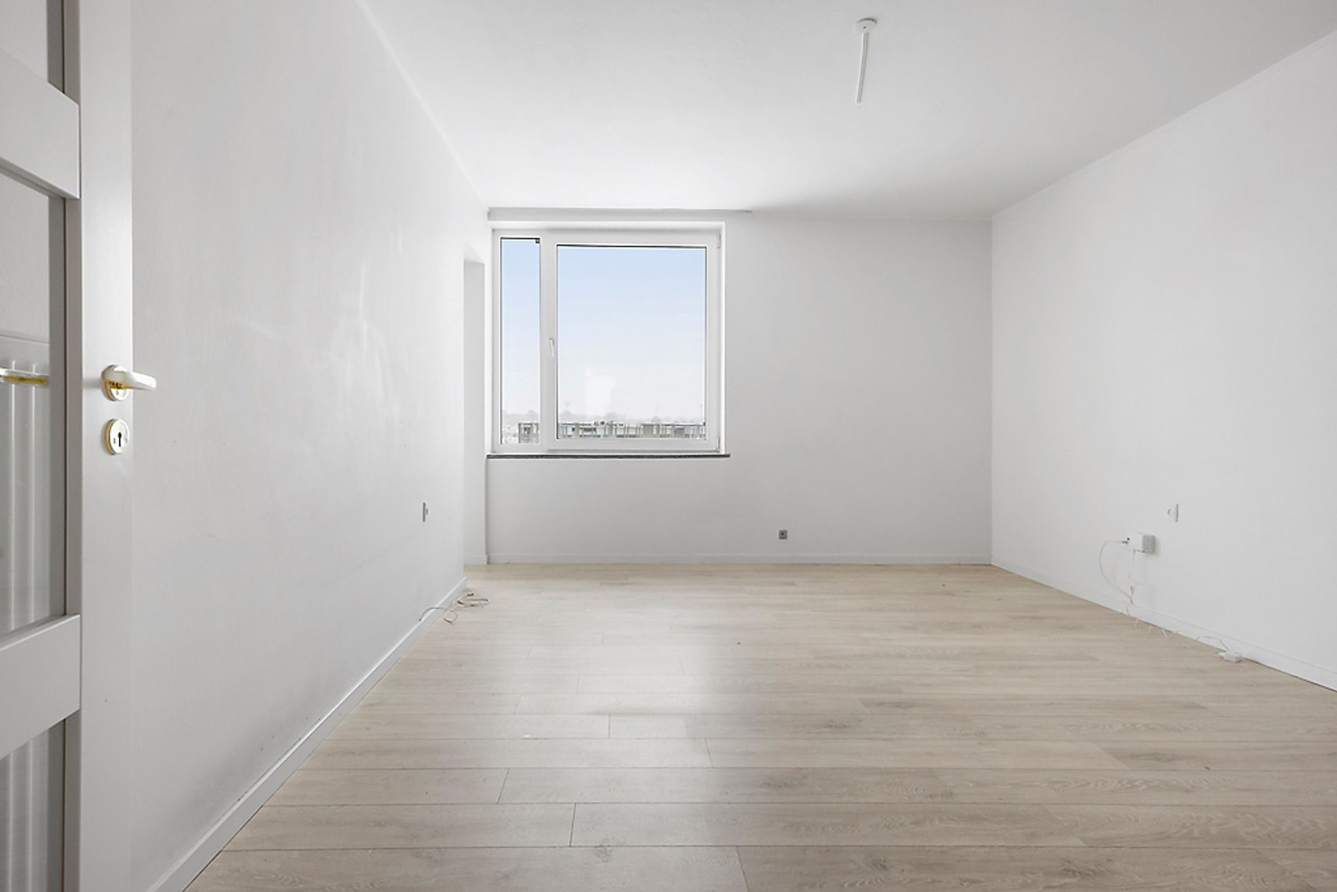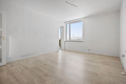 Når man træder ind i lejligheden via den rummelige fordelingsgang/entré med skabsplads til overtøjet, mødes man af flotte gennemgående gulve i entréen såvel som i stuen og værelserne. De store vinduer lader masser af lys strømme ind i alle rum, hvilket sammen med de hvide vægge giver et lyst og luftigt indtryk.