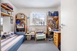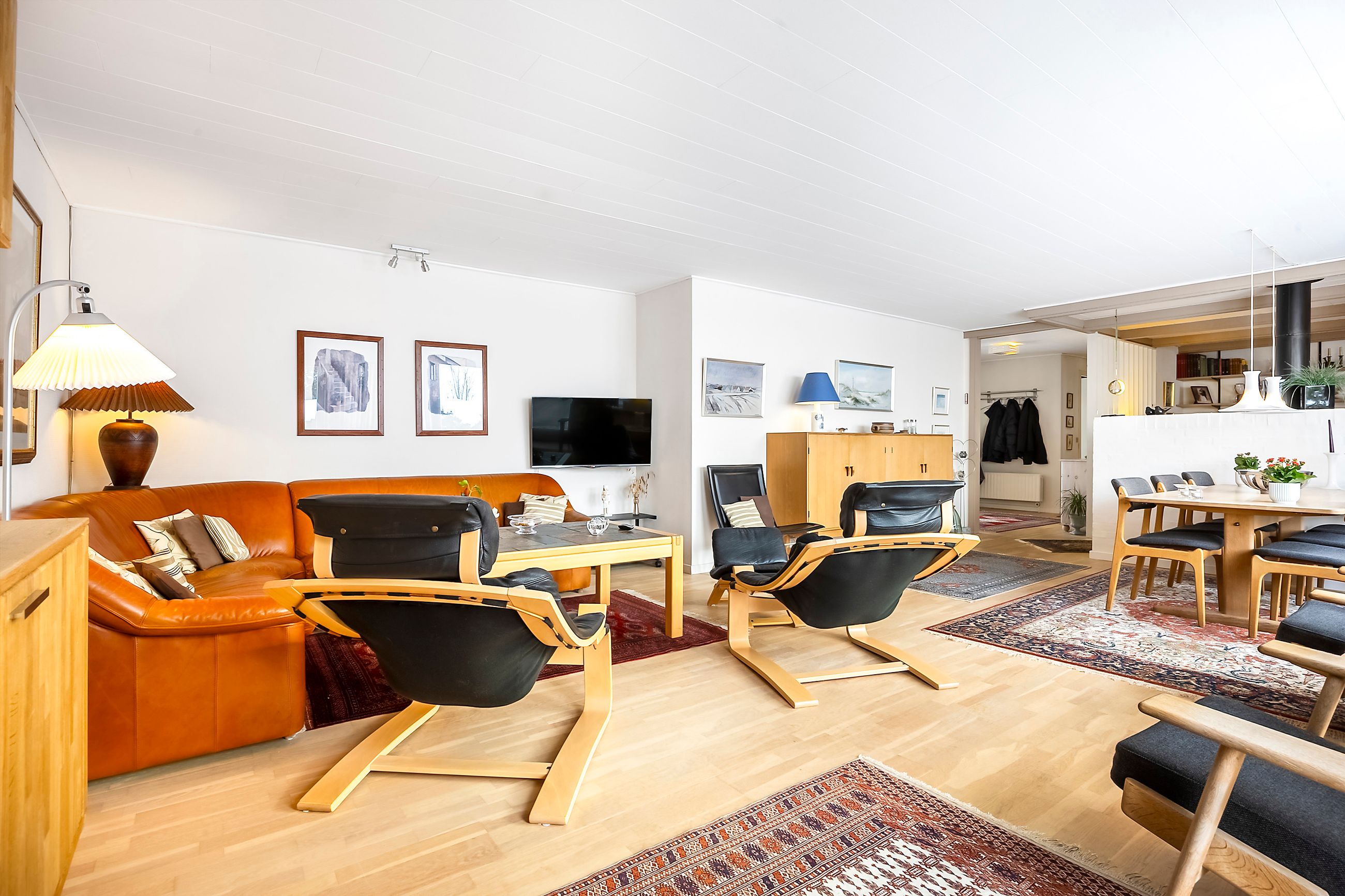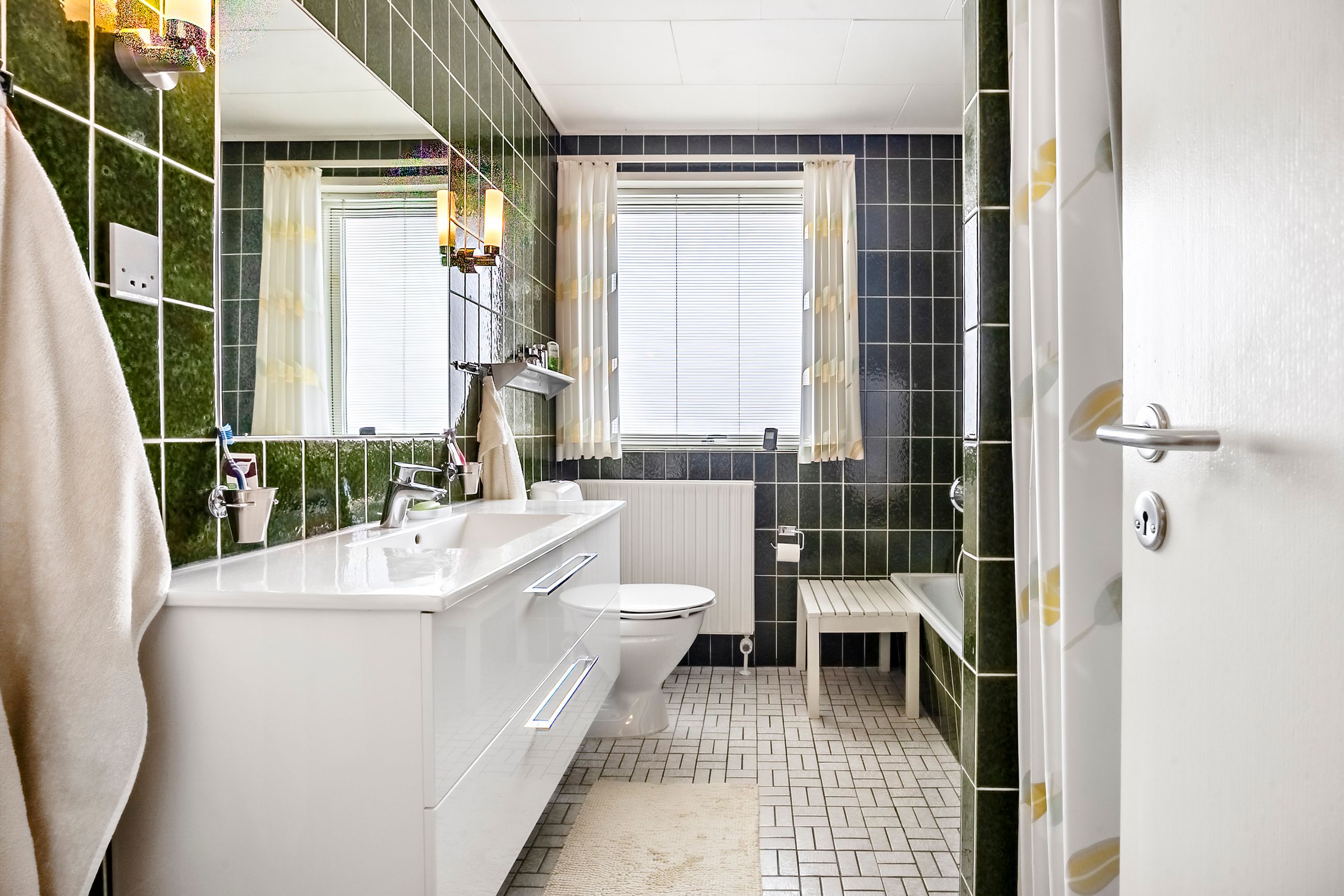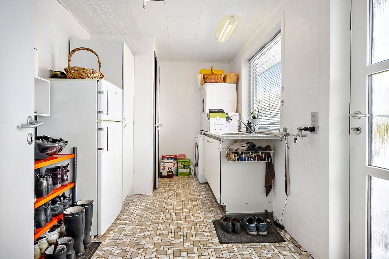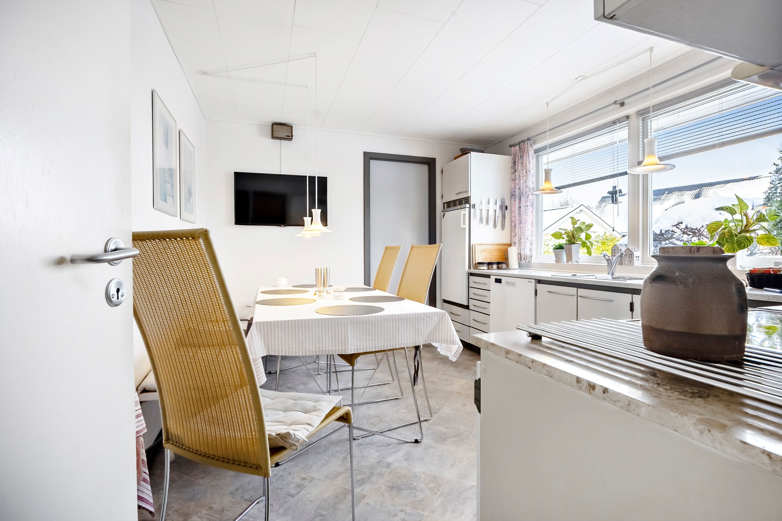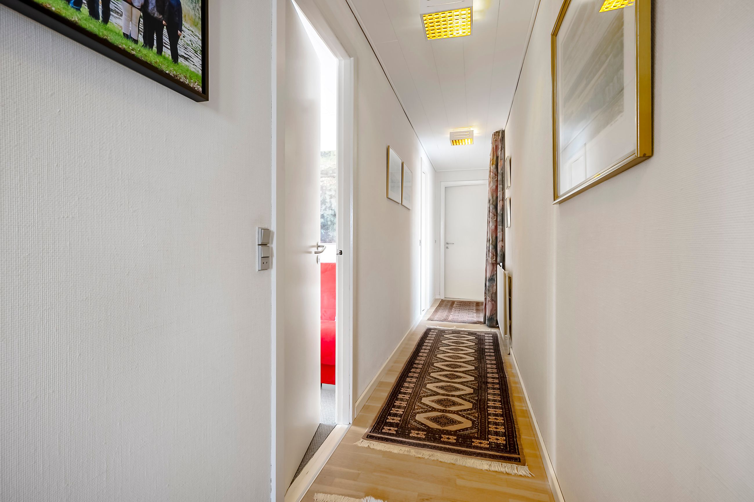 Denne dejlige bolig byder på en gennemført planløsning med fire gode, lyse værelser, der alle giver fine muligheder for både soveværelser, børneværelser eller hjemmekontor. Badeværelset er indrettet med både badekar og brus, mens et separat gæstetoilet skaber ekstra bekvemmelighed i hverdagen. Entréen byder velkommen med god plads til sko og overtøj, og køkkenet er lyst og rummeligt med adgang til et praktisk bryggers og et viktualierum, der sikrer god opbevaringsplads til dagligvarer og køkkenudstyr. Den hyggelige stue er hjemmets samlingspunkt og har direkte udgang til haven, hvilket giver let adgang til udelivet.