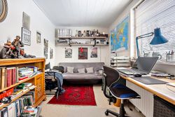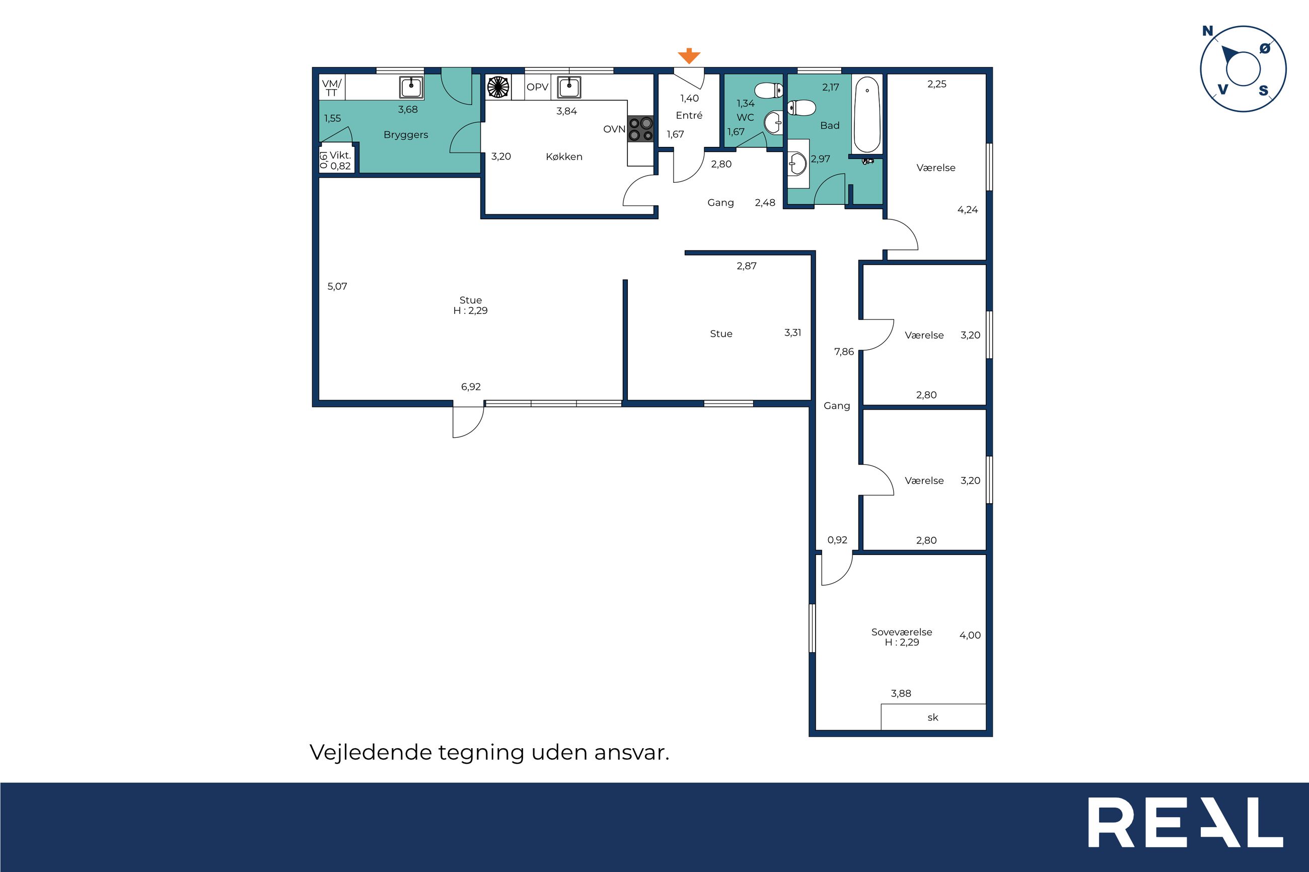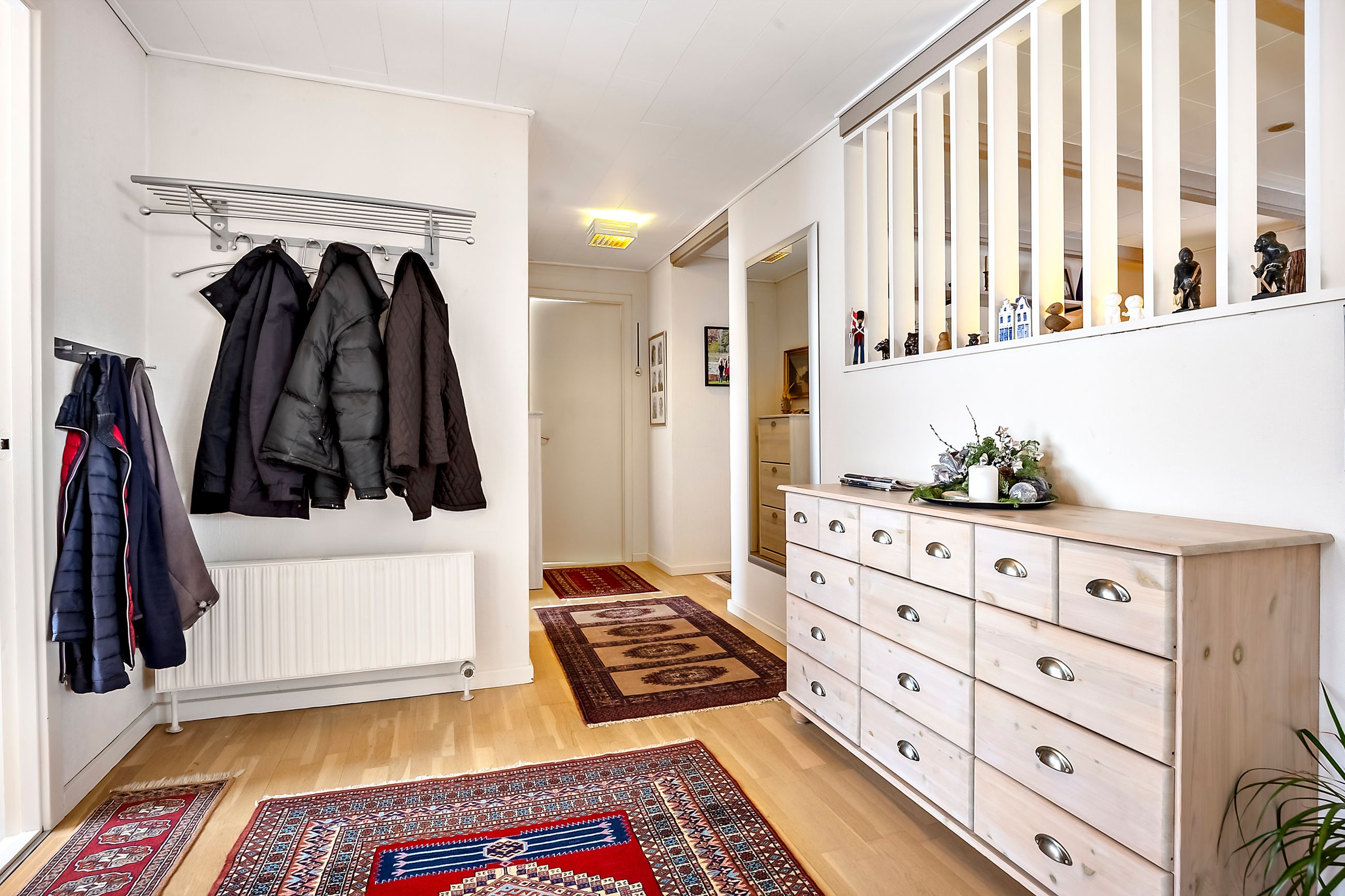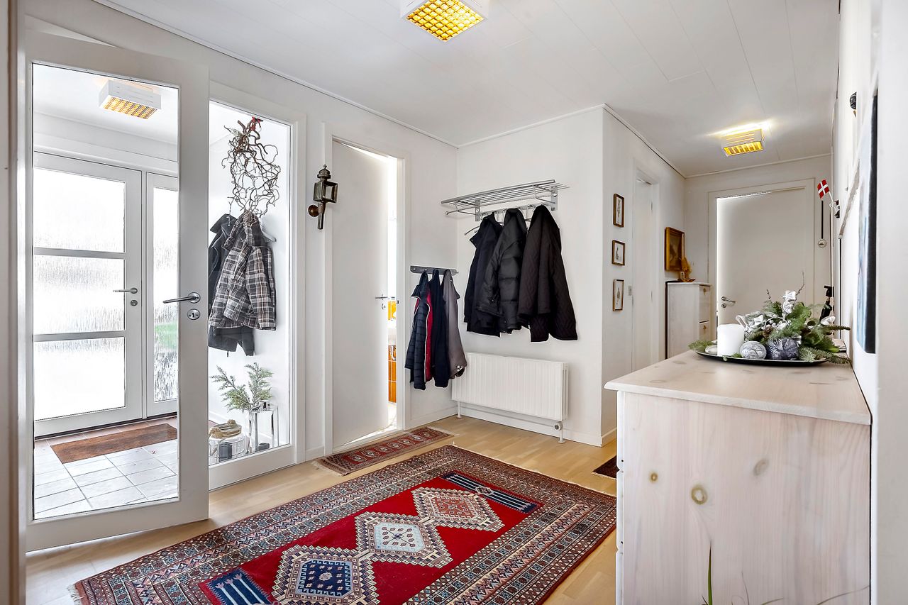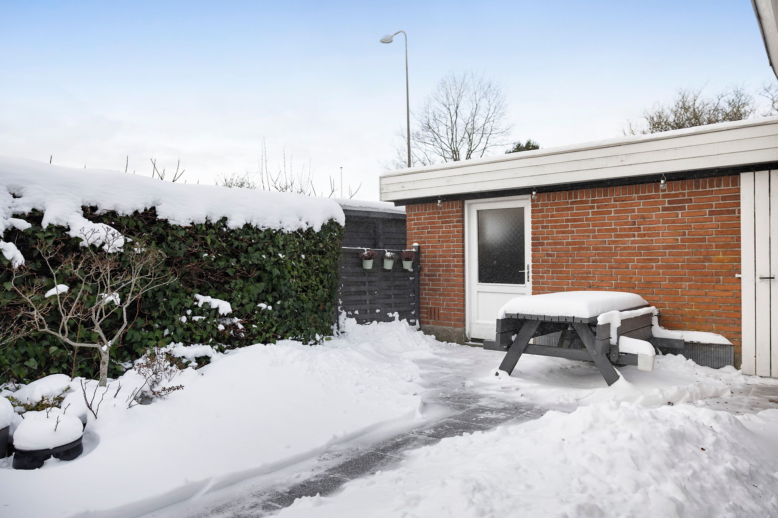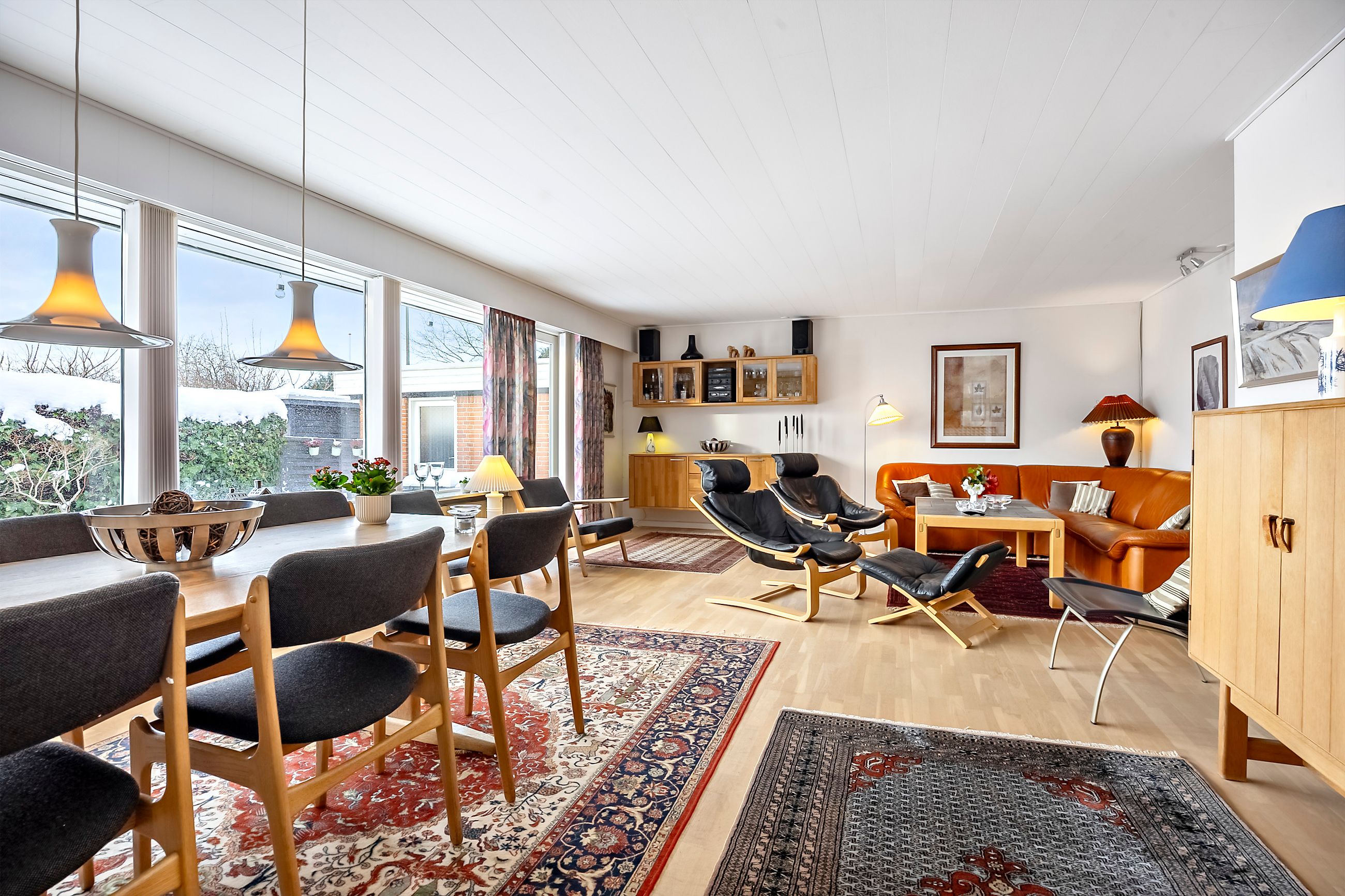 Denne dejlige bolig byder på en gennemført planløsning med fire gode, lyse værelser, der alle giver fine muligheder for både soveværelser, børneværelser eller hjemmekontor. Badeværelset er indrettet med både badekar og brus, mens et separat gæstetoilet skaber ekstra bekvemmelighed i hverdagen. Entréen byder velkommen med god plads til sko og overtøj, og køkkenet er lyst og rummeligt med adgang til et praktisk bryggers og et viktualierum, der sikrer god opbevaringsplads til dagligvarer og køkkenudstyr. Den hyggelige stue er hjemmets samlingspunkt og har direkte udgang til haven, hvilket giver let adgang til udelivet.
